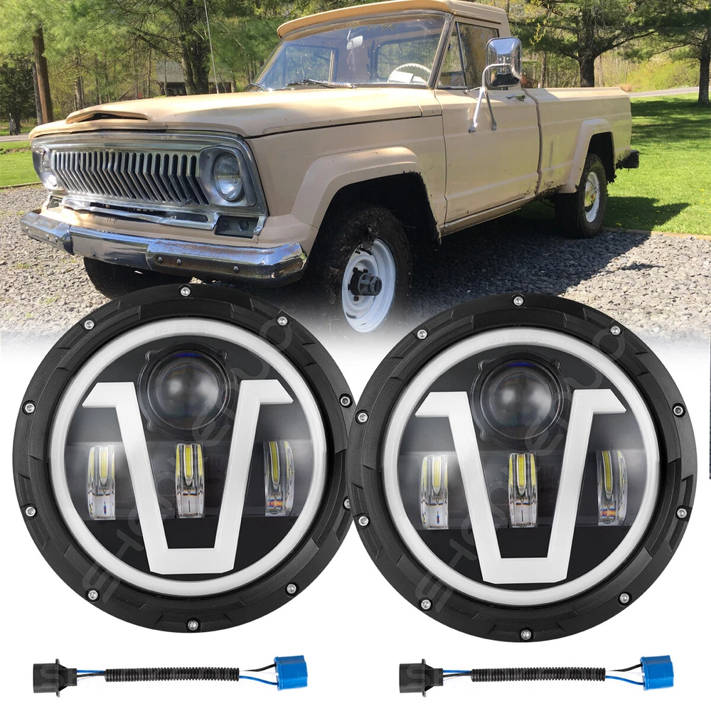 Product Description Package Includes: 2PCS 7-Inch Round V Style LED Headlights 2PCS H4-H13 9008 Adapter Wires (Installation instruction not included) Note: Some models may require a mounting bracket, which is not included! Specifications: Housing Color: Sleek Black Voltage: DC12V Color Temperature: Cool White 6000K-6500K LED Power: 50W each, 100W per set Luminous Output: 10000LM (High Beam), 8000LM (Low Beam) Lighting Functions: High Beam / Low Beam / Daytime Running Light / Turn Signal Life Span: 50,000+ hours for long-lasting performance Energy Efficiency: Save 60% more energy, reducing fuel consumption! Compatibility: Replaces 7-Inch Round H6024 Sealed Beam Housings Waterproof Rating: IP67 for all-weather performance Product Features: Maximum Brightness: Equipped with premium LED chips, these headlights deliver 100% more brightness compared to stock or halogen lights, improving nighttime visibility. Weatherproof Design: DOT Approved, IP67 rated, and equipped with anti-flicker technology for seamless performance without the need for extra decoders. The sealed design keeps moisture and water out, ensuring reliable performance. Hassle-Free Installation: Easy plug-and-play setup saves you time and effort. Built for durability, these headlights boast an impressive lifespan of over 50,000 hours. About the Adapter: A slight flicker may occur due to Jeep Wrangler's voltage instability, not because of the headlights. The flicker is more noticeable with brighter LEDs, unlike dimmer halogen lights. Simply plug in the headlights first. If there is no flicker, the adapter is not needed. Upgrade your vehicle with these cutting-edge 7-inch LED headlights, delivering exceptional brightness, style, and reliability! (Including but not limit the following applications) Application: For Alfa Romeo Spider (1988-1994) For AM General Hummer (1992-2001) For American Motors AMX (1968-1978) For American Motors Gremlin (1970-1978) For American Motors Hornet (1970-1977) For American Motors Javelin (1968-1974) For American Motors Matador (1974-1978) For American Motors Pacer (1975-1980) For Bertone X 1/9 (1984-1989) For Chevy Blazer (1969-1974) For Chevy C10 (1975-1980) For Chevy C10 Pickup (1969-1974) For Chevy C10 Suburban (1969-1980) For Chevy C20 (1975-1980) For Chevy C20 Pickup (1969-1974) For Chevy C20 Suburban (1969-1980) For Chevy C30 (1975-1980) For Chevy C30 Pickup (1969-1974) For Chevy Camaro (1967-1981) For Chevy Chevelle (1971-1973) For Chevy Chevette (1976-1978) For Chevy El Camino (1971-1975) For Chevy G10 G20 G30 (1975-1987) For Chevy K10 K20 K30 K5 Blazer (1969-1980) For Chevy Laguna (1973-1975) For Chevy Lux (1980-1982) For Chevy Malibu (1973-1975) For Chevy Monte Carlo (1970-1975) For Chevy Monza (1975-1980) For Chevy Nova (1963-1978) For Chevy Pickup Truck (1967-1973) For Chevy Truck (1947-1957 and 1962-1972) For Chrysler (1949-1955) For Datsun 240Z 260Z 280Z 280ZX (1970-1978) For DeSoto (1949-1955) For Dodge (1949-1955) For Dodge B100 (1975-1978) For Dodge B100 Van (1971-1974) For Dodge B150 (1984-1987) For Dodge B200 (1975-1978) For Dodge B200 Van (1971-1974) For Dodge B250 (1984-1987) For Dodge B300 (1975-1978) For Dodge B300 Van (1971-1974) For Dodge B350 (1984-1987) For Ford Bronco (1966-1977) For Ford Custom 500 (1971/1976) For Ford E-100 Econoline (1969-1978) For Ford E-100 Econoline Club Wagon (1975-1978) For Ford E-150 Econoline (1969-1978) For Ford E-150 Econoline Club Wagon (1975-1978) For Ford F-100 (1975-1979) For Ford F-100 Pikcup (1969-1974) For Ford F-150 (1975-1979) For Ford F-250 (1975-1979) For Ford F-250 Pickup (1969-1974) For Ford F-350 (1975-1979) For Ford F-350 Pickup (1969-1974) For Ford Falcon Sedan Delivery (1961-1965) For Ford Mustang (1965-1973) For Freightliner Century Class (1996-2011) For Freightliner Coronado (2001-2016) For Honda Civic (1976-1981) For Hummer AM General 1992-2001 For Hummer H1 2002-2006 For Hummer H2 2003-2009 (H2 needs 9007 male to H4 female adapter, package not included) For International Harvester 4200 4300 4400 For Jeep Cj-5 1955-1983 For Jeep CJ-7 (1976-1986) For Jeep CJ-8 Scrambler (1981-1985) For Jeep Wrangler JK 2 Door (2007-2018) For Jeep Wrangler JK 4 Door Unlimited (2007-2018) For Jeep Wrangler LJ Unlimited (2004-2006) For Jeep Wrangler TJ (1997-2006) For Jeep Wrangler TJ Unlimited / LJ (2003-2006) For Kenworth T2000 (1998-2010) (Buyer Note, Our Headlight plug is H4,H4-H13) For Land Rover 90/110 1983 to 1991 (including 2.5N/A, 2.5 Turbo, V8) For Land Rover 90/110 Defender 200 Tdi For Land Rover 90/110 Defender 300 Tdi For Land Rover 90/110 Defender Td5 For Land Rover 90/110 Tdi For Land Rover Defender 90 & 110 For Land Rover Defender 90 1995 For Land Rover Defender 90 1997 For Land Rover Range Rover County Classic SportUtility 4-Door 1995 For Mack DM RM RW RS RL CF For Mazda 808 1976-1977 For Mazda Miata (1990-1997) For Mazda Miata MX5 MX-5 (1990-1997) For Mazda Mizer 1976-1977 For Mazda RX-7 1979-1985 For MG Midget (1969-1979) For Oldsmobile Omega (1974-1979) For Peterbilt 359 (1981-1987) For Peterbilt 379 (1988-2009) For Plymouth (1949-1955) For Plymouth Barracuda (1964-1974) For Plymouth Valiant (1963-1976) For Porsche 944 (1983-1991) For Toyota Corolla (1969-1980) For Toyota LandCruiser (1979-1987) For Toyota Pickup (1979-1981) Motorcycle Fitment: (Fits following motorcycle:) For Any Motorcycle models with 7 inch Round headlight,such as(Not limited): For Dyna SwitchbackFLD: 2014, 2016 For Softail Convertible CVO FLSTSE : 2010-2012 For Softail Cros Bones FLSTSB: 2008-2011 For Softail Deluxe CVO FLSTNSE: 2014-2015 For Softail Deluxe EFI FLSTNI FLSTN: 2005-2017 For Softail FatBoy : 2001-2017 For Softail Heritage Classic Springer Classic EFI FLSTI FLSTC FLSTS: 1991-2017 For Softail Nostalgia FLSTN : 1993-1996 For SoftailSlim FLS S FLSS: 2012-2017 For Touring Electra GlideClassic CVO FLHTCSE EFI FLHTCUIPolice FLHTP: 1994-2017 For Touring Road King Classic EFI FLHRCI Police CA FLHR: 1994-2017 For Touring Street Glide CVO FLHXSE EFI FLHX