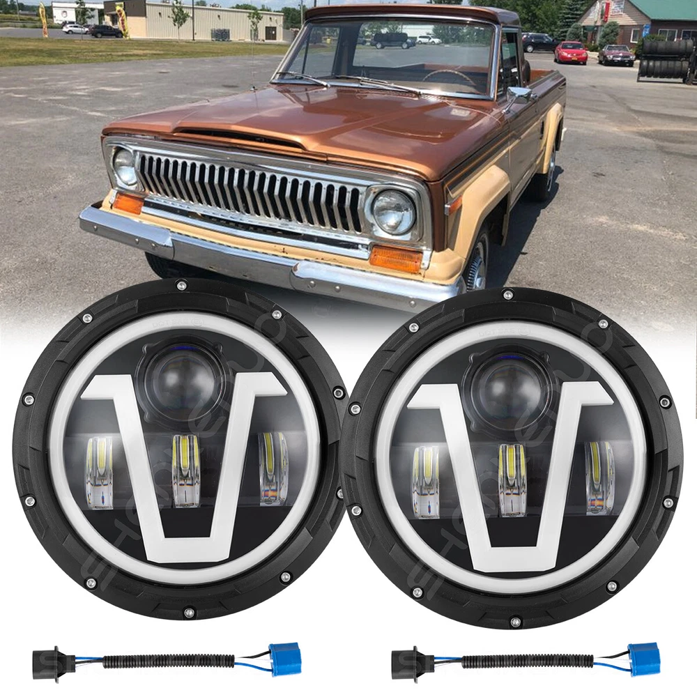 Product Description Package Includes: 2PCS 7-Inch Round V Style LED Headlights 2PCS H4-H13 9008 Adapter Wires (Installation instruction not included) Note: Some models may require a mounting bracket, which is not included! Specifications: Housing Color: Sleek Black Voltage: DC12V Color Temperature: Cool White 6000K-6500K LED Power: 50W each, 100W per set Luminous Output: 10000LM (High Beam), 8000LM (Low Beam) Lighting Functions: High Beam / Low Beam / Daytime Running Light / Turn Signal Life Span: 50,000+ hours for long-lasting performance Energy Efficiency: Save 60% more energy, reducing fuel consumption! Compatibility: Replaces 7-Inch Round H6024 Sealed Beam Housings Waterproof Rating: IP67 for all-weather performance Product Features: Maximum Brightness: Equipped with premium LED chips, these headlights deliver 100% more brightness compared to stock or halogen lights, improving nighttime visibility. Weatherproof Design: DOT Approved, IP67 rated, and equipped with anti-flicker technology for seamless performance without the need for extra decoders. The sealed design keeps moisture and water out, ensuring reliable performance. Hassle-Free Installation: Easy plug-and-play setup saves you time and effort. Built for durability, these headlights boast an impressive lifespan of over 50,000 hours. About the Adapter: A slight flicker may occur due to Jeep Wrangler's voltage instability, not because of the headlights. The flicker is more noticeable with brighter LEDs, unlike dimmer halogen lights. Simply plug in the headlights first. If there is no flicker, the adapter is not needed. Upgrade your vehicle with these cutting-edge 7-inch LED headlights, delivering exceptional brightness, style, and reliability! (Including but not limit the following applications) Application: For Alfa Romeo Spider (1988-1994) For AM General Hummer (1992-2001) For American Motors AMX (1968-1978) For American Motors Gremlin (1970-1978) For American Motors Hornet (1970-1977) For American Motors Javelin (1968-1974) For American Motors Matador (1974-1978) For American Motors Pacer (1975-1980) For Bertone X 1/9 (1984-1989) For Chevy Blazer (1969-1974) For Chevy C10 (1975-1980) For Chevy C10 Pickup (1969-1974) For Chevy C10 Suburban (1969-1980) For Chevy C20 (1975-1980) For Chevy C20 Pickup (1969-1974) For Chevy C20 Suburban (1969-1980) For Chevy C30 (1975-1980) For Chevy C30 Pickup (1969-1974) For Chevy Camaro (1967-1981) For Chevy Chevelle (1971-1973) For Chevy Chevette (1976-1978) For Chevy El Camino (1971-1975) For Chevy G10 G20 G30 (1975-1987) For Chevy K10 K20 K30 K5 Blazer (1969-1980) For Chevy Laguna (1973-1975) For Chevy Lux (1980-1982) For Chevy Malibu (1973-1975) For Chevy Monte Carlo (1970-1975) For Chevy Monza (1975-1980) For Chevy Nova (1963-1978) For Chevy Pickup Truck (1967-1973) For Chevy Truck (1947-1957 and 1962-1972) For Chrysler (1949-1955) For Datsun 240Z 260Z 280Z 280ZX (1970-1978) For DeSoto (1949-1955) For Dodge (1949-1955) For Dodge B100 (1975-1978) For Dodge B100 Van (1971-1974) For Dodge B150 (1984-1987) For Dodge B200 (1975-1978) For Dodge B200 Van (1971-1974) For Dodge B250 (1984-1987) For Dodge B300 (1975-1978) For Dodge B300 Van (1971-1974) For Dodge B350 (1984-1987) For Ford Bronco (1966-1977) For Ford Custom 500 (1971/1976) For Ford E-100 Econoline (1969-1978) For Ford E-100 Econoline Club Wagon (1975-1978) For Ford E-150 Econoline (1969-1978) For Ford E-150 Econoline Club Wagon (1975-1978) For Ford F-100 (1975-1979) For Ford F-100 Pikcup (1969-1974) For Ford F-150 (1975-1979) For Ford F-250 (1975-1979) For Ford F-250 Pickup (1969-1974) For Ford F-350 (1975-1979) For Ford F-350 Pickup (1969-1974) For Ford Falcon Sedan Delivery (1961-1965) For Ford Mustang (1965-1973) For Freightliner Century Class (1996-2011) For Freightliner Coronado (2001-2016) For Honda Civic (1976-1981) For Hummer AM General 1992-2001 For Hummer H1 2002-2006 For Hummer H2 2003-2009 (H2 needs 9007 male to H4 female adapter, package not included) For International Harvester 4200 4300 4400 For Jeep Cj-5 1955-1983 For Jeep CJ-7 (1976-1986) For Jeep CJ-8 Scrambler (1981-1985) For Jeep Wrangler JK 2 Door (2007-2018) For Jeep Wrangler JK 4 Door Unlimited (2007-2018) For Jeep Wrangler LJ Unlimited (2004-2006) For Jeep Wrangler TJ (1997-2006) For Jeep Wrangler TJ Unlimited / LJ (2003-2006) For Kenworth T2000 (1998-2010) (Buyer Note, Our Headlight plug is H4,H4-H13) For Land Rover 90/110 1983 to 1991 (including 2.5N/A, 2.5 Turbo, V8) For Land Rover 90/110 Defender 200 Tdi For Land Rover 90/110 Defender 300 Tdi For Land Rover 90/110 Defender Td5 For Land Rover 90/110 Tdi For Land Rover Defender 90 & 110 For Land Rover Defender 90 1995 For Land Rover Defender 90 1997 For Land Rover Range Rover County Classic SportUtility 4-Door 1995 For Mack DM RM RW RS RL CF For Mazda 808 1976-1977 For Mazda Miata (1990-1997) For Mazda Miata MX5 MX-5 (1990-1997) For Mazda Mizer 1976-1977 For Mazda RX-7 1979-1985 For MG Midget (1969-1979) For Oldsmobile Omega (1974-1979) For Peterbilt 359 (1981-1987) For Peterbilt 379 (1988-2009) For Plymouth (1949-1955) For Plymouth Barracuda (1964-1974) For Plymouth Valiant (1963-1976) For Porsche 944 (1983-1991) For Toyota Corolla (1969-1980) For Toyota LandCruiser (1979-1987) For Toyota Pickup (1979-1981) Motorcycle Fitment: (Fits following motorcycle:) For Any Motorcycle models with 7 inch Round headlight,such as(Not limited): For Dyna SwitchbackFLD: 2014, 2016 For Softail Convertible CVO FLSTSE : 2010-2012 For Softail Cros Bones FLSTSB: 2008-2011 For Softail Deluxe CVO FLSTNSE: 2014-2015 For Softail Deluxe EFI FLSTNI FLSTN: 2005-2017 For Softail FatBoy : 2001-2017 For Softail Heritage Classic Springer Classic EFI FLSTI FLSTC FLSTS: 1991-2017 For Softail Nostalgia FLSTN : 1993-1996 For SoftailSlim FLS S FLSS: 2012-2017 For Touring Electra GlideClassic CVO FLHTCSE EFI FLHTCUIPolice FLHTP: 1994-2017 For Touring Road King Classic EFI FLHRCI Police CA FLHR: 1994-2017 For Touring Street Glide CVO FLHXSE EFI FLHX