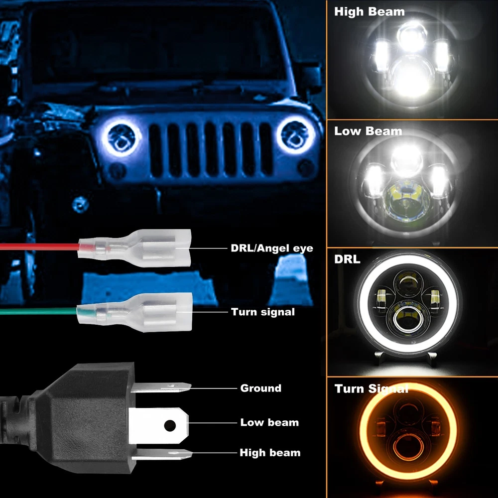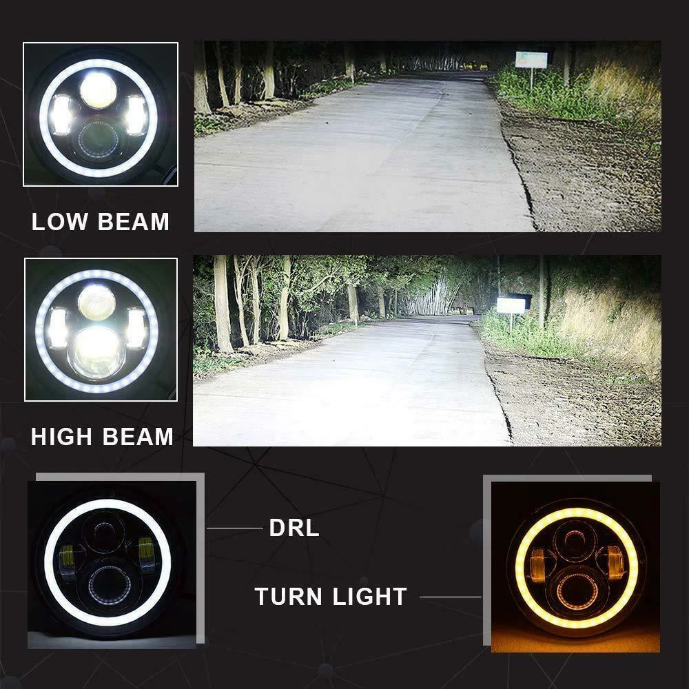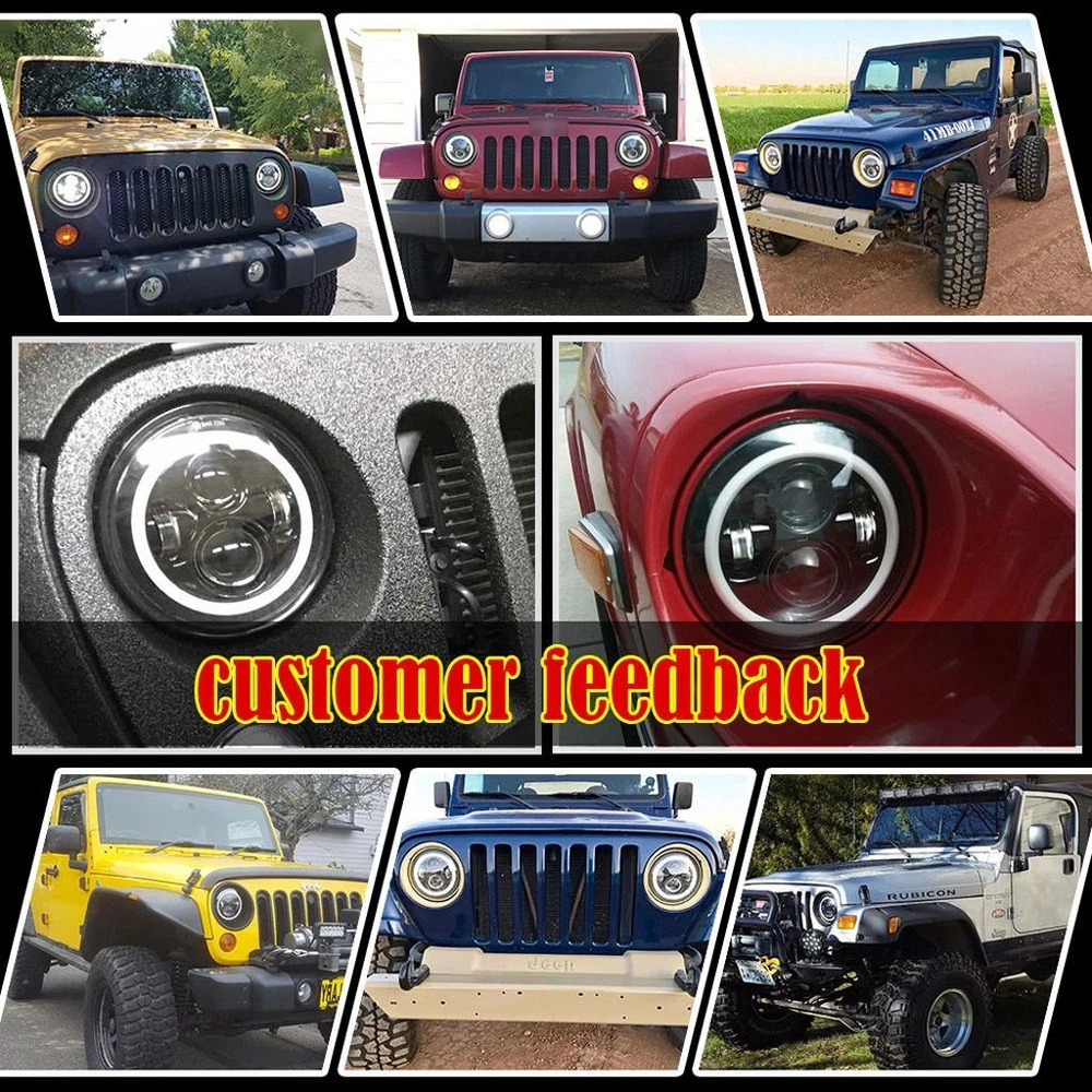 Pair 7'' Inch Round LED Headlights Halo Angle Eyes For Jeep Wrangler JK LJ TJ US WAREHOUSE - USPS FAST FREE SHIPPING Notice: 1.Please check whether it is fit for your vehicle before purchase. 2.Please allow 1-3mm in size deviation due to manual measurement. 3.Due to the light and shooting angle, pictures may have slightly chromatic aberration. Motorcycle Fitment: Fit for Any Harley Davidson Models with 7" Round Headlight Fit for 2012-2016 Harley Davidson FLD Fit for 1994-2013 Harley Davidson Touring Fit for 2009-2013 Harley Davidson Trike Models Fit for 1994-2016 Harley Davidson Softail Models Equipped with Freight Train Headlamp Nacelle Kit Fit for 2006-2010 FLHTCUSE Models (Require Separate Wiring Harness, Not included in Package) Note : 2007 Electra Glide Ultra Classic Need Aftermarket Mouting Kit Fit for 1999-2003 Yamaha Road Star 1600 Fit for 2000-2003 Yamaha Road Star 1600 Midnight Fit for 1999-2003 Yamaha Road Star 1600 Silverado Fit for 2004-2009 Yamaha Road Star 1700 Fit for 2004-2007 Yamaha Road Star 1700 Midnight Fit for 2004-2007 Yamaha Road Star 1700 Midnight Silverado Fit for 2008-2011 Yamaha Road Star S Fit for 2004-2010 Yamaha Road Star Silverado Fit for 2008-2011 Yamaha Road Star Silverado S Fit for 2000-2009 Yamaha V Star 1100 Classic Fit for 1998-2009 Yamaha V Star 650 Classic Specification: Material: Durable ABS and LED Color: Black Voltage: DC12V Life Span: 50000 hours Dimension: (7 inches) 7.01" x 7.01" x 3.07"(178mm x 178mm x 78mm) Power: 140W/PC 280W/Pair Features: -7 inches LED Headlights is Multi- function - Halo can be White or Amber. Amber is for turn signal; white is for DRL. -Faster on/off response time, striking warning effect to enhance driving safety. -Weatherproof, low power consumption, long lasting. -Simple installation - Plug & Play. Package included: 2 x 7 inch Round LED Headlights. (with the adapter wire of H4-H13) (Installation instruction is NOT included) Detail Image: Payment: 1.We accept ebay payment only. 2.All major credit cards are accepted through secure payment processor ebay payment. Shipping: 1.We ship to your eBay or ebaypayment address. Please make sure your eBay and ebaypayment address is correct before you pay. 2.Items will be shipped within 1-3 business day when we received payment. 3.Delivery time depends on destination and other factors; 4.International buyers please note: a.Import duties, taxes and charges are not included in the item price or shipping charges. These charges are buyer’s responsibility. We will try our best to reduce the risk of the custom duties. b.Please check with your country's customs office to determine what these additional costs will be prior to buying. Returns: Please contact me before opening any return,don't worry, I will definitely solve your problem.thank you!!! 1) If you received an incorrect, damaged, defective, or item not as described, contact us for a partial/full refund or replacement on our cost. 2) If you want to return the item, please contact us within 30 days after package received. Return products must also be in its original condition: including box, packaging and all other accessories. Payment 1.We accept PayPal only! 2.Please keep the consistency of the address from Paypal and eBay. 3.Payment must be received within 3 days since you won the item, or eBay will launch Unpaid Reminder Against you. Delivery Details 1. All items will be shipped to buyer's ebay address,we don't take charge for wrong address left. 2. All items will be shipped within 24 working hours upon receipt of payment, and multiple items will be combined shipping. 3. In most cases, delivery takes around 1-7 business days from US Warehouse by UPS/USPS, it's highly depended on the efficiency of the shipping carrier. If your item doesn't arrive on time, please contact us immediately for further assistance. Please note there is no local pickup service available. Term of Sales Customer satisfaction is our top priority. Please message us over the eBay messages. All returns must have RMA number. Returns with no RMA number will be avoided! Changed your mind and don't want the item anymore? No Problem! Please contact us within 30 days. We do not charge restocking fee unless the item you are returning is Brand New. Defective/Dead items will be fully refunded or replaced after matching the serial number with the one in our records. Order/bid cancellation: We can cancel your order only if you contact us within 15 min after your purchase. No exceptions. If your order arrives incorrect or the package is damaged in result of a carrier company, you must notify us within 2 days of receipt. We are aware of all fraud cases and have all the items details in our records. If the goods are not defective, you will be responsible for the return postage costs. Returned item must include all previously included accessories. No restocking fee will apply. If there is a quality issue or malfunction with the product, we strongly suggest you to contact us asap. Any item needed to be returned must be securely packaged, insured and shipped with tracking for safety. We cannot be responsible for lost damaged packages. We carefully inspect returned items upon receipt before any possible refunds, credits, or exchanges. Thank you for purchasing from us We are professional manufacturer seller. All products are factory direct sales, best quality at best price.We strive for 100% customer satisfaction. We maintain high standards of excellence and strive for 100% customer satisfaction. Positive feedback with 5 star rating is very important to us. Please give us a chance to resolve any issues before posting a neutral or negative feedback. Thanks a lot. 1. All items will be shipped to buyer's ebay address,we don't take charge for wrong address left. 2. All items will be shipped within 24 working hours upon receipt of payment, and multiple items will be combined shipping. 3. In most cases, delivery takes around 2-3 business days from UK Warehouse by RoyalMail, it's h