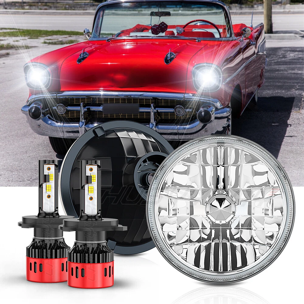 Pair 7" Inch Round LED Headlights Hi/LO Sealed BEAM Fit Chevy Bel Air 1955-1957