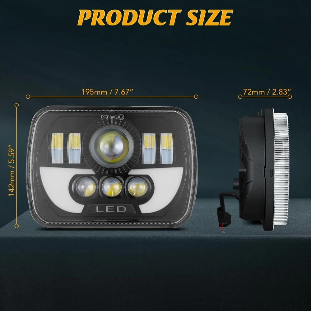 Features:Color temperature: 6000KWorking voltage: DC 9V to 32VMoisture resistance rate: IP68Beam pattern: High beam/Low beamPlug: Factory H4 plug with hi/lo beam functionAverage Lifespan more than 80,000 hours of usageLED wattage: 95WSize(Single Work Light): 7.67" (length) * 5.43" (width) * 2.68" (depth)Light output: high beam 9000 lumens per assembly / low beam 4500 lumens per assemblyMade by high quality black aluminum housing with PMMA lensProfessional installation is high recommended Vehicle FitmentEach piece comes with LED sealed beam light and toughen PMMA lens with H4 plugFit for most vehicle with sealed beam headlights(H6014 H6052 H6054 H5054 H6054LL 69822 6052 6053) Package Included:1PC 7x6 inch led headligh Specification: 3 Function: High Beam + Low Beam + DRL Size: 5x7 inch / 7x6 inch LED Power: 100W Luminous Flux: 8000LM@high beam,4800LM@low beam Operating Voltage: 9-32V DC Waterproof rate: IP 68 High intensity LEDs Color Temperature: 6000K Material: Aluminium heat sink body Lens material: PMMA Lens Life Span: more then 80000 hours Working temperature: -40~ 85C Plug: Factory H4 plug with hi/lo beam function Size(Single Work Light): 195mm (length) * 72mm (width) * 142mm (depth) Fit for most vehicle with sealed beam headlights(H6014 H6052 H6054 H5054 H6054LL 69822 6052 6053) Package Included: 2PC 7x6 inch led headlight Replace for H6054 H5054 H6054LL 6052 6053 69822. Fitment: Any other car H6054 H6014 H6054LL 69822 6052 6053 with 5”x7”or 7”x6” Rectangular Headlight,Such as: Fit For any Vehicle with 5"x7"(7"x6" ) headlights,such as: Fit For Jeep Wrangler YJ 1987-1995 Fit For Jeep Cherokee XJ 1984-2001 Fit For Jeep Wrangler MJ Comanche 1986-1992 Fit For GMC Savana 3500 1998-2002, 2004, 2007, 2009-2012 Fit For GMC Savana 2500 1998-2001, 2004, 2006, 2008, 2010-2012 Fit For GMC Savana 1500 1998-2001, 2003, 2005, 2007, 2009-2012 Fit For GMC Safari 1998-2002, 2004, 2005 Fit For GMC K3500 1997-2000 Fit For GMC K2500 Suburban 1997-1999 Fit For GMC K2500 1997-2000 Fit For GMC K1500 Suburban 1997-1999 Fit For GMC K1500 1997-1999 Fit For GMC C2500 Suburban 1997-1999 Fit For GMC C2500 1997-2000 Fit For GMC C1500 Suburban 1997-1999 Fit For GMC C1500 1997-1999 Fit For Ford F-550 Super Duty, Ford F-450 Super Duty, Ford F-350 Super Duty, Fit For Ford F-250 Super Duty, Ford F-250, Ford F-150, Ford E-450 Super Duty, Fit For Ford E-350 Super Duty, Ford E-350 Econoline Club Wagon, Ford E-350 Econoline Fit For Ford E-350 Club Wagon, Ford E-250, Ford E-150 Econoline Club Wagon, Fit For Ford E-150 Econoline, Ford E-150 Fit For Chevrolet Express 3500, Chevrolet Express 2500,Chevrolet Express 1500, Chevrolet Astro Fit For 82-94 Chevy S10 Pickup Fit For 1986-1992 Toyota Pickup,Toyota MR2,Toyota Celica,Toyota Supra,Nissan 240SX Note : Toyota pick up will need extra relay kit(B07B9QQMMH,Package not not included )