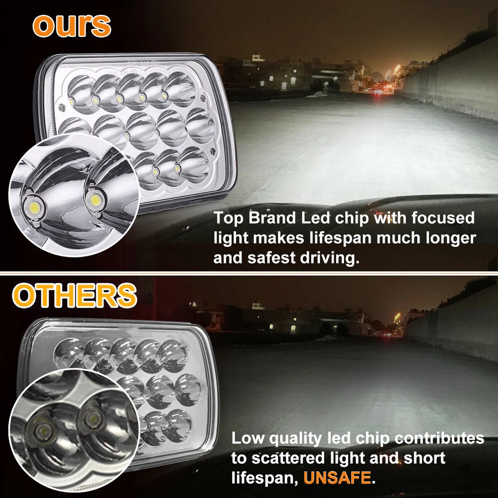 Description 1 Pair 7X6" LED headlight Bulbs Sealed Truck Headlamp Auto Headlight Notice: Please verify the year, make and model in the product details before purchasing. Professional installation is highly recommended if you have any difficult in installation. Please allow 1-2mm in size measurement chart for variance due to manual measurement. Fitment: Compatible with headlights: H6014 / H6052 / H6054 / 6054 Suitable for indoor & outdoor uses, off-road lighting, trailer interior & exterior lighting, various vehicles lighting, construction lighting, boat lighting. The product can be used in different type vehicles such as off-road vehicles, UTV, ATV, Cargo Van,trucks, cars, trains, farm vehicles, construction vehicles etc. Specifications: LED Power:45W (15pcs*3W)High Intensity Epsitar LEDs Operating Voltage:9-30V DC Color Temperature: 6000k Working Life: 30,000+ Hours Beam: Spot beam(with High/Low beam) Waterproof Rate: IP68 Material: Aluminium die cast housing Theoretical Lumens Output: 3600 lm Size: 195mm x 140mm x 79mm / 7.68" x 5.51" x 3.11" Features: Tough and strong quality construction, withstand most bad weather and conditions. Nice performance, is more brighter than normal halogen bulb and ordinary LED light. Low power consumption and energy-efficient. Wider light transmission and better light focusing, easily observe other vehicles at night. Clear vision maximizes the driving visibility and safety. Aim at long service life, shock-and vibration-resistant, waterproof. Quick and convenient installation, just plug and play. Air vent valve for anti-fogging,which protects the lamp in the fog. Unique patented breather, which can dissipate the heat,moisture and water inside the light dody,truly making the light breathable and realizing much more longer lifespan and better performance. Package included: 2 x Led Car Light Bulb (Installation instruction is NOT included)