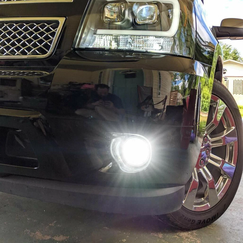 Specifications: - Type: Front Bumper Fog Lights Assembly -Power:12Watt Each Light -Input Voltage: 9-32V DC -Operating Voltage: 12V DC -LEDs: 12Watt LED Bulbs -Lighting Source: LED Projector -Brightness: 800LM Each light,1600LM Each Pair -Waterproof: IP65 -Lifespan:>5000hrs -Interchange Part Number : 15839896, 22872763, 7R3Z15200A, FO2590111, GM2590104, 1225-0110 ATFL0344. Features: *【DOT/SAE COMPLIANT】 Legal on the road. IP67 Waterproof Rate. Meets or Exceeds all Transportation Regulation in the U.S. & Canada. *【ENHANCE VISIBILITY】 Unique Horizontal Focused Beam, the fog lights utilize high-intensity led chips. Effectively brighten your front road during nighttime, heavy rain, snow, or dense fog. Premium die-cast aluminum housing provides excellent rigidity, high impact resistance. Over 50,000hrs lifespan. *【EASY INSTALLATION】 Replacing the original fog lamps kit with 5202 adapters. This pair of led fog lights assembly come with Factory Bolt-On Design, 20Mins or less to Install these lamps from start to finish. Fitment: -Fit for 2007-2013 Chevrolet Avalanche w/ Round Fog Lights -Fit for 2007-2013 Chevrolet Suburban 2500 w/ Round Fog Lights -Fit for 2007-2014 Chevrolet Suburban 1500 w/ Round Fog Lights -Fit for 2007-2014 Chevrolet Tahoe w/ Round Fog Lights -Fit for 2010-2013 Chevrolet Camaro w/ Round Fog Lights (Not Compatible RS Package or W/ Xenon Headlights Models) -Fit for 2015-2018 Chevrolet Silverado 2500 HD w/ Round Fog Lights -Fit for 2015-2017 Chevrolet Silverado 3500 HD w/ Round Fog Lights -Fit for 2015-2018 Chevrolet Colorado w/ Round Fog Lights -Fit for 2007-2012 GMC Acadia w/ Round Fog Lights -Fit for 2007-2013 GMC Yukon XL 2500 w/ Round Fog Lights -Fit for 2007-2014 GMC Yukon w/ Round Fog Lights -Fit for 2007-2014 GMC Yukon XL 1500 w/ Round Fog Lights -Fit for 2014-2015 GMC Sierra 1500 w/ Round Fog Lights -Fit for 2015-2018 GMC Canyon w/ Round Fog Lights -Fit for 2015-2018 GMC Sierra 2500 HD w/ Round Fog Lights -Fit for 2015-2018 GMC Sierra 3500 HD w/ Round Fog Lights -Fit for 2007-2014 Ford Mustang w/ Round Fog Lights -Fit for 2008-2010 Ford Explorer Sport Trac w/ Round Fog Lights -Fit for 2007-2010 Ford Escape w/ Round Fog Lights -Fit for 2007-2010 Ford Escape Hybrid w/ Round Fog Lights Package includes: 2PCS LED Fog Lights (both driver and passenger side) Note: 1. These fog lights are designed to replace original fog lights, wire harness not included. 2. You may need to buy an extra wiring harness to install these lights if your truck (Not Prewired) doesn't come with stock fog lamps before. Payment Shipping Returns Contact us Feedback Payment Payment methods : Payment is expected within 7 days of auction close. Unpaid Items will be forfeited per eBay . Immediate payment needs to be processed for items with Add to Cart option so that any promotional discounts can be applied to your order immediately. International Buyers – Please Note: a) Import duties, taxes and charges are not included in the item price or shipping charges. These charges are the buyer's responsibility. b) Please check with your country’s customs office to determine what these additional costs will be prior to bidding /bu ying. Shipping 1.All items will be shipped to your eBay Address .Please update your latest address when you check out,and please make sure to provide us with correct,precise and detailed shipping address. 2.If your shipping address and the item location both are US, it will be shipped by USPS or UPS. All items will ship within 1-2 business days after the we receiving clear payment. 3.Service transit time is provided by the carrier. Transit times may be a little delayed during holiday season. 4.International order will be sent from China within 3 business day after the we receiving clear payment. ---For International Orders. Both are the same products and same warranty. Duties and taxes may apply. Please check with your country's custom and eBay policy for more information. 5.Where is my tracking number? Please log on your account, click "my eBay"-->"my summary", or open your email box and find the shipping notification email. Returns Our 30 days Satisfaction Guarantee assures our customers that they will receive all orders promptly and exactly as described. In addition, we offer FREE RETURNS for US buyers. It allows customers to return faulty and unused products for any reason within 30 days from the date of purchase. *Please contact us first before you sent a return request* The seller is responsible for all return shipping, including those due to customer errors or defective items. 1) If you receive an item that is incorrect, damaged, defective or not as described, please contact us for a partial/full refund or replacement. 2) If you want to return the item, please contact us within 30 days after receiving the package. 3) If you open a return request ,please select the reason for return: Doesn't fit/Changed my mind/Just didn't like it/Order by mistake. 4) We provide the 1 year of product warranty. If your product have quality problem within the warranty period, please contact us to provide repair or replacement services to you. Note: Return products must also be in its original condition: including box, packaging and all other accessories Contact us Our Working Time:(GMT+8)Monday to Friday,9:00-18:00. Have Question or Problem? Please contact us first! 1. We will reply you within 24 hours once we receive your email during business days. There will be some delay on response if you send message or E-Mail on weekend. 2. Describe your question clearly. We have a very professional and attentive customer support team. We will give you the best solution by our great communications. 3. We have always been trying to provide the best service and reliable product for every customer. However, sometimes may happen accident. Please contact us solve any issue before leaving a negative feedback. Feedback 1.We appreciate your business and strive to improve our customer service and our co