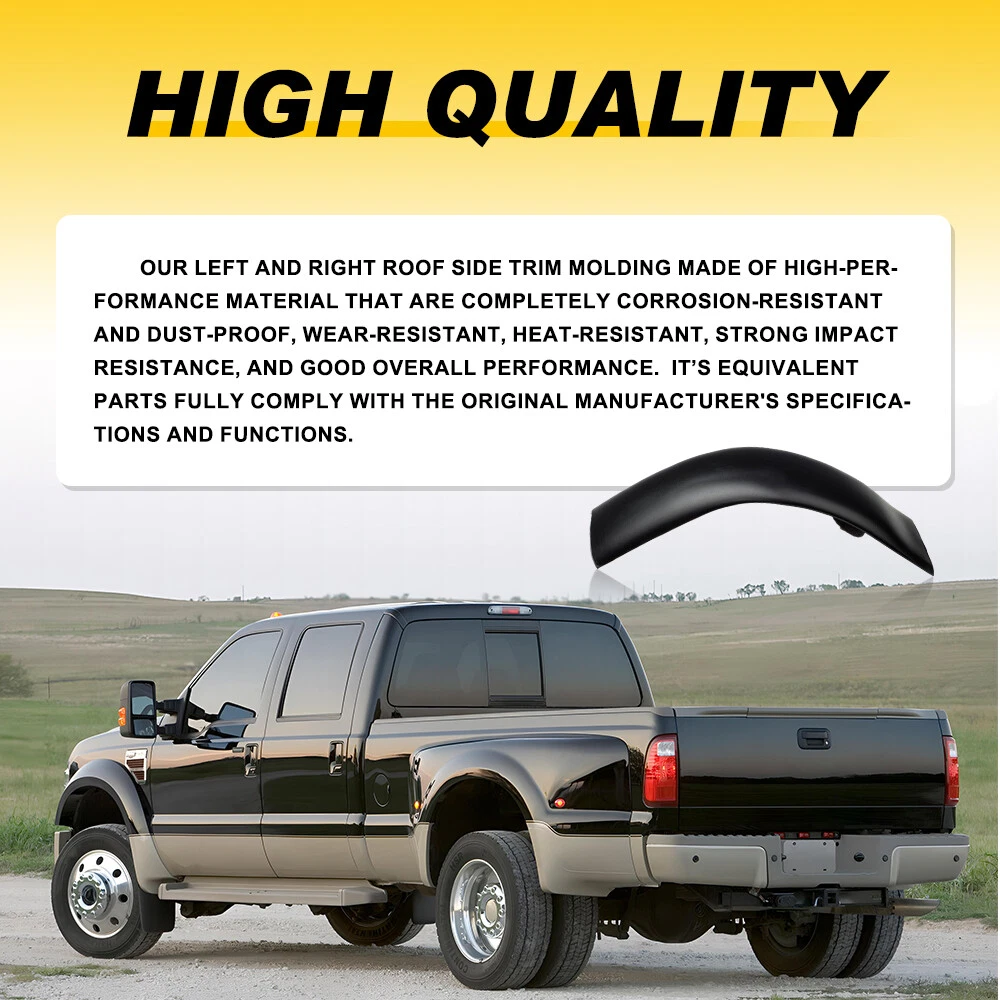 Upgraded Cab Corner Roof Molding Fits For 1999-2007 Ford F-250 F-350 F-450 F-550 Fits for: 1999-2007 Ford F-250 Super Duty 1999-2007 Ford F-350 Super Duty 1999-2007 Ford F-450 Super Duty 1999-2007 Ford F-550 Super Duty (Fits Regular Cab & Crew Cab Model ! Extended Cab Not Included!) Specifications: OE: Left: F81Z-2551729-AAB, F81Z-2551729-AAC, F81Z-2551729-AAM F81Z-2551729-AAH, F81Z-2551729-AAJ, F81Z-2551729-AAL F81Z-2551729-AAK, F81Z-2551729-AAD, YC3Z-2551729-AAA F81Z-2551729-AAE, F81Z-2551729-AAP Right: 81Z-2551728-AAB, F81Z-2551728-AAP, YC3Z-2551728-AAA Pair Cab Corner Roof Molding Trim Black For 1999-07 Ford Super Duty F-450 F-250 Upgraded Cab Corner Roof Molding Fits For 1999-2007 Ford F-250 F-350 F-450 F-550 Fits for: 1999-2007 Ford F-250 Super Duty 1999-2007 Ford F-350 Super Duty 1999-2007 Ford F-450 Super Duty 1999-2007 Ford F-550 Super Duty (Fits Regular Cab & Crew Cab Model ! Extended Cab Not Included!) Specifications: OE: Left: F81Z-2551729-AAB, F81Z-2551729-AAC, F81Z-2551729-AAM F81Z-2551729-AAH, F81Z-2551729-AAJ, F81Z-2551729-AAL F81Z-2551729-AAK, F81Z-2551729-AAD, YC3Z-2551729-AAA F81Z-2551729-AAE, F81Z-2551729-AAP Right: 81Z-2551728-AAB, F81Z-2551728-AAP, YC3Z-2551728-AAA YC3Z-2551728-AAB, F81Z-2551728-AAA, F81Z-2551728-AAC F81Z-2551728-AAD, F81Z-2551728-AAF, F81Z-2551728-AAM F81Z-2551728-AAE, F81Z-2551728-AAH, F81Z-2551728-AAJ Color: Black Material:ABS Features: *High-quality Made of high-performance material with corrosion-resistant and dust-proof, wear-resistant, heat-resistant, strong impact resistance, and good overall performance, and its equivalent parts fully comply with the old specifications and functions. *Direct fit&Easy to install This driver and passenger side roof moldings are easy to install for replacing the old one. It is save your time and money by replacing it yourself. *All tested before shipment All products were tested for performance and to ensure the accurate parameter for your vehicle. *Warm notice Please double-check the part number and models in the description to guarantee it fits your vehicle before ordering. Packaging include: Roof Molding*2 Item Specifics Country/Region of Manufacture China Brand Unbrand Features Durable, Easy Clean, Easy Installation, Self-Adhesive, Waterproof Manufacturer Warranty 2 Years Universal Fitment Direct Replacement Number of Product 2pcs Note “Fits Regular Cab & Crew Cab Model ! Extended Cab Not Included!” Type Roof Placement on Vehicle Left, Right Manufacturer Part Number F81Z-2551729-AAB, F81Z-2551729-AAC, F81Z-2551729-AAM OE/OEM Part Number F81Z-2551729-AAH,F81Z-2551729-AAJ, F81Z-2551729-AAL, Interchange Part Number F81Z-2551729-AAK,F81Z-2551729-AAD, YC3Z-2551729-AAA Other Part Number F81Z-2551729-AAE, F81Z-2551729-AAP,81Z-2551728-AAB, Finish Painted Surface Finish Completed Other Part Number 1 YC3Z-2551728-AAA,F81Z-2551728-AAP, YC3Z-2551728-AAB, Interchange Part Number 2 F81Z-2551728-AAA,F81Z-2551728-AAC,F81Z-2551728-AAD, Interchange Part Number 1 F81Z-2551728-AAF,F81Z-2551728-AAM F81Z-2551728-AAE Fitment Type Direct Replacement Other Part Number 2 F81Z-2551728-AAH, F81Z-2551728-AAJ UPC 680221497751 Color Black FAQ ♥ If you have a decoding problem or any other problems, please contact us first, we will help you with it. We will reply you within 24 hours in working days. I'm a new seller, thanks a lot for your trust and convince! I will serve you with all my heart. ♥ Q1: Will this bulb fit my vehicle? A: We can match almost any vehicle to one of our bulb sizes. eBay only lets us include some vehicle fitments per listing, but if your vehicle does not show up on the compatibility table at the top of our listings, welcome you to contact us for free consulation before purchasing a product. Q2: My item has not arrived, what's taking so long? A: Sometimes items take longer than expected, especially if it’s going far or to rural area. Check with your post office to see if your item has been held up. Sometimes Royal Mail will not update a tracking number until it has arrived at its destination. If your item still don't arrive after a few days, let us know so we can double check for you and help solve it asap. Q3: My bulbs won't fit, help! A: Special bulb holder may be required. See if you can take the holder from the stock bulb. If not, let us know. The bulb size may be wrong, double check the item you received with the item you ordered. Do you have an aftermarket lighting housing? These may not be perfectly fitted for aftermarket bulbs and will require some manual modifications. Q4: Neither side lighting up? Both sides flicker, hyper flash, or work inconsistantly. A:Check the light fuses, and then check the ballast plugs to insure correct installation. If this doesn't work, there may be a voltage problem with the vehicle. You probably just need a relay or capacitor. Even though some bulbs are builtin resistors, they may still need a decoder. Pay & Ship (1). We gladly accepts payment via PayPal, We will ship your item(s) within 24 hours. (2). Before payment, please keep the consistency of Paypal address and ebay address. (3). Quantity orders are welcome! Returns (1). We offer 60 days free return policy. Please contact us within 60 days from the date you receive your order if you have any issues with the product or want return. Refund will be send after we got your resend package. (2). All returned items should be in the original packaging , return tracking information should be provided . Contact Us (1).Negative feedback will not help resolve any problems you have, please contact us via eBay messages before leaving negative feedback , our customer service will make best effort to help you with the issues. (2).We maintain high standards of excellenceand strive for 100% customer satisfaction! Feedback is very important to us. We request that you contact us immediately before you give us neutral or negative feedback, so that we can satisfactorily address your concerns. About us We're professional in car and mot