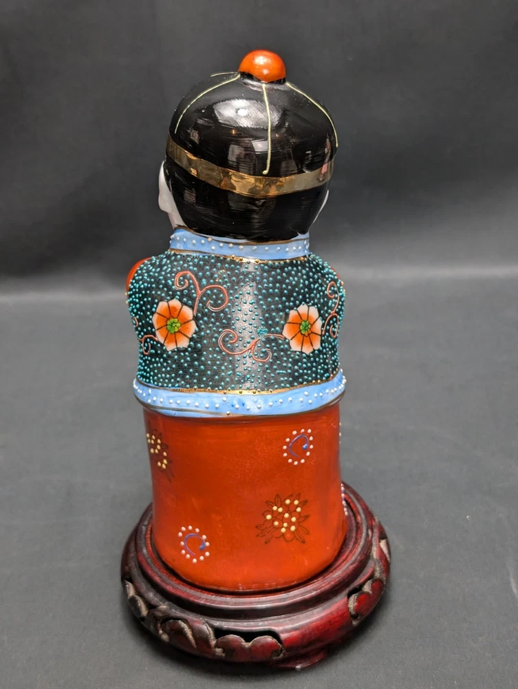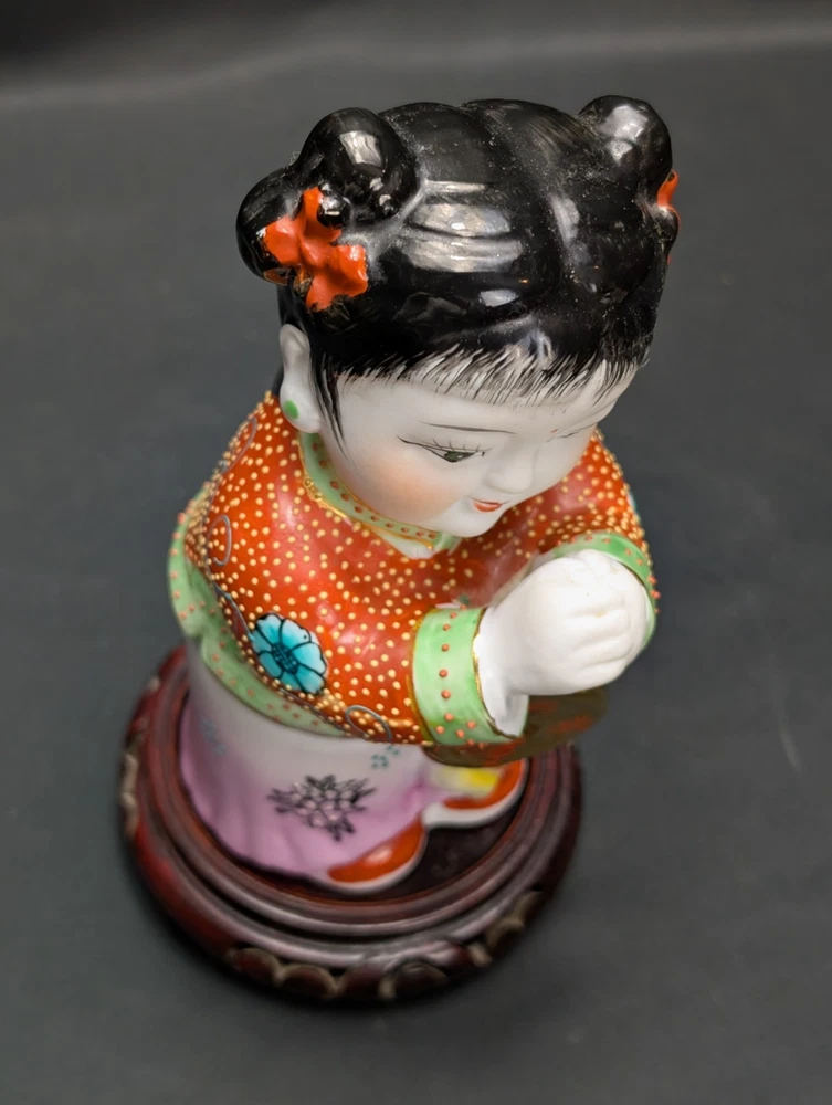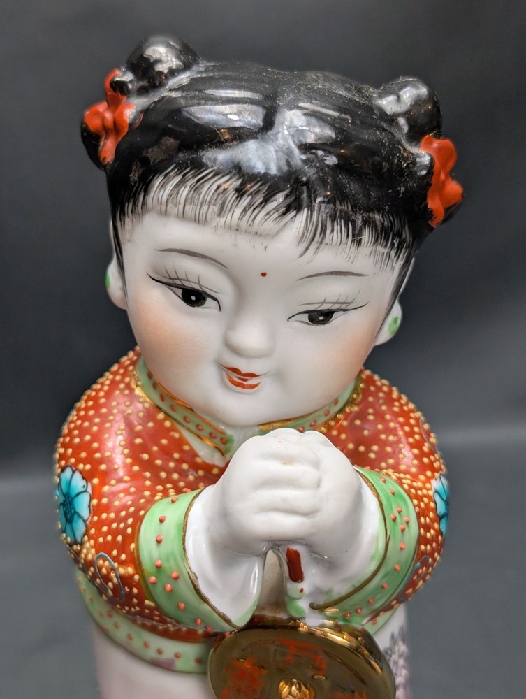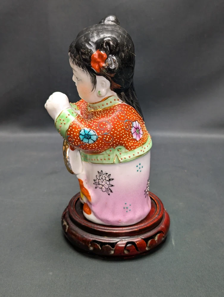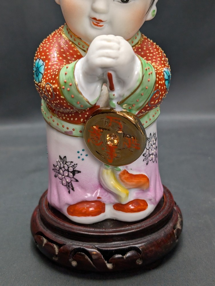Pair of Chinese porcelain figurines depicting Jintong and Yunu (Golden Boy and Jade Girl), traditional Chinese symbols of harmony, prosperity, and good fortune. In the UK these are often described as Chinese good luck figures or boy and girl prosperity figures. The figures are decorated in bright enamel colours with gilt detail and are dressed in traditional costume, each holding a symbolic coin plaque associated with wealth and good fortune. Both figures are mounted on their original carved wooden stands. The porcelain bases feature factory vent holes typical of Chinese export porcelain. The wooden stands retain a Made In China label, indicating late 20th century manufacture. Condition is great overall with no cracks or repairs observed. Minor surface wear consistent with decorative use. A decorative and symbolic pair of Chinese export figurines, suitable for display in the home or as traditional good luck ornaments. Please inspect the photos to check the quality/condition for yourself. PLEASE READ THE BELOW CAREFULLY IN REGARDS TO ALL USED ITEMS IN OUR STORE. Most of our items are in used condition with some wear from general use and as such, they may show some marks. Please ensure you examine the pictures as we aim to capture any considerable marks/damage in images and we will only sell items we consider to be usable. The pictures allow you to inspect the finer detail and quality of the product before purchasing, zoom in for further inspection. Please ensure you're happy with measurements shown in photos as some items may appear bigger than real life due to close-up shots. Vintage electronics sold as "working" are tested and functional at time of listing, but may require future maintenance or component replacement due to their age. Items listed as "spares & repairs" are sold for parts/restoration and functionality is not guaranteed. No warranty provided on continued functionality for any vintage electronics. Some electronics may have security stickers placed over access screws to prevent tampering. If these stickers are removed or tampered with, no refund will be given. Rest assured, refunds are available under normal circumstances as outlined below. Items are sold as-is based on photos and description. We accept returns for change of mind or if the item differs from what was described or pictured - please see our returns policy for full details. From a smoke and pet free home. Some items may require cleaning before use, we clean what we reasonably can but recommend inspection upon receipt and clean if necessary. Items do not come boxed or with certificates unless stated otherwise in our descriptions. Questions are welcomed before purchase if you need any additional details or clarification. Please choose your preferred postage courier at checkout - we offer Evri & Royal Mail. Where possible we try to use recyclable materials for packaging. We may also choose a different service or courier depending on your location, item value, and package size. Feel free to contact us if you need to discuss postage options. We have many more items in our store, from pottery, glassware, cameras, vintage, antiques, clothing, trainers and much more. Feel free to check it out. Thank you from the Basement Hoarders team.