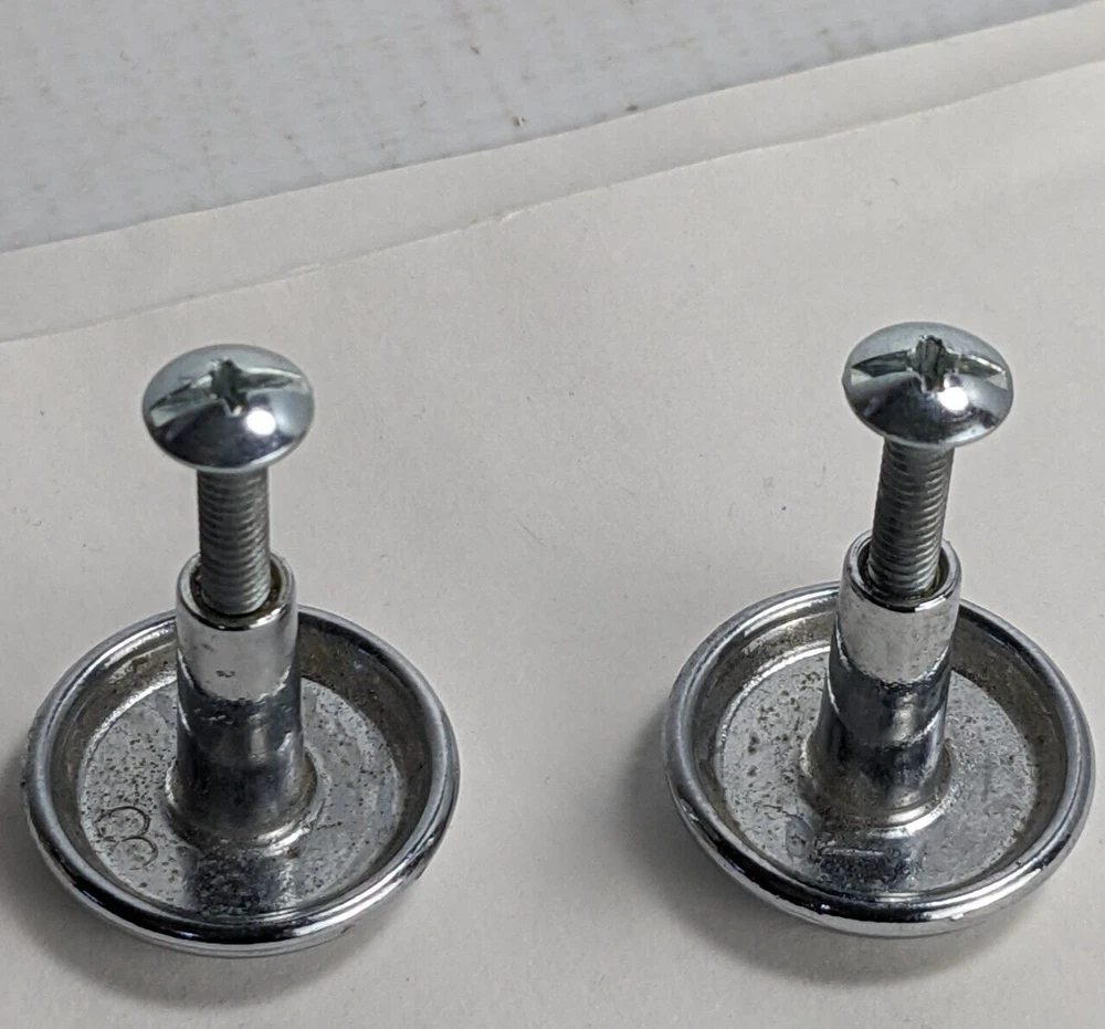 2 furniture knobs, Chrome shiny finish, 1 in diameter, screws included Pre-owned item, used condition showing signs of wear and use, some scratches. All images provided accurately represent the item(s) you will receive and should be regarded as an integral part of the description. We encourage you to carefully review each image. If you have any questions or need further details about this listing, please feel free to reach out to us.