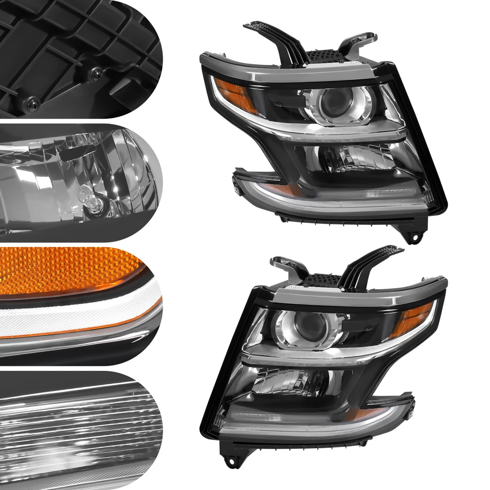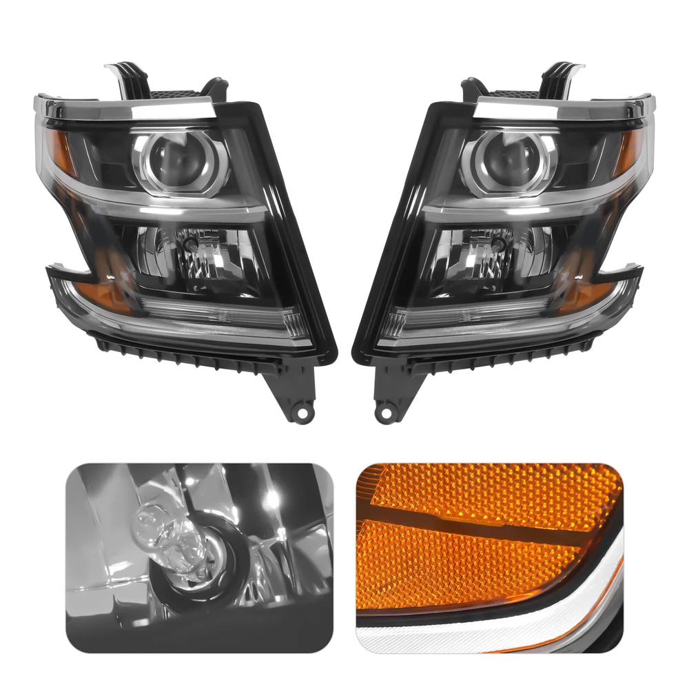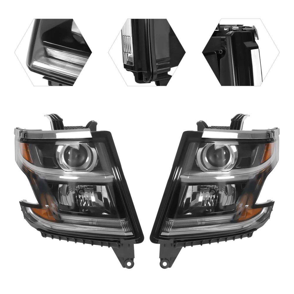 Pair For 2015-2017 Tahoe/ Suburban Right & Left Halogen Headlights w/ LED DRL Welcome to our store~ For 2015-2017 Tahoe/Suburban Specifications OE Part Number: 23490005, 23490006 Interchange Part Number: GM2502405, 23490005, GM2503405, 23490006 Manufacturer Part Number: GM2502405, GM2503405 Applicable Models: For 2015-2017 Tahoe/Suburban Condition: New Material: PC, PP Type: Headlight Assembly Process: Injection Molding Light Color: Warm Lens Color: Clear Housing Color: Black Light Source: Halogen High Beam Light: Halogen(Included) Low Beam Light: Halogen(Included) Turn Signal Light: Halogen(Included) Side Marker Lamp Light: LED (Included) LED Daytime Running Light: Yes Installation Position: Front, Left, Right Way of Use: Direct Replacement Assembly Method: Closed Number of Items: 2 Voltage: 12V Power: 55W(Low Beam), 60W(High Beam) Each Gross Weight: 4kg/8.82 lbs Each Package Size: 40*40*32cm/ 15.75*15.75*12.6 in Key Features Sturdy and Durable: This product is made of PC and PP with an injection molding process, which is impact- resistant, abrasion -resistant, and not easy to age, so it can be used without frequent replacement. Safe Driving: The light adopts a halogen light source with good color rendering performance and an environmentally friendly LED light source, helping prevent many accidents in road traffic by warning oncoming traffic to avoid unnecessary collisions. Good Compatibility: This product is a customized product, specially customized for the 2015-2017 Tahoe/Suburban , so it can be compatible with the adapted models. Highlights Brand New, With High Quality Direct Replacement Strong and Durable Strict Manufacturing Process Easy to Clean Professional Design Long Service Life Trouble-free Installation Notes We strongly recommend professional installation. Please note that this product is not intended for use with HID types. Please double-check compatibility before purchasing to ensure proper fit. Please allow for slight color differences caused by shooting light and errors caused by manual measurement, and make sure you don't mind before ordering. If you have any questions, please contact us, and we will reply and solve your problem as soon as possible. Fits (As a Reference) For 2015-2017 Tahoe/Suburban OEM Part Number: 23490005, 23490006 Package Included 1x Left Headlight 1x Right Headlight Payment Delivery details Terms of sales About us Contact us Payment We accept ebay payment 。 Fees such as import duties, taxes are not included in the item price or shipping costs. These charges are the buyer's responsibility. Delivery details Shipping: 2-9 working days to: USA Terms of sales We maintain high standards of excellence and strive for hundred percent customer satisfaction. Feedback is very important to us. We hope that you contact us immediately before you give neutral or negative feedback, so that we can address your concerns. It is impossible to address issues if we do not know about them! About us Your satis faction is our ultimate goal. We work hard to earn your trust and future business. Our certified technicians have tested each item before shipping. The unit comes with 1 year limited warranty on all manufacturing defects. a) If you receive a defective item, you may return it or ask for a discount. Please contact us within 14 days after you receive the package. b) What you returned must be intact and in its original packaging as re? u. Customer is responsible for shipping costs of the returned item. c) We will cover the cost of shipping back t with the shipping rate indicated in the registration page. We will send you a new unit or refund the full payment you paid. Thank you. Contact us Business Hour Business Hour: Monday To Friday: 8:30 AM to 5:00 PM (Beijing China time) Due to time zones, our reply to your questions may not be immediately. But within above working time, we will reply your email within 24 hours. If it's non-workdays, please kindly be patient and wait till Monday. Please contact us with ebay message. Please feel free to contact us if you have any questions. Monday To Friday: 8:30 AM to 5:00 PM (Beijing China time) Due to time zones, our reply to your questions may not be immediately. But within above working time, we will reply your email within 24 hours. If it's non-workdays, please kindly be patient and wait till Monday. Please contact us with ebay message. Please feel free to contact us if you have any questions. Warranty 10 years Manufacturer Warranty 10 Years Brand Unbranded OE/OEM Part Number 23490006, 23490005 Interchange Part Number GM2503405, 23490006 Manufacturer Part Number GM2502405, GM2503405 Applicable Models For 2015-2017 Tahoe/Suburban Material PC, PP Type Headlight Assembly Process Injection Molding Light Color Warm Lens Color Clear Housing Color Black Lighting Technology Halogen Voltage 12 V Power 55W(Low Beam), 60W(High Beam) Placement on Vehicle Front, Right, Left High Beam Light Halogen(Included) Low Beam Light Halogen(Included) Turn Signal Light Halogen(Included) Side Marker Lamp Light LED (Included) LED Daytime Running Light Yes