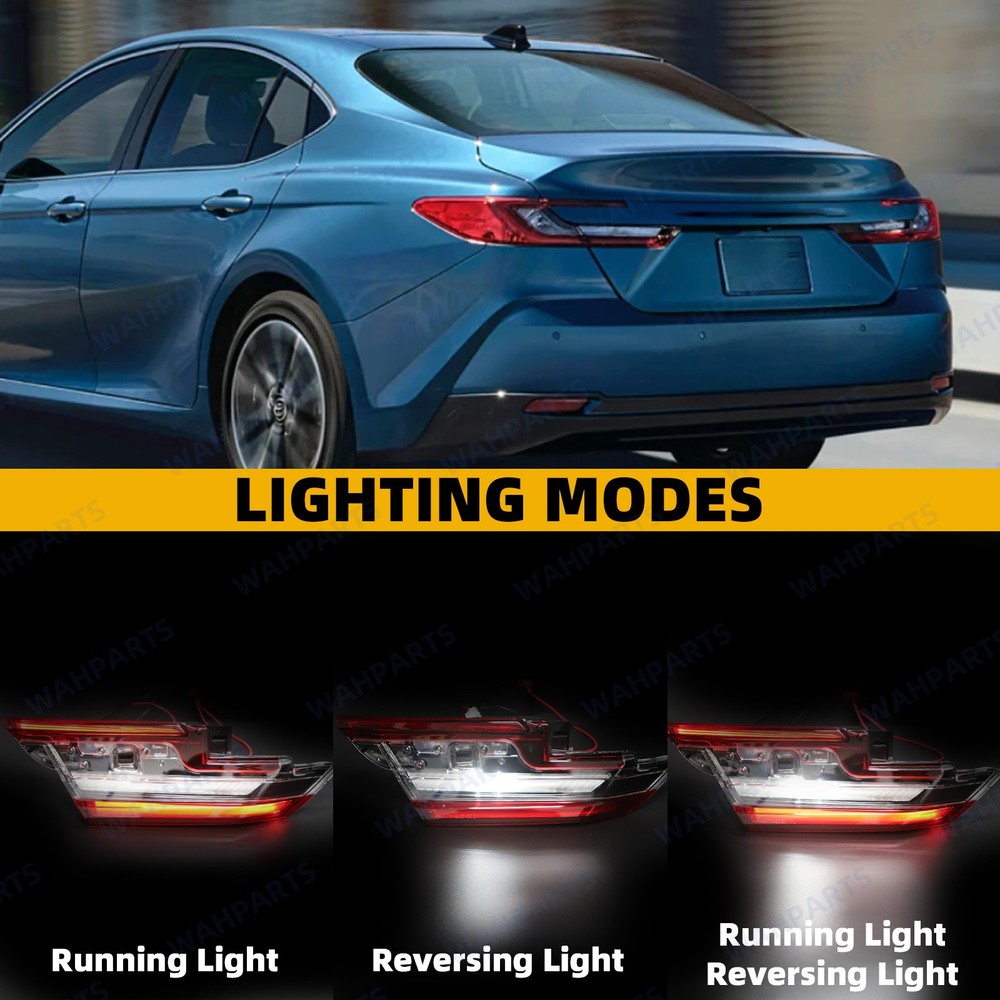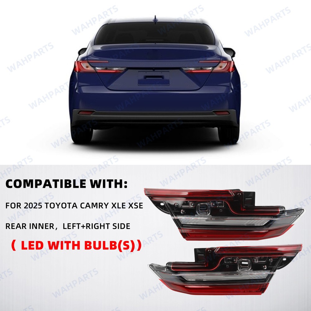 Features & details 【 Compatible With 】2025 Toyota Camry XLE XSE Please check if the picture and part number in the link are the same as your original part. 【Replace OE Number】 【 Description 】 Condition: 100% Brand New Fitment Type: Direct Replacement Placement on Vehicle: Rear, Inner, Left & Right Side Type: LED Tail Light Assembly Light Technology: LED Items Included: With bulb (s) Housing Color: Black Lens Color: Red 【 Features 】 Easy to Install. The tail lights are made according to the original specifications and can be perfectly matched with your car. They are directly mounted without modification, which is convenient. Sealed Design. Due to the fully sealed structure and one-way ventilation holes, our tail lights are waterproof to keep out moisture and work well in any bad weather such as heavy rain, snow, sand, etc. Reliability & Durability. Our tail lights are strictly tested and inspected to ensure better compatibility with the excellent performance of the car during driving. 【 Package Included 】 1 Pair Rear Left & Right Inner Tail Light Assembly This item doesn't come with manual installation. 【 Note 】 Please allow the slight color difference caused by the shooting light and 1-3cm error due to manual measurement, and make sure you do not mind before you place the order. No installation instruction included, professional installation is highly recommended. 【Service & Warranty】 Purchase from WAHPARTS, enjoy 1 year no worries-warranty, whenever you met issue when installing or using, please contact us via eBay Message, and we will reply within 24 hours and help solve the problem. Customer Question & Answers Q1: Will This Part Fit My Vehicle? We list all the compatiblity, if your vehicle does not show up on the compatibility table at the top of our listings, welcome you to contact us for free consulation before purchasing a product. Q2: Does they come with warranty? All of our product comes with 1-year warranty, but some times you need to pay the shipping fee. Q3: How to use it? If you don't know how to install this accessory, welcome to contact us, we will provide you with a video guide. Payment Shipping Warranty & Service Returns/Exchanges Contact us Payment Most of the payment methods are available, such as Paypal, Payoneer, Credit Card. Within 1 day of receiving your payment, we will start processing your order. Shipping All Items Will Be Ship Within 1working Days, and We Will Ship out All Orders As Soon As Possible After Payment Verified, Please Allow up to 1-6 Business Days for Delivery. Why Choose the Us Stock? 1. Us Local Shipping, No Extra Customs Cost. 2. Fast Delivery: 1-6 Working Days Delivery. Warranty & Service All the product in our store come with a 1-year-warranty. If there is a problem with the product you purchased within 1 year, please contact us, we will provide you with after-sale protection. Our job is not complete until each customer is satisfied! Receiving positive feedback is extremely important to us. We give all our buyers positive feedback as soon as payment is received Negative feedback and bad ratings do not solve the problem! If you contact us via eBay, we will be more than happy to work with you! Returns/Exchanges If you received an incorrect, damaged, defective, or item not as described , contact us for a partial/full refund or replacement on our costs. If we shipped you the wrong part, we pay for the return shipment and send you the correct part. If you ordered the wrong part, contact us for a return address and simply return it,give us a tracking number. We will send you the new item as soon as the returned package is received; If you simply don't want the part, ship it back and give us a tracking number. After we receive the item, we will refund the item price minus shipping costs. All returns must be done within 30 days after receiving the package. Parts must be new and unused in the original condition: including box, packaging and all other accessories,or we will charge you a partial costs. Contact us If you encounter any problems during purchase or use, please contact us via eBay message directly. On Mar 31, 2026 at 20:22:32 PDT, seller added the following information:
