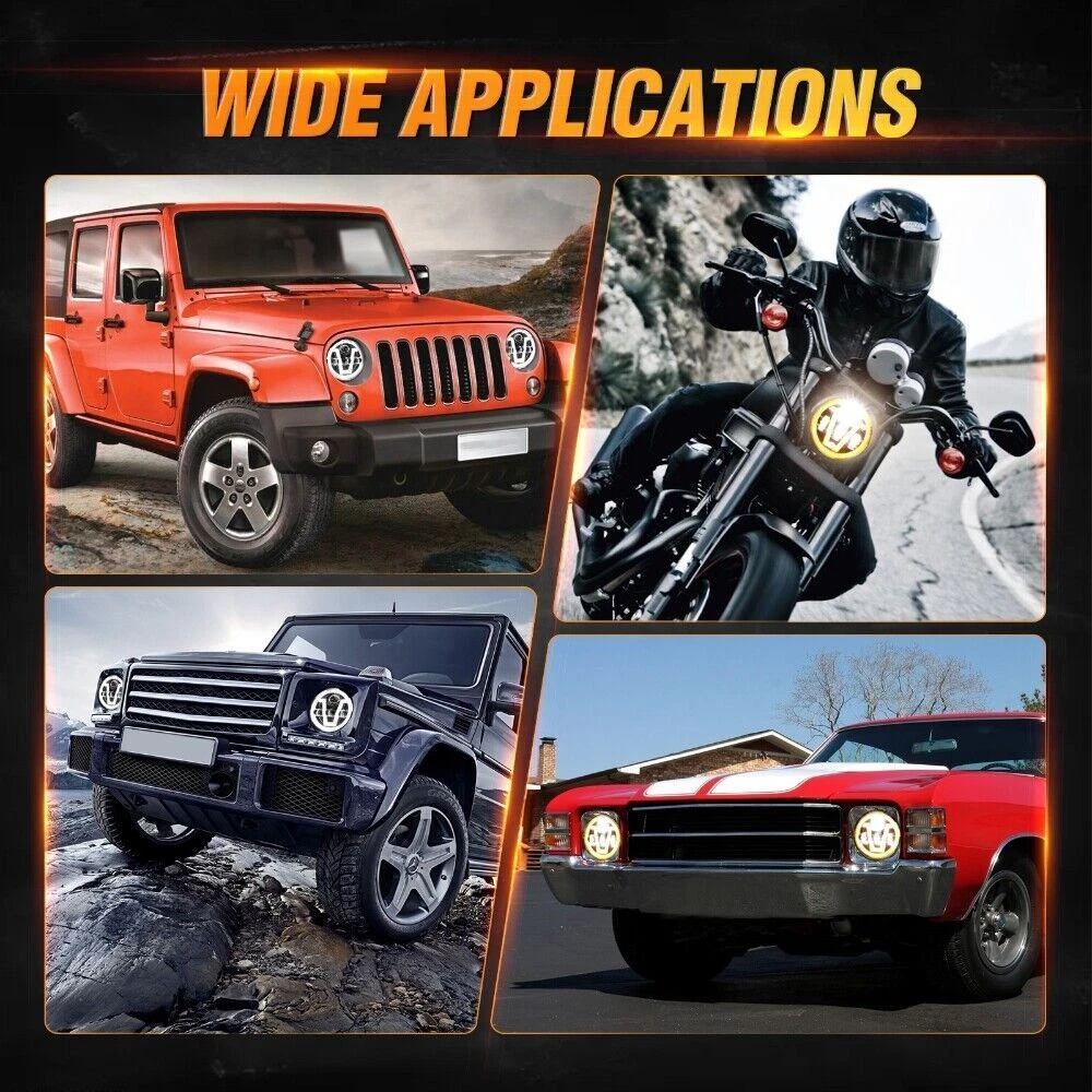 2x 7" round led headlights C10 Package include: 2pc 7" round led headlights 2pc H4-H13 adapter Features: Newest Unique Design- 7 inch led headlight with Exclusive Honeycombed LEDs. Special design provides a more steady and concentrated beam pattern to improve the efficiency of illumination. Durable & High Performance- 7 inch Led Headlights comes with exlusive anti-scratch lens. Built in anti-flicker EMC functions to avoid flickering. Shock-proof and IP 68 waterproof. DOT,SAE,E- Mark approved, work well in all kinds of harsh weather conditions. Plug-N-Play Installation- Super easy to install and very straight forward - Usually in 20 Minutes or Less. LED CANBUS, Included 2pc H4-H13 Adapter. Specification: Voltage: DC 9V~32V Luminous Flux: 8000LM@high beam/PC,4800LM@low beam/PC Color Temperature: 5600-6800K White Wattage: 100W/PC Material: high quality black aluminum housing Lifetime: More than 80000 hours Waterproof Rating: IP 68 Dimensions: 7 Inch Surface Finish: Black Housing Connection: H4/9003 Plug Fitment: For Chevrolet G10/20/30 C10/20/30 Pickup Nova Truck
