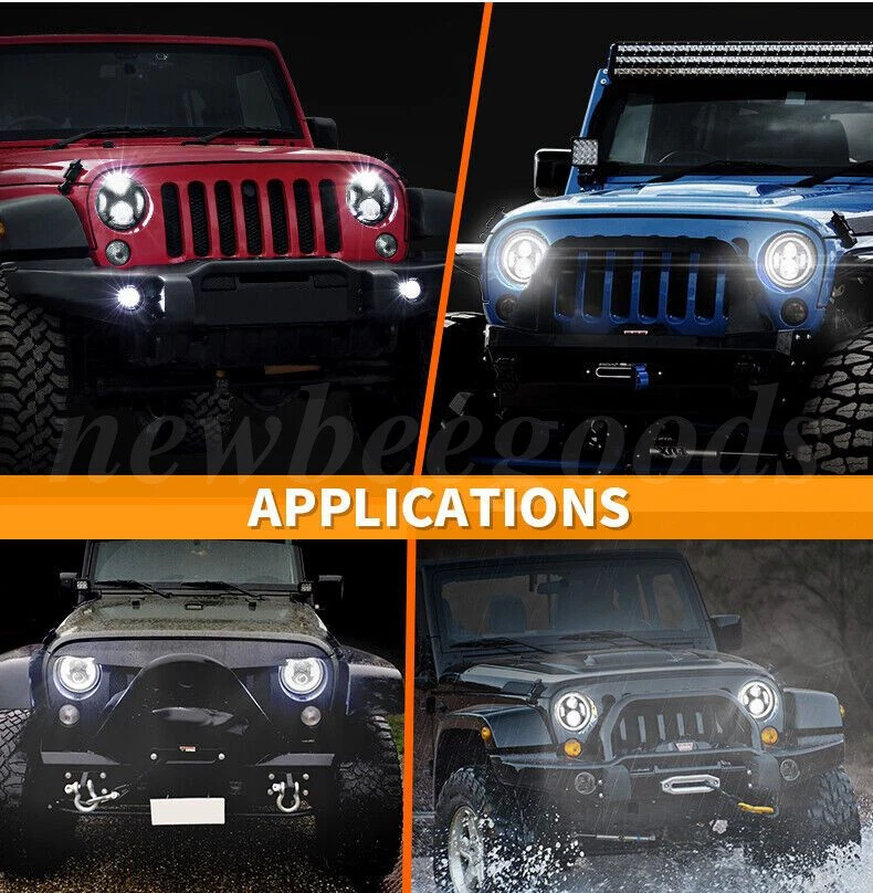 Welcome to NewBeeGoods feedback | contact us Location United States Hours Open 24/7 Support Feel free to Contact us Electronics Motors Supplies Home & Garden Pet Supplies Business & Industrial Newbeegoods USD 37.99 Pair For Toyota FJ Cruiser 2007-2014 7" Round LED Headlights Halo DRL Hi/Lo Beam Notes: 1. Please check whether it is fit your vehicle before purchase. 2.Important: This is a universal item, not adapted to a specific model. In many cases, individual adjustments are required for assembly. Please use the dimensions and pictures to check whether it is possible to fit the vehicle in question. Installation requires knowledge of vehicle electronics, if in doubt have it installed by a specialist workshop. 3. Installation instruction is NOT included,professional installation highly recommended. 4. Note: Without mounting bracket, some models may need mounting bracket! Description: This 7 inch LED headlight has a strong connection with your safe driving. One function is to provide lighting to illuminate the road ahead of the vehicle, accurately illuminate the road ahead, and provide a good vision in bad weather or at night. The other is to play a warning role, in order to remind vehicles and people ahead to improve the safety of driving at night. This headlight is more energy-efficient, has a long service life and a fast response speed. A real amzing item for your car! Features: 【 Multi-functional LED Headlight 】 The 7'' LED headlight has 4 luminous mode (High beam/Low Beam/DRL/Amber Turning Light), making it better remind the opposite passers-by or oncoming cars when you need to turn, so that the other party can make corresponding measures in time, improving the safety of driving at night. 【 Orignal Osram chips 】 The halo lights made with advanced LED chips to give out bright and white rays for clear visibility and broader illumination range, making your driving safe. Its structure adopts a spotlight + flood design, which makes the high beam center point have a wider illumination range and greatly improves driving safety. The item can still perform well and provide the best driving experience for you even in a foggy environment. 【 Excellent Heat Dissipation & Waterproof 】 The housing of the led headlight is made with Die-cast aluminum and has high heat dissipation performance. This product is weatherproof, IP67 waterproof, energy efficient, durable and long-lasting. It can be effective against rain, snow, and heavy fog weather. 【 High Brightness 】 This new LED headlight has 3 times the brightness of ordinary car halogen lights, which is the best choice for upgrading vehicles, ensuring that you drive home safely. 【 Easy To Install 】 Plug & Play, LED Ballast, LED Canbus & H4/H13 Adapter Included. Usually in 20 Minutes or Less for installation. 【 Certificationgs 】 DOT, E9, CE, RoHS, ISO9002, IP67 Specification: Type: LED Headlight Dimension: 7'' Lighting Technology: LED LED Chip: High Quality LED Chip Housing Color: Chrome Headlight Style: Halo Halo Angle Eyes Color: Amber & White Number of Bulbs: 2 Operating Voltage: DC 9-30V Voltage: DC 12V-24V Power: 200W/set; 100W/bulb Life span: Up to 50000 hours Waterproof Rating: IP67 Material: ABS and Aluminum Alloy + PC Breathing Vent: Anti-fogging Working Temperature: -40 + 85°C LED Light Mode: High Beam/Low Beam/DRL/Amber Turning Light Itment Type: Direct Replacement Placement on Vehicle: Front, Left, Right Package Contents: 2x 7 inch Round LED Headlights 2x H4 to H13 Adapter Application: For Any Vehicle models with 7 inch Round headlight,such as: For Jeep Models: For Jeep Wagoneer (1963-1978) For Jeep CJ-7 (1976-1986) For Jeep CJ-8 Scrambler (1981-1985) For Jeep Wrangler TJ 2 Door (1997~2006) For Jeep Wrangler LJ unlimited (4 Door) (2004~2006) For Jeep Wrangler JK 2 Door (2007~2018) ForJeep Wrangler JL 2018~2019 ( need add bracket ) For Jeep Wrangler Unlimited JK 4 Door (2007~2018) For Jeep Wrangler (1997-2015) For 1969-1980 Toyota Corolla For 1979-1987 Toyota Land Cruiser For 2007-2014 Toyota FJ Cruiser For 1979-1981 Toyota Pickup For Chevy Camaro (1969-1981) For Mazda Miata MX5 MX-5 (1990-1997) For Honda Civic (1976-1981) For Ford Custom 500 (1971/1976) For Ford F-100 Pikcup (1969-1974) For Ford F-150 (1975-1979) For Toyota Corolla (1969-1980) For Toyota LandCruiser (1979-1987) For Toyota Pickup (1979-1981) For Oldsmobile Omega (1974-1979) For Plymouth Barracuda (1964-1974) For Plymouth Valiant (1963-1976) For Land Rover Defender 90 (1997) For Land Rover Defender 90 (1995) For Land RoverRange Rover County Classic Sport Utility 4-Door 1995 For Land Rover Range Rover (1987-1995) For Land Rover 90/110 1983 to 1991 (including 2.5N/A, 2.5 Turbo, V8) For Land Rover 90/110 Defender 200 Tdi For Land Rover 90/110 Defender 300 Tdi For Land Rover 90/110 Defender Td5 For Land Rover 90/110 Tdci Hummer AM General 1992-2001 Hummer H2 2003-2009 Hummer H1 2002-2006 For Hummer H1 H2 (2003~2009) ( H2 needs 9007 male to H4 female adapter, package not included ) For Lada 4x4 urban Niva For UAZ Hunter For Suzuki Samurai For Kenworth T-2000 1998-2010(Buyer Note, Our Headlight plug is H4,H4-H13) For Puch G and Mercedes G models For 1990-1997 Mazda Miata For 1976-1977 Mazda Mizer For 1979-1985 Mazda RX-7 For 1976-1977 Mazda 808 Shipping Returns Payment We only support transactions through the eBay, not other channels. We support all payment methods recommended by ebay. We promise to protect all the private information of our customers. It will take about 1-5 working days to reach you within USA. If your item develops a fault due to a manufacturing defect please contact us and we guarantee a satisfactory solution. If you return your item for any other reason within 30 days from receipt we will refund you. 100% Feedback - we're proud of our 100% record and aim to keep it that way! Please contact us if you're not entirely happy with your order and we'll try to rectify it ASAP! Our aim is to ship within 24 hours. All of our products are shipped 