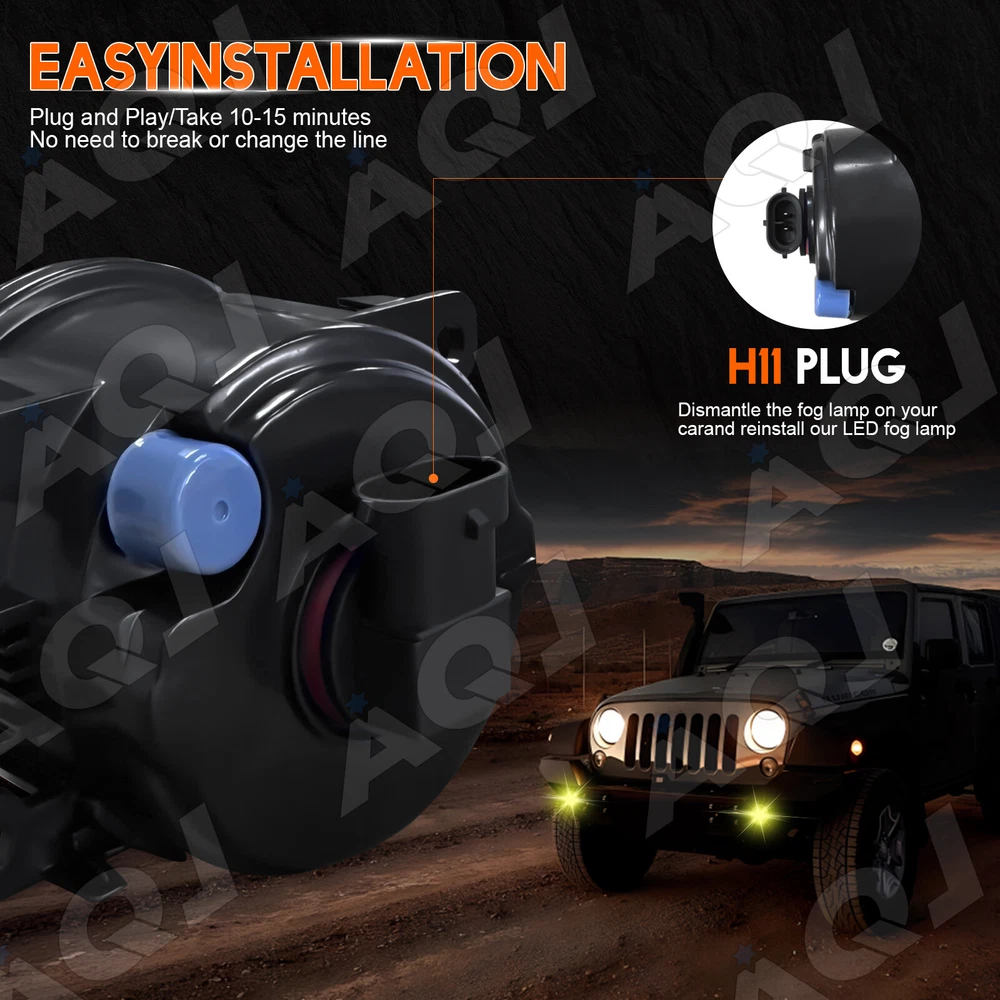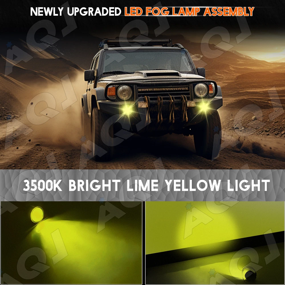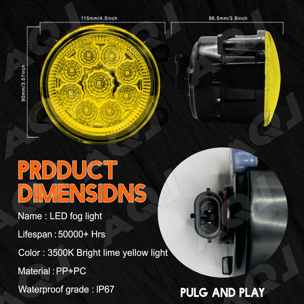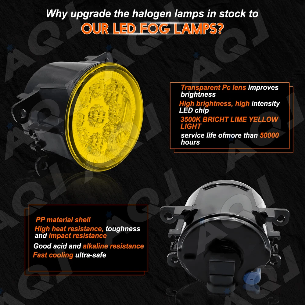 Reference Number2: for Jaguar vehicles using part#XR837532 Note: The box is sent ramdomly Color: YELLOW Reference Number6: for Suzuki vehicles using part#990E0-65J36-000 Other Part Number: For Car/Auto/SUV/Off Road/Pickup/MPV/RV/Vehicle Lighting Technology: LED Item Width: 8.5CM Material: PPT Type: Front Fog Light Reference Number4: for Ford/Lincoln vehicles using part#4F9Z15200AA 3225-2050B Item Length: 11CM Brand: AQJ Power: 55W Manufacturer Part Number: H11 Fog Light Fog Light Type: 3.5" Round,Black inner bezel Beam Type: FOG LIGHTS Light Color: Yellow Finish: As Pictures Shown Voltage: 12V Lumens: 6000 lm Reference Number3: for Nissan vehicles using part#26154-EA500 84501AJ00A Reference Number5: for Subaru vehicles using part#H451SAJ100 Current: 20A Item Diameter: 9CM Bulb Shape Code: H11 Interchange Part Number: H11 Fog Light Reference Number1: for Acura/Honda vehicles using parts#33900STKA11 Superseded Part Number: For Car/Auto/SUV/Off Road/Pickup/MPV/RV/Vehicle Fitment Type: Direct Replacement outer shell:: YELLOW