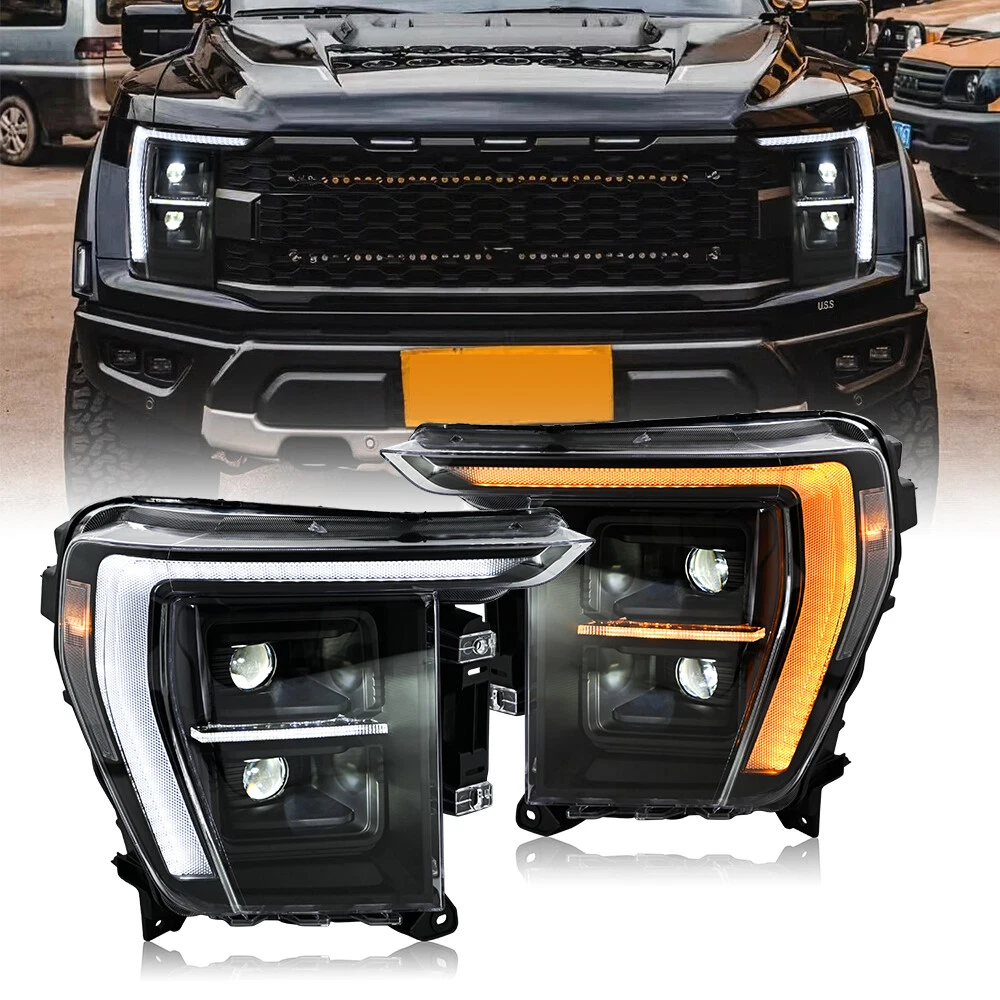 Pair Front Lamps For 2021 2022 2023 Ford F150 LED Projector Headlights Head Lamp Features: 1. One pair: Left + Right head lights 2. Bulbs: All bulbs are built-in LED, no extra bulbs needed 3. Function: DRL(White)+Turn Signal(Yellow)+High Beam(White)+Low Beam(White) lights 4. Easy installation: plug and play,same as original one to install 5.Assembly: all parts are included in the package,no need to buy extra bulbs or harness Fitment Fits For 2021 2022 2023 Ford F150 ( Professional Installation is Highly Recommended ) Package include 1 Pair of Headlights (driver's side + passenger's side) Note 1. Please confirm whether this car-lamps can fit your car before buying, if you are not sure, please contact us and send us pictures of your original car light or plug. 2. Using your factory supplied connector/harness will avoid cutting or modifying any wires. Specification ·100% Brand New ·Professional Installation is Highly Recommended ·Welcome to send us message for more information Warranty: One-Year warranty after receiving After Sales Service Please contact us before returning the products, we will do our best to help you solve all the problem well with good service!!! Questions Any question will be replied within 24 hours except the weekend and holiday. We will serve for you all sincerity!