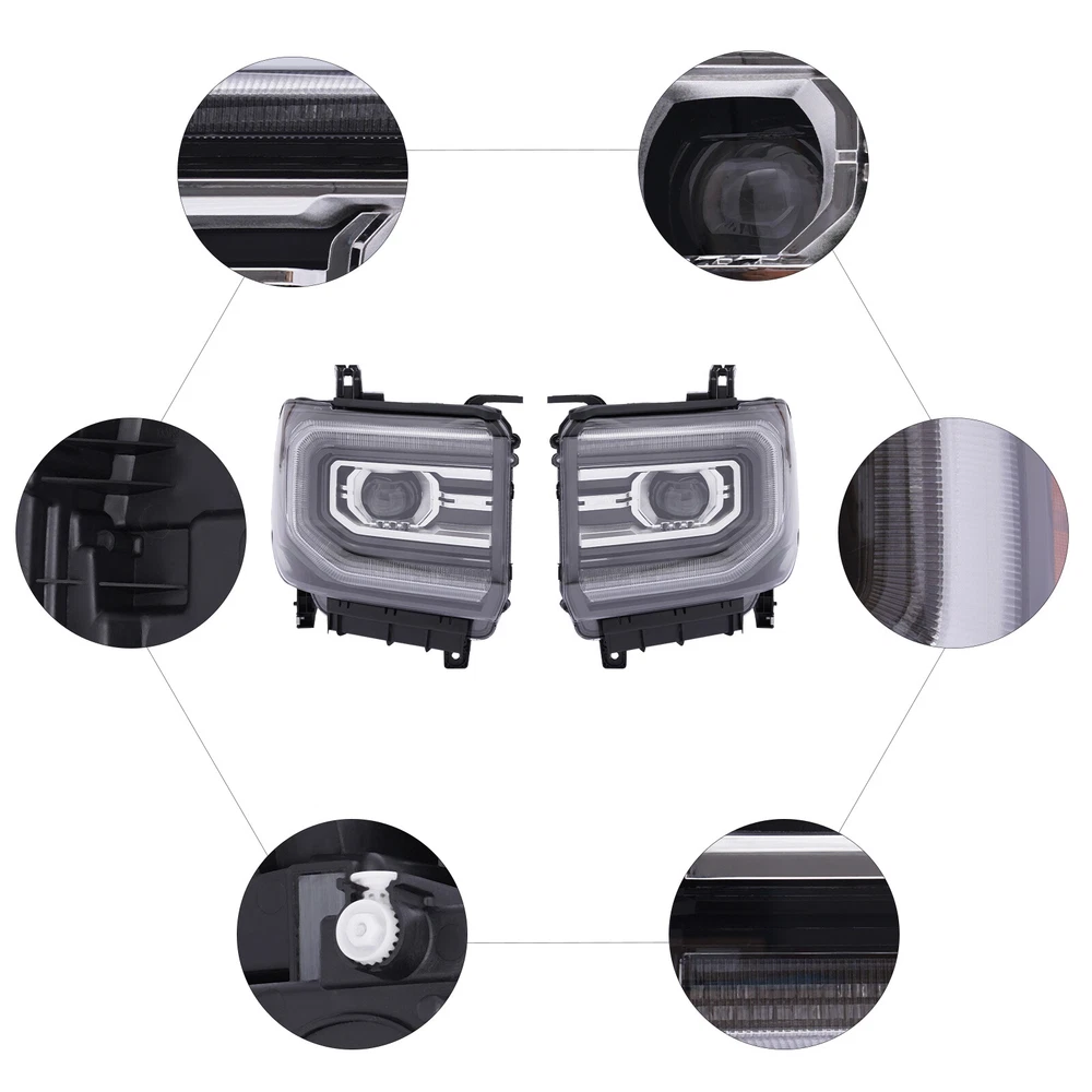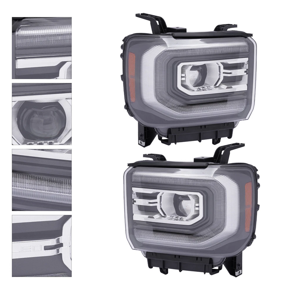 Pair Full LED Lamp Headlights OEM# For 2016 2017 2018 GMC Sierra 1500 Right+Left