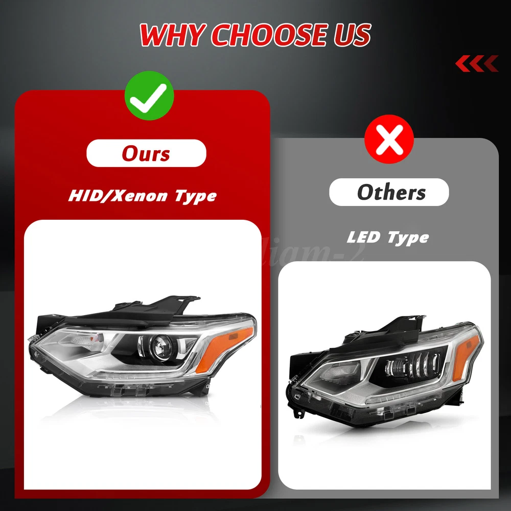 Pair HID/Xenon Headlights Fit 2018-2020 Chevy Traverse With LED DRL Projector PRODUCT DETAILS Description: This 100% brand-new automotive headlight is designed to redefine your vehicle’s appearance, combining sleek lines with refined details for a standout look. Constructed from heavy-duty polycarbonate, it offers durability and impact resistance, ensuring long-lasting clear illumination for enhanced safety. With a plug-and-play design, installation is a breeze, requiring no complex setup. Equipped with premium components and rigorously tested, it delivers exceptional performance and reliability, improving visibility, UV resistance, and impact protection to ensure all-around driving safety. Make every journey a blend of style and security. Specification: Type: Headlight Assembly High/Low Beam: Use stock HID D3S Bulbs DRL: With LED DRL Projector Bulbs Turn Signal: WY21W Side Marker: W5W Housing Color: Chrome Lens Color: Clear Material: Heavy-duty Polycarbonate Condition: 100% Brand New Fitment Type: Direct Replacement Placement on Vehicle: Front, Right Passenger Side, Left Driver Side OE Number: GM2502487 GM2503487 Interchange Part Number: 84887857 84887858 Fitment: Fit for 2018-2021 Traverse w/ Factory HID/Xenon Headlight Model Not Fit for Factory LED Headlight Models Must Re-Use All Factory Xenon HID Components Package Contents: Pair Headlights (Left Driver Side & Right Passenger Side) Without bulbs and wiring harness Features: 【100% Brand New, Redefine Your Vehicle’s Look】Say goodbye to the old and welcome the new. This headlight features a unique design that completely transforms the traditional appearance of automotive lighting, giving your vehicle a fresh, modern look. With its sleek styling and attention to detail, it enhances both the aesthetic and personality of your car, making it the center of attention on any occasion. 【Heavy-Duty Polycarbonate, Quality Choice】Quality is at the core of this headlight. Made from heavy-duty polycarbonate, known for its durability, impact resistance, and lightweight properties, this headlight ensures stable performance even in harsh environments and guarantees a long lifespan. It also provides clearer, brighter illumination, making your drive safer and more worry-free. 【Plug-and-Play, Easy Upgrade】Convenience is a key feature of this headlight. Its plug-and-play design allows for quick installation without the need for complicated steps or specialized tools. No modifications or drilling required, making it easy to upgrade your vehicle’s lighting and give it a fresh new look. 【Exceptional Performance, Safety First】This headlight is equipped with premium internal components and undergoes strict quality control and performance testing to ensure reliable performance under any conditions. Enhanced visibility, superior UV protection, and high impact resistance work together to create a comprehensive safety system that keeps you protected on the road. Note: 1.Please verify compatibility with your vehicle before purchasing. 2.Ensure proper installation before driving to guarantee safety. 3.Due to monitor and lighting differences, the product image may differ slightly from the actual item. 4.Installation instructions are not included; professional installation is highly recommended. PAYMENT We only support transactions on the ebay, do not support offline or private transactions. Please make sure the address is accurate before you pay. SHIPPING We do not ship to PO Box, Alaska/Hawaii, APO/FPO, and US Protectorates. Item(s) would be shipped out within 1~2 working days after received your confirmed payment. Weekends and holidays are not working days. We will choose different warehouses according to the customer's address and item stock, shipped from CA and PA in the United States. RETURN Buyers may return or exchange an item which damaged within 30 days. eBay & PayPal money back guaranteed. CUSTOMER SERVICE We are committed to provide the best purchase experience for our customers. If you have any questions, just feel free to contact us, we respond queries within 24 hours in business days.