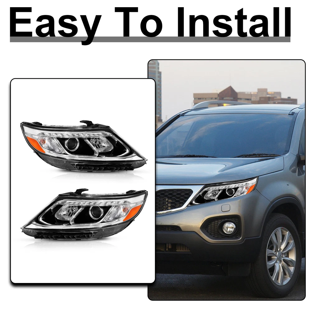 Pair Halogen Headlight Assembly w/Bulbs For 2014 2015 Kia Sorento LX Left Right Features: 1.Direct replacement for stock assemblies 2.Comes in pairs with driver & passenger sides (left & right) 3.DOT and SAE compliant with quality meeting or exceeding OEM units 4.Comes with bulbs to save your money and time 5.All Headlight Lenses come with anti-yellowing/ageing coating 6.1-Year limited warranty Specification: High Beam Bulb: H7 (Bulbs are included) Low Beam Bulb: H7 (Bulbs are included) Chrome Housing Clear Lens Clear Reflector Compatible with: 2014 2015 Kia Sorento LX Package includes: 1 Pair of headlights