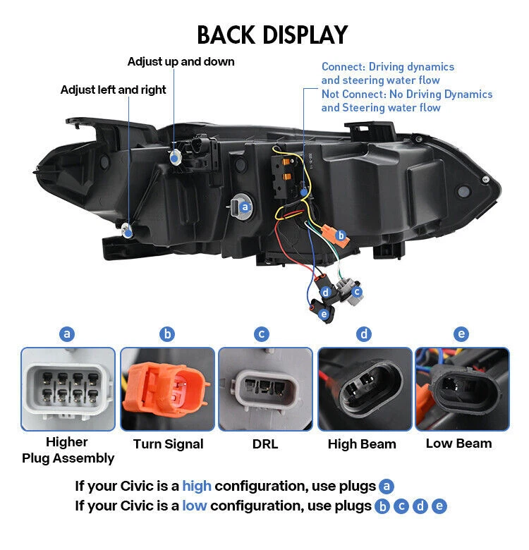 Sunny-Light Lexus Style LED Tail Lights Smoked for Toyota Camry Sedan 2018-22 24 Brake Light BUY NOW Pair LED Front Fog Light for 2020-2024 Land Rover Defender 90 110 130 Assembly BUY NOW LED Tail Lights & Tailgate Light for Toyota Corolla E210 2020-2024 Assembly BUY NOW RGB LED Headlights for 11th Gen Honda Civic 2022-2024 RGB DRL Headlight Assembly BUY NOW LED Tail Light Assembly Turn Signal Light For Dodge Ram1500 2500 3500 2013-2018 BUY NOW LED Grille Light For 2020-2024 Land Rover Defender 90 110 130 DRL Accessories BUY NOW RGB LED Tail Lights Lamp Assembly Fits Toyota Camry 2018-2024 XSE XLE SE LE TRD BUY NOW Smoke Tail Light Assembly 2018-2022 For Toyota Camry LE SE XLE XSE TRD Rear Lamp BUY NOW LED Projector Headlights For Toyota 4-Runner 2014-2023 w/ Dynamic DRL&Sequential BUY NOW Smoked LED Tail Lights Kit Fits 2018-2023 Toyota Camry Sequential Signal Lamps BUY NOW RGB LED Headlights For Corvette C6 2005-2013 Sequential Turn Signal Assembly BUY NOW LED Headlights For Toyota 4Runner 2014-2023 DRL Sequential Turn Signal Head Lamp BUY NOW Pair LED Headlights For Honda Civic 11th Gen 2022 2023 2024 Blue Animation Lamps Fitment: For Honda Civic 2022-2024 Package includes: 1 Pair (Left and Right) Headlight Assembly Set (Including some installation accessories) Specification: Brand :TT-ABC 100% Brand New Type: LED Head light Light Assembly Material:High quality ABS Plastic+PC+PMMA Lighting Technology: LED Light Color: as the picture shown Life Span:100,000 Hours Waterproof Rate:IP68 Voltage:12 V-14V Current: 10A-20A Color Temperature: 5500K-6500K Fitment Type: Direct Replacement Installation Way:Plug and Play Start: There are a few seconds of blue animation Power: 45W Low beam , 65W High beam Including bulb:Full LED (No need to purchase additional light bulbs) Features: DOT-Certified, Durable, Easy Installation, High Quality, OE-Certified, SAE-Certified, Sealed Assembly, Waterproof, ISO-Certified, Dustproof and Sturdy Warranty:1 Year Function: DRL/Running Light+Turn Signal+Blue Animation+Low/High Beam Feature: 1. Built in light bulb, using energy-saving LED bulbs, brighter than ordinary halogen bulbs, with a long service life 2. Modifying car LED Taillight has advantages such as high brightness, low power consumption, and high brightness, as well as a longer service life, effectively increasing the driving safety of motor vehicles. 3. Modification of LED light : LED bulbs have a higher color temperature and are whiter than xenon and halogen lamps. They start without delay and turn on immediately. The beam is more concentrated, with lower power and a long service life (100000+hours) 4.Upgrade your vehicle with the TT-ABC LED Taillight Assembly, combining advanced technology with superior craftsmanship to provide you with safety, style, and peace of mind on the road. 5.Certified with IP67 waterproof rating and DOT, SAE, and CE certifications, you can trust in the reliability and safety of these headlights. The clear and black lens options offer versatility to match your Vehicles style, while the high-quality ABS plastic, PC, and PMMA materials ensure long-lasting durability. 6.Easy installation, plug and play,same as original one to install Fits perfectly without any need for car alterations( ( Professional Installation is Highly Recommended ) About us Payment Shipping Returns Contact us Feedback My store specializes in selling various car modification and customization products, including headlights, high beams, low beams, fog lights, contour lights, turn signals, brake lights, reverse lights, and interior lighting. At the same time, we have our own production factory and cooperate with hundreds of component factories, committed to providing customers with high-quality products, the most favorable prices, and a professional after-sales customer service team. Our goal is to meet the needs of our customers and provide them with an excellent shopping experience. 1.We can accept payment method is PayPal, Google Pay, Visa, Master Card, Amex and Discover and other payment way. 2.Immediate payment needs to be processed for items with Add to Cart option so that any promotional discounts can be applied to your order immediately. 3.Please confirm if the address and postal code are correct before placing an order! Convenient and fast shipping. 1.The package is Shipping from the US Stock by USPS,FedEx or UPS . 2.Shipment will be made within 1 business day after payment, and delivery will take 1-5 business days (excluding packages with a unit price below $50) 3.Please offer us your telephone number and correct zip code,or your order will be delayed since the courier will need it for the delivery.(not ship to Alaska, Hawaii and Puerto Rico). 4.Shipping Fee is include packing & handling charges. 5.International Customers:Import duties, taxes, value added tax and Other charges are Not Includes in the item price or shipping charges. These charges are the buyer’s responsibility and vary by country/location.These charges are not to be confused for additional shipping charges. 6.Please check with your country’s customs office to determine what these additional costs will be prior to bidding/buying. These charges are normally collected by the delivering freight (shipping) company or when you pick the item up. These charges are not to be confused for additional shipping charges. There are some tips for you: 1. If There are any problems with the product, please contact with us before leaving neutral and negative reviews feedback ,give me a Chance to make it right 2. If you are in our exclusion countries. Please write to us for shipping .If When the goods arrive, please check them carefully 3. If you find that the goods have been damaged, please be sure to refuse to collect the goods and ask the courier to return the goods to us. If the goods are damaged, please do not collect. 4. If the item you have ordered is defective, contact us within the 30 day warranty period, we will replace the defective item fo