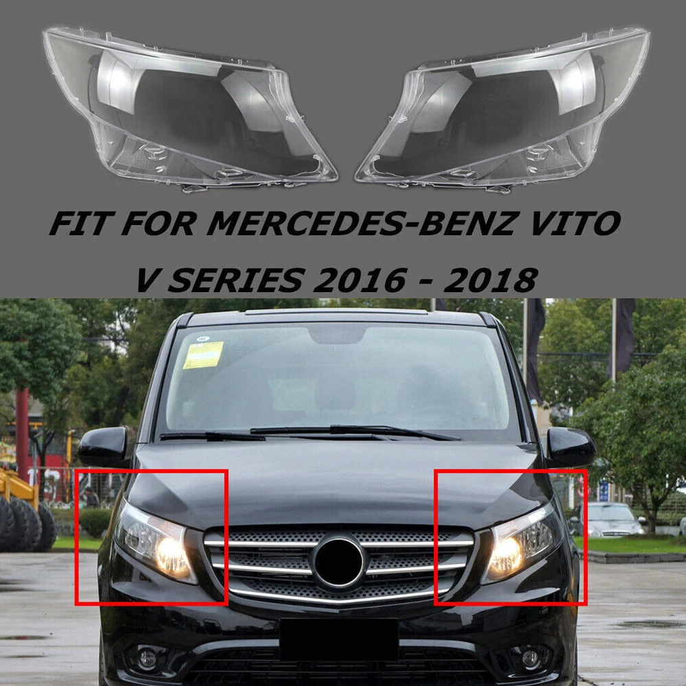 Pair Headlight Lens Cover Clear For Mercedes-Benz Vito V Series 2016-2018