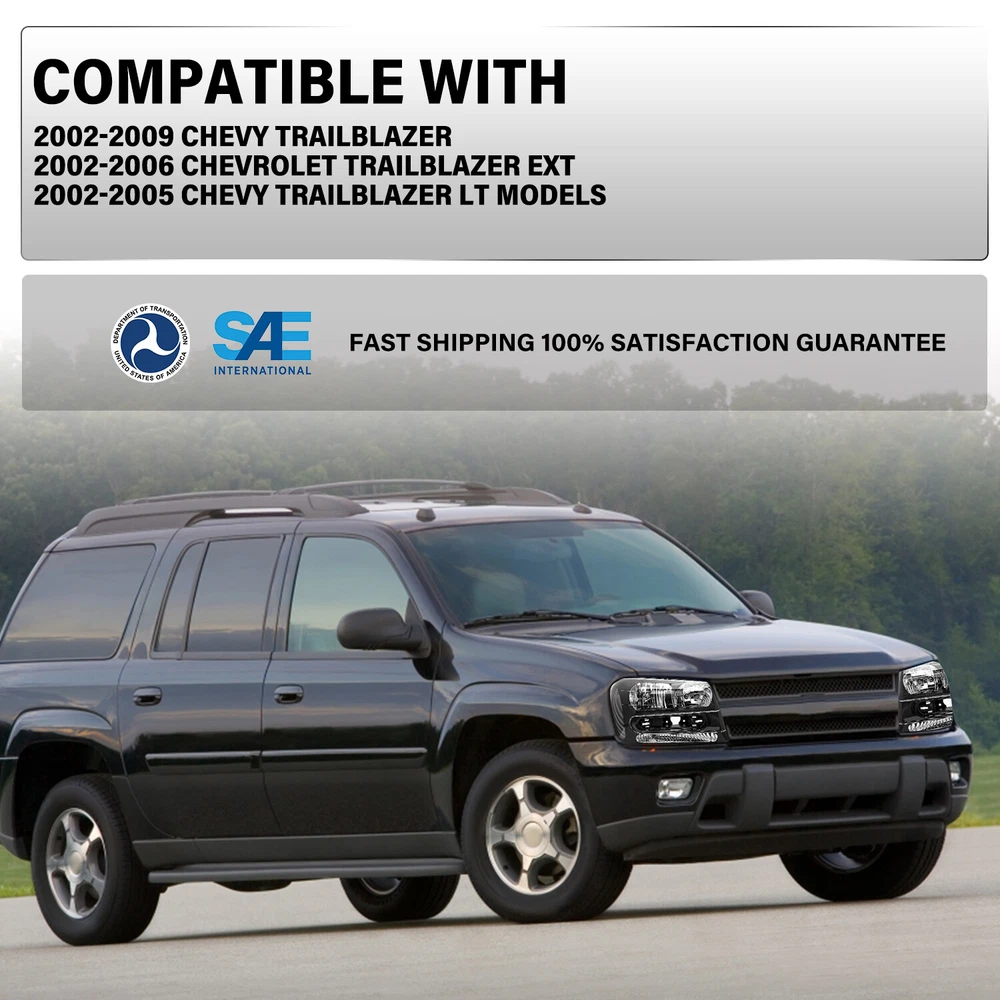 Store Categories Store Categories Other Product Description Compatible with: For 02-09 Chevrolet Trailblazer 02-06 Chevrolet Trailblazer EXT Only Fits Models with Full Length Grill Bar Package Includes: 1 set headlights (high/low beam bulbs are included) Payment Policy Shipping Policy Returns Policy About us Payment Policy We accept PayPal and all forms of credit card. Please submit your payment within 7days after your purchase. Otherwise, eBay will automatically open an Unpaid Item Dispute on our behalf if the item(s) are not paid within 7days. We DO NOT SHIP TO PO BOXES, And Customer Needs To Provide a Physical Address. Shipping Policy All Orders Will Ship Within Two Business Days.Except PR,HI,AK,GU and PO Box addresses. No local pick up All Packages Will Be Inspect Before Shipping, We Will Provide All Packing Material Needed For Your Package For Shipping Such As Boxes, Cushioning And Tape To Improve Shipping Quality. Very Important: Double check shipping address. We are not responsible for incorrect or undeliverable addresses. Returns Policy 30 Days returns satisfaction guarantee.90 Days warranty. All of Our Items Are 100% Brand New, We Do Not Sell Anything Other Than That. If The Item Shows Up Defective or Broken, Please Contact Us Within 3 Business Days By Using "Ask A Question" Link Located At The Bottom of Our Listing. Your Questions/Concerns Will Be Responded Within 24 Hours Monday To Friday. Buyers May Contact us On The Weekends or Pubic Holidays And We Will Respond On The Next Working Day. We Will Offer Replacements, Exchange or Full Refund. 100% Satisfaction Guaranteed. We Will File Damage Or Lost Claim For Our Buyers And Guaranteed Buyers Will Receive Products In A Timely Manner. About us Welcome to AU's eBay Store. We specialize in aftermarket automotive car parts and is the #1 industry distributor for affordable and quality products. We have our warehouse in CA.Item will be shipped out within 48 hours after payment cleared via UPS or Fedex. All emails will be answered within 1 business day during our business hours, except on weekends and major holidays. Before leaving us negative review, please contact our C ustomer Support Team first. We will do our best to offer satisfactory service to the customers. Copyright © 2023 Dianxiaomi