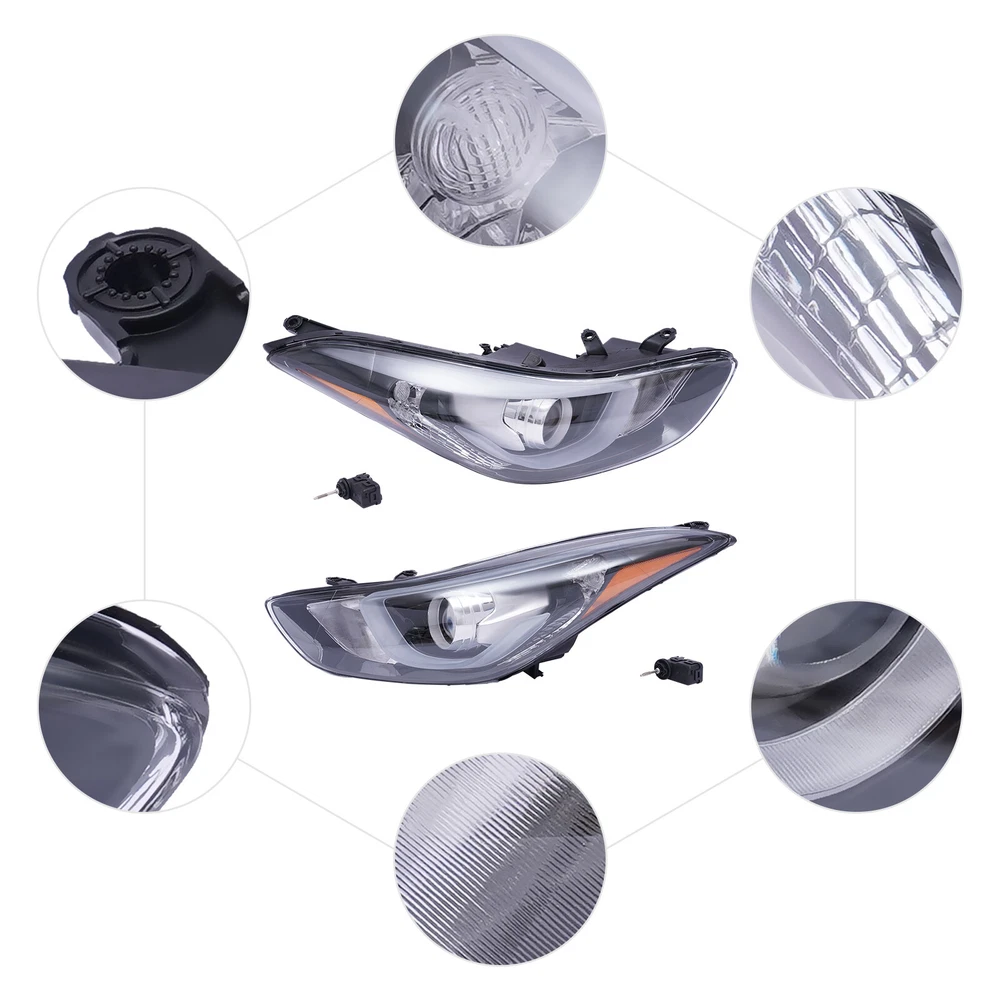 Package Included 1*Left Driver Side Headlight 1*Right Passenger Side Headlight Pair Headlights with LED Projector Left+Right For 2014 2015 2016 Hyundai Elantra Specifications Manufacturer Part number: 92102-3Y510 92101-3Y510 Interchange Part Number: HY2503186 HY2502186 OE/OEM Part Number: 92102-3Y510 92101-3Y510 Applicable Models: 2014-2016 Hyundai Elantra Condition: New Material: ABS+Polycarbonate Light Souce Type: Halogen with LED Projector Light Color: White Housing Color: Black & Chrome Lens Color: Clear Voltage: 12V Mounting Style: Screws High Beam Type: Halogen, H1 (Not included ) Low Beam Type: Halogen, H7(Not included ) Turn Signal Type: PY21W ((Not included ) Side Marker Lamp Type: LED (Included) LED Daytime Running Light: Yes Installation Position: Front, Right, Left Side Way of Use: Direct Replacement Key Features Durable Material: This headlight is made of high-quality ABS, and polycarbonate materials, which are corrosion-resistant and high-temperature resistant , allowing it to be used for a long time. Increased Safety : It gives you a clear view of the road ahead at night and in any inclement weather that may occur. As a result, drivers will be safer while driving. Enhance the Look : Our headlight upgrades the look of your vehicle with crisp style and extreme range. It's ideal for displaying or replacing old and worn headlights. Perfectly Compatible: Our headlight is a customized product, specially customized for the 2014-2016 Hyundai Elantra. So it can be perfectly compatible with the adapted models and can be installed directly. Highlights Brand New, With High Quality Improving Driving Safety PP, PC Material, Sturdy and Durable High Light Transmittance Easy to Clean Cool Outlook Direct-fit Replacement Fine Workmanship Good Sealing Energy-saving with Low Power Consumption High Impact Resistance Notes We strongly recommend professional installation. Please contact us if you have any questions. Please allow the slight color difference caused by the shooting light and 1-3cm error due to manual measurement, and make sure you do not mind before you place the order. Fits (As a Reference) For 2014 2015 2016 Hyundai Elantra OE/OEM Part Number: 92102-3Y510 92101-3Y510 Package Included 1*Left Driver Side Headlight 1*Right Passenger Side Headlight Payment Delivery details Terms of sales About us Contact us Payment We accept ebay payment 。 Fees such as import duties, taxes are not included in the item price or shipping costs. These charges are the buyer's responsibility. Delivery details Shipping: 2-9 working days to: USA Terms of sales We maintain high standards of excellence and strive for hundred percent customer satisfaction. Feedback is very important to us. We hope that you contact us immediately before you give neutral or negative feedback, so that we can address your concerns. It is impossible to address issues if we do not know about them! About us Your satis faction is our ultimate goal. We work hard to earn your trust and future business. Our certified technicians have tested each item before shipping. The unit comes with 1 year limited warranty on all manufacturing defects. a) If you receive a defective item, you may return it or ask for a discount. Please contact us within 14 days after you receive the package. b) What you returned must be intact and in its original packaging as re? u. Customer is responsible for shipping costs of the returned item. c) We will cover the cost of shipping back t with the shipping rate indicated in the registration page. We will send you a new unit or refund the full payment you paid. Thank you. Contact us Business Hour Business Hour: Monday To Friday: 8:30 AM to 5:00 PM (Beijing China time) Due to time zones, our reply to your questions may not be immediately. But within above working time, we will reply your email within 24 hours. If it's non-workdays, please kindly be patient and wait till Monday. Please contact us with ebay message. Please feel free to contact us if you have any questions. Monday To Friday: 8:30 AM to 5:00 PM (Beijing China time) Due to time zones, our reply to your questions may not be immediately. But within above working time, we will reply your email within 24 hours. If it's non-workdays, please kindly be patient and wait till Monday. Please contact us with ebay message. Please feel free to contact us if you have any questions.