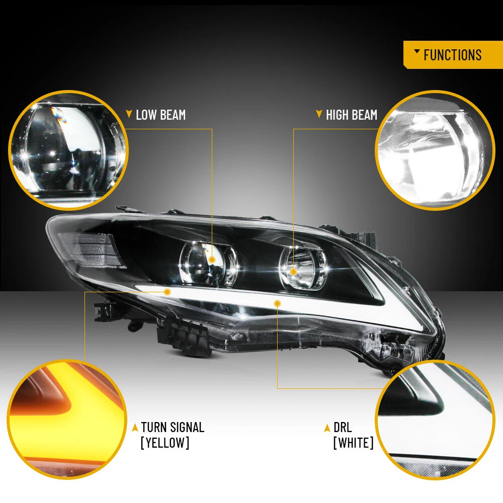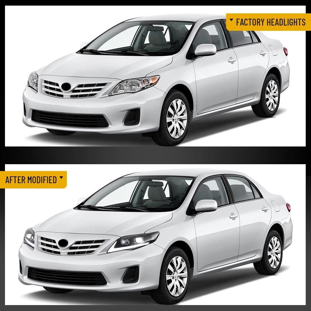 Pair LED DRL Projector Headlights Front Lamps For 2011-2013 Toyota Corolla VLAND Part #: TO2503203, TO2502203, TO2502204, TO2503204 INCLUDES: (1) Front Headlight Assembly Right Passenger Side (1) Front Headlight Assembly Left Driver Side Fitment: Toyota Corolla 2011-2013 Contact Us SHIPPING & RETURN WARRANTY Contact Us 100% satisfaction goal. If you have had less than 100% positive experience, please contact us, so we can work out a resolution. Your questions will be replied within 24 hours except the weekend and holiday. We will serve for you with all sincerity! SHIPPING & RETURN Shipping Information - Policy The goods will shipped by the eBay address, so please leave the right address on eBay Please, choose some local sellers, If you cannot wait patiently in the shipping time we declared. Once you purchase, please DON’T leave negative or neutral feedback if you haven't received item in 30 days, because we have mentioned the shipping time repeatedly. If you not satisfied with the goods please contact us before leave the feedback, we will try ourbest to satisfy you. Standard Order Processing time: W e'll update you when proceeding with your order from (Monday - Friday). Payment cleared/received on Friday will be shipped on the next business days (Monday or Tuesday). We are not responsible for carrier transit time. This information is provided by the carrier and excludes weekends and holidays. Note that transit times may vary, particularly during peak periods or in climate weather conditions, and that delivery times frames will need to be extended for any processing time frames in excess of 2-3 business days. WARRANTY Standard Replacement Specifically excluded from this warranty are failures caused by misuse, negligence, modification, abuse, improper application, installation or operation, or by unauthorized service or use of unauthorized parts in connection with the product and inadequate maintenance, normal wear and tear or normal consumption of the product. One time replacement Customers are responsible for the return shipping cost on warranty claims. We will refund you the money you paid for the parts less shipping and handling charges Please Note: - We also have more models available, please contact us if you can't find your specific model. - When products are noted in the description as out of stock, these products will then be offered as pre-sale items, normally they will be posted within 20 days from the date of cleared payment. - Item sold in a pair (left and right), bulbs may or may not be provided. On Dec 17, 2024 at 00:01:04 PST, seller added the following information: