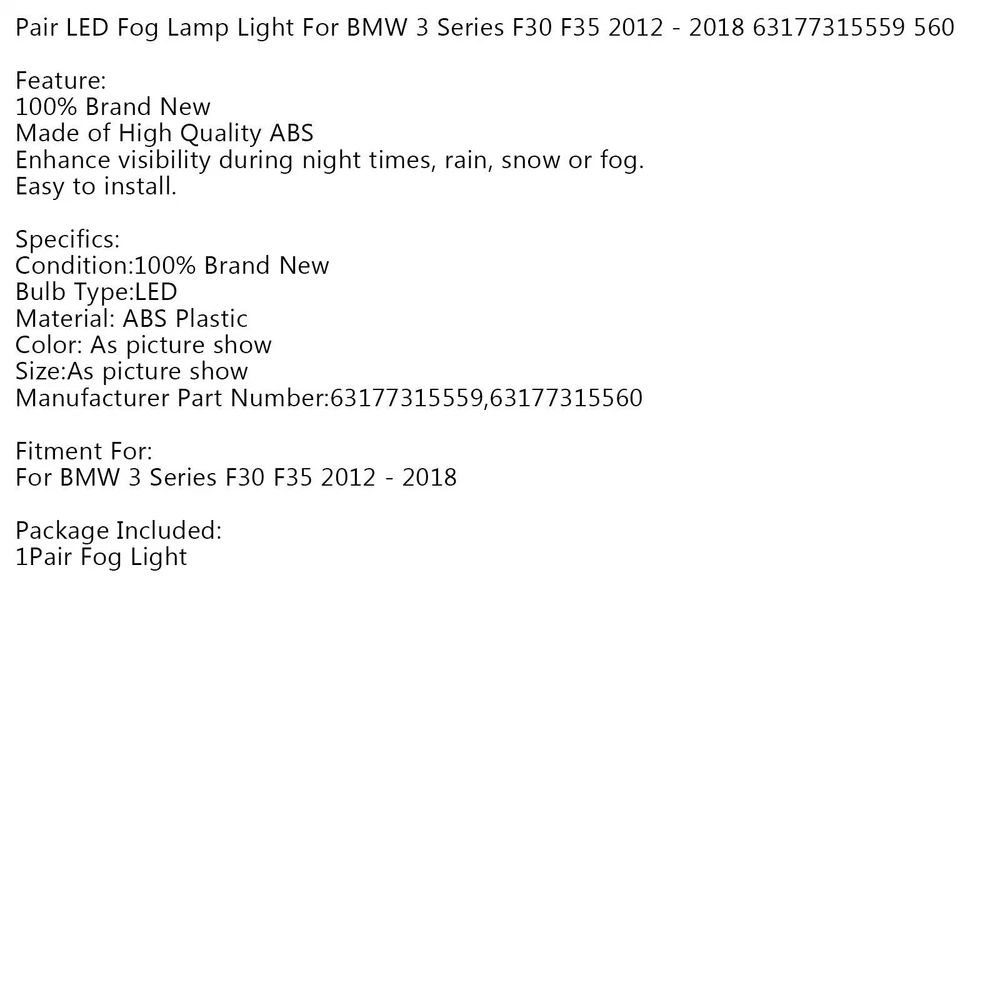 You may also like L/R Fog Light Daytime Running Lamp For BMW Mini Countryman R60 2010-2016 39.85 USD Free shipping Front Fog Light Lamp Detector Frame Ring Cover ABS Trim For Audi A4 2009-2012 US 22.85 USD Free shipping Front LED Fog Light Driving Lamp Switch Wiring Kit For Honda Civic 2022+ 58.85 USD Free shipping Front Bumper Left Fog Light 63177409121 For BMW Mini Countryman F60 2016-2021 82.85 USD Free shipping Front Bumper LED Fog Light + Cover +Wire Harness For GMC Sierra 1500 2022-2024 135.85 USD Free shipping Front Right Bumper Fog Light Cover Trim For Ford Fiesta 1.0 1.6 2014-2018 19.85 USD Free shipping Pair LH+RH Front LED Fog Lights Lamps Foglights For BMW 5 Series F10 F07 LCI CT 72.85 USD Free shipping 10pc 7507 21W 12V PY21W OSRAM 2200K Car Auto Turn Indicator Lamp Bulbs Amber USA 20.76 USD 21.85 USD Free shipping 5% off Front Bumper Fog Light Cover W/O FOG Right Side For 07 2008 2009 Toyota Camry US 13.85 USD Free shipping Front Driver Side Fog Light Trim 6BU59TZZAA For Jeep Gladiator 2020-2023 27.85 USD Free shipping 2pc Front Bumper Side Fog Light Cover Caps Trims Frames for Audi Q7 2010-2015 37.85 USD Free shipping Left & Right Front Bumper Fog Light Grille Cover Trim For Audi A4L 2020-2022 T5 94.85 USD Free shipping Pair LED Fog Lamp Light For BMW 3 Series F30 F35 2012 - 2018 63177315559 560 Feature: 100% Brand New Made of High Quality ABS Enhance visibility during night times, rain, snow or fog. Easy to install. Specifics: Condition:100% Brand New Bulb Type:LED Material: ABS Plastic Color: As picture show Size:As picture show Manufacturer Part Number:63177315559,63177315560 Fitment For: For BMW 3 Series F30 F35 2012 - 2018 Package Included: 1Pair Fog Light -About US Founded in 2012, VIPJQ have professional development and sales, and are involved in various products, providing customers with various high-quality products. Since its establishment, VIPJQ has always adhered to the service concept of "customer first" and the management concept of "pursuit of quality", and is committed to providing customers with high-quality original designs. We commit to provide you the best innovative, quality products & professional services with competitive prices. We value every customer, and we look forward to providing solutions for your business needs to help your business achieve its goals, please contact us immediately! We are all about you! We are a Japanese seller,but with large warehouse in USA. We are profesional on Auto Parts,Car Parts,Motorcycle Parts,3C,other hot sale items and so on. We aim to provide to customers high quality product and best service. -About Shipment&Returns The item usually will be dispatched within 3 days after you ordered.All are free shipping. And it usually takes 3-10 working days to delivery depends on buyers' address or other majeure on the way. If you are not satisfied with the items and want to return the item,we hope you could message us first,we will give you the return details, we think we could give you the best service to save your time and money.Thank you. -About Feedback&Customer Service If you are enjoy your shopping here,not only enjoy the items but also the service,we are appreciate you could give us a 5-star feedback. If you are not satisfied with the item,before you give us the negative feedback,we hope we could give you the best solution through our commutication. We think we could do it if you give us the chance.Thank you.