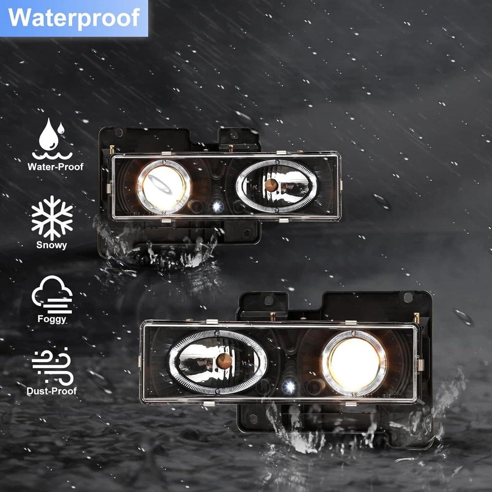 Home Payment Shipping Return Policy About Us Contact Us Feedback Store Categories Other Car Refrigerator Front Bumper Rear Bumper Fender Flares Inner Fenders Side Steps Running Board A-Pillar Light Mount Brackets Headlights Taillights Fog Lights LED Headlights LED Taillights LED Fog Lights Jeep Chevrolet Ford Toyota Dodge GMC Chrome Housing+Clear Lens: https://www.ebay.com/itm/402723119053 About this item ๐ ใPerfect FitmentใOur headlight assembly is compatible with for 1992-1994 Chevy Blazer /1988-1999 Chevy c1500 Pickup /1992-1999 Chevy c1500 Suburban /1988-2000 Chevy c2500 Pickup /1992-1999 Chevy c2500 Suburban /1988-2000 Chevy c3500 Pickup /1988-1999 Chevy k1500 Pickup /1992-1999 Chevy k1500 Suburban /1988-2000 Chevy k2500 Pickup /1992-1999 Chevy k2500 Suburban /1988-2000 Chevy k3500 Pickup /1995-2000 Chevy Tahoe /1988-1999 Gmc c1500 Pickup /1992-1999 Gmc c1500 Suburban /1988-2000 Gmc c2500 Pickup /1992-1999 Gmc c2500 Suburban /1988-2000 Gmc c3500 Pickup /1988-1999 Gmc k1500 Pickup /1992-1999 Gmc k1500 Suburban /1988-2000 Gmc k2500 Pickup /1992-1999 Gmc k2500 Suburban /1988-2000 Gmc k3500 /1998 Gmc k3500 Pickup /1992-1999 Gmc Yukon . And all of headlights that are SAE and DOT approved, meet with standard safety and OEM requirement. ๐ ใPerfect Beam PatternใHeadlights has well performance of accurate projection beam mode that enhance visibility during night time,heavy rain,snow. This headlights assembly offers higher power efficiency, longer life, and better space-saving than the conventional incandescent-type lamps. ๐ ใPlug and PlayใHeadlight assembly for 1988-1999 Chevy C1500 C2500 C3500 which perfectly replace factory parts and are designed for quick and easy installation without drilling or modifications. Headlight assemblies are designed to work without any special wiring. ๐ ใIP67 WeatherproofใThe headlights assembly for 1992-1994 Chevy Blazer made from superior OEM grade ABS plastic housing and full sealed beam, that can reach up to IP67 weatherproof to ensure pretty durability in heavy rain or terrible weather. Moreover, the well-designed breather has a good heat dissipation to make the lights breathable and extend the light's life. ๐ ใPremium QualityใThis headlights are made of Special Materials which are Resistant to Water, The Dustproof and Shockproof Clear PC Lens are not easy to yellow and crack. Otherwise, the back shell is with strong impact strength and good thermostability. 100% Advanced chips add visibility crucial in Navigation Poor Weather Conditions, Including Rain And Snow, as Well as Dense Fog. Last more than 50,000 Hours. ๐ ใ7/24 Customer ServiceใAll of our headlights are sent from US. Please feel free to contact us via message center if any quality issues. We always stand behind these products and are committed to providing responsive customer service. (Reply within 24 hours). Notes: Package comes in a pair (driver's side and passenger's side headlights). Vehicle Fitment ๐ 1992-1994 Chevy Blazer ๐ 1988-1999 Chevy c1500 Pickup ๐ 1992-1999 Chevy c1500 Suburban ๐ 1988-2000 Chevy c2500 Pickup ๐ 1992-1999 Chevy c2500 Suburban ๐ 1988-2000 Chevy c3500 Pickup ๐ 1988-1999 Chevy k1500 Pickup ๐ 1992-1999 Chevy k1500 Suburban ๐ 1988-2000 Chevy k2500 Pickup ๐ 1992-1999 Chevy k2500 Suburban ๐ 1988-2000 Chevy k3500 Pickup ๐ 1995-2000 Chevy Tahoe ๐ 1988-1999 Gmc c1500 Pickup ๐ 1992-1999 Gmc c1500 Suburban ๐ 1988-2000 Gmc c2500 Pickup ๐ 1992-1999 Gmc c2500 Suburban ๐ 1988-2000 Gmc c3500 Pickup ๐ 1988-1999 Gmc k1500 Pickup ๐ 1992-1999 Gmc k1500 Suburban ๐ 1988-2000 Gmc k2500 Pickup ๐ 1992-1999 Gmc k2500 Suburban ๐ 1988-2000 Gmc k3500 ๐ 1998 Gmc k3500 Pickup ๐ 1992-1999 Gmc Yukon Specification ๐ Quantity: 1 Set (Left & Right Side Headlights included) ๐ Certification: DOT/SAE Compliance ๐ Wiring Harness: Not Included ๐ Replaces Original (OE) Part #: L: 15034929; R: 15034930 ; ๐ Partslink๏ผL: GM2502101; R: GM2503101 ; ๐ Bulb type: LED , Halogen ๐ Low Beam Bulb: H1 12V55W [Included]; ๐ High Beam Bulb: 9005 12V60W [Not Included]; ๐ Halo Ring: LED Included ๐ Color Finish: Black Housing / Clear Lens/ Projector Halo Ring ๐ Housing/ Lens Material: PC ๐ Beam Type: High Beam: Projector+ Reflector; Low Beam: Reflector Package ๐ 1 Pair of Headlights(Driver and Passenger Side) ๐ Low Beam Bulbs Payment Delivery details Terms of sales About us Contact us Payment We accept PayPal, credit card , Apple Pay & Google Pay etc. Delivery details All items will be shipped within 1-3 business days after payment received, we will try our best to ship out as soon as we can, hope for your understanding. Please double confirm your address and contact information, which will help the delivery faster and more accurately. Note ๏ผbuyers who purchase international products need to pay import tariffs!!! Terms of sales Professional installation is highly recommended. Any problem of the item please feel free to contact us first , please D o Not leave negative feedback before that, or simply return it within 60 Days in original condition. We will resolve it for you ASAP. About us Any questions please do not hesitate to contact us directly by eBay message . We will reply you within 24 hours asap, thanks for your understanding. Contact us Should you have any problem or require any further information please feel free to contact us . If you are satisfied with our product and service, please kindly leave us a positive feedback. On Nov 29, 2024 at 00:15:54 PST, seller added the following information: