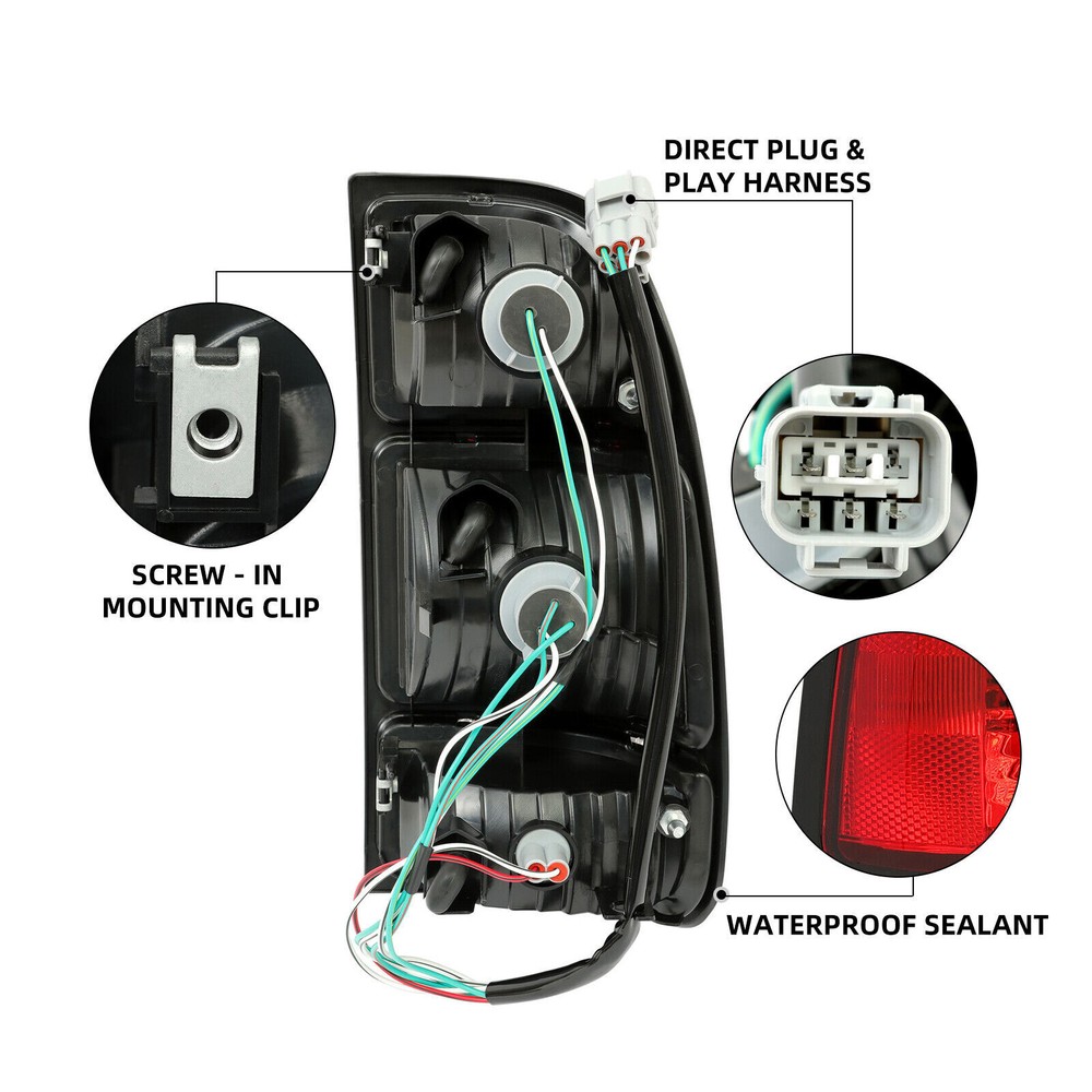 Store Categories Store Categories For Ford For Chevrolet For Dodge For Toyota For Honda Other Details Pair/LH/RH Tail Lights Brake Lamps W/ Bulbs For Toyota Tundra 2000-2006 Pickup FIT FOR: For Tacoma 1995-2000 (submodel: Base, DLX, SR5) For Tacoma 1998-2000 (submodel: Limited, Pre Runner) Specification : Condition: 100% Brand New Color: Red/Amber/Clear Lens+Chrome Housing Material: Plastic PRODUCT SPECIFICS: Type:Tail Light Lighting Technology: Halogen Lens Color: Red/Amber/Clear Lens Housing Color: Chrome Items Included:Bulds Placement on Vehicle:Rear,left,right Features: DOT-Certified Features: Our Tail Light is crafted with high-quality plastic material, ensuring durability and longevity. The Tail Light features a visually appealing design that enhances the overall look of your vehicle. The Tail Light provides bright and clear lighting, improving visibility and ensuring safety on the road. Remind rear drivers to avoid rear-end collisions at night or in bad weather. Made of high quality plastic construction, waterproof, not easy to wear. Ensure maximum performance and extended life of the taillight. Sealed & waterproof assemblies, exquisite looking, and to withstand any sand, water, snow or dust. Precisely engineered for an exact match to your vehicle. Package Includes : 1 X Left Tail Light or 1 X Right Tail Light or Pair Of Tail Light Our products are available for selection, please confirm before purchasing Shipping: All items will be shipped out in 1 business day, no expedited service available. We ship our items to USA only(Does NOT include Hawaii, Alaska or Puerto Rico, PO Boxes/APO's). Shipping Notes: We use multiple warehouses and will select the nearest warehouse for delivery according to your order address and our inventory, Thank you for your cooperation. Contact us: Any Questions, Just feel free to contact us on eBay. We will reply you in 24 hours. Store Categories Store Categories For Ford For Chevrolet For Dodge For Toyota For Honda Other Details Pair/LH/RH Tail Lights Brake Lamps W/ Bulbs For Toyota Tundra 2000-2006 Pickup FIT FOR: For Tacoma 1995-2000 (submodel: Base, DLX, SR5) For Tacoma 1998-2000 (submodel: Limited, Pre Runner) Specification : Condition: 100% Brand New Color: Red/Amber/Clear Lens+Chrome Housing Material: Plastic PRODUCT SPECIFICS: Type:Tail Light Lighting Technology:Halogen Lens Color:Red/Amber/Clear Lens Housing Color:Chrome Items Included:Bulbs Placement on Vehicle:Rear,left,right Features:DOT-Certified Features: Our Tail Light is crafted with high-quality plastic material, ensuring durability and longevity. The Tail Light features a visually appealing design that enhances the overall look of your vehicle. The Tail Light provides bright and clear lighting, improving visibility and ensuring safety on the road. Remind rear drivers to avoid rear-end collisions at night or in bad weather. Made of high quality plastic construction, waterproof, not easy to wear. Ensure maximum performance and extended life of the taillight. Sealed & waterproof assemblies, exquisite looking, and to withstand any sand, water, snow or dust. Precisely engineered for an exact match to your vehicle. Package Includes : 1 X Left Tail Light or 1 X Right Tail Light or Pair Of Tail Light Our products are available for selection, please confirm before purchasing Shipping: All items will be shipped out in 1 business day, no expedited service available. We ship our items to USA only(Does NOT include Hawaii, Alaska or Puerto Rico, PO Boxes/APO's). Shipping Notes: We use multiple warehouses and will select the nearest warehouse for delivery according to your order address and our inventory, Thank you for your cooperation. Contact us: Any Questions, Just feel free to contact us on eBay. We will reply you in 24 hours. On Dec 28, 2024 at 00:33:59 PST, seller added the following information: On Mar 2, 2025 at 19:30:26 PST, seller added the following information: