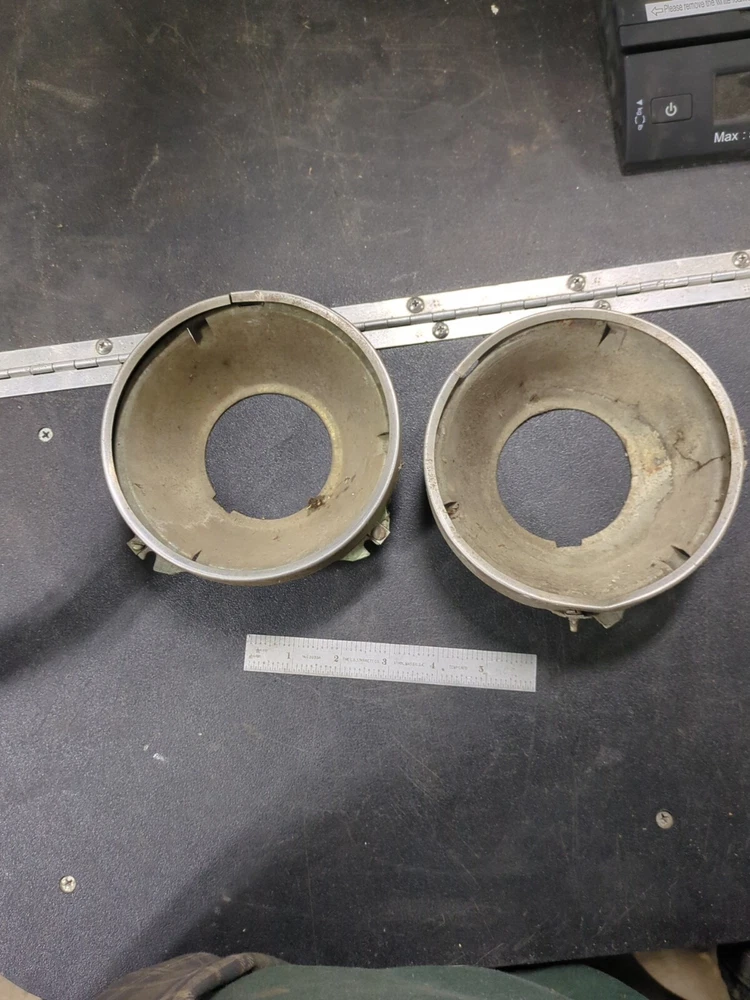 Pair Of 1965-1966-1967 Pontiac GTO headlight buckets with retaining rings