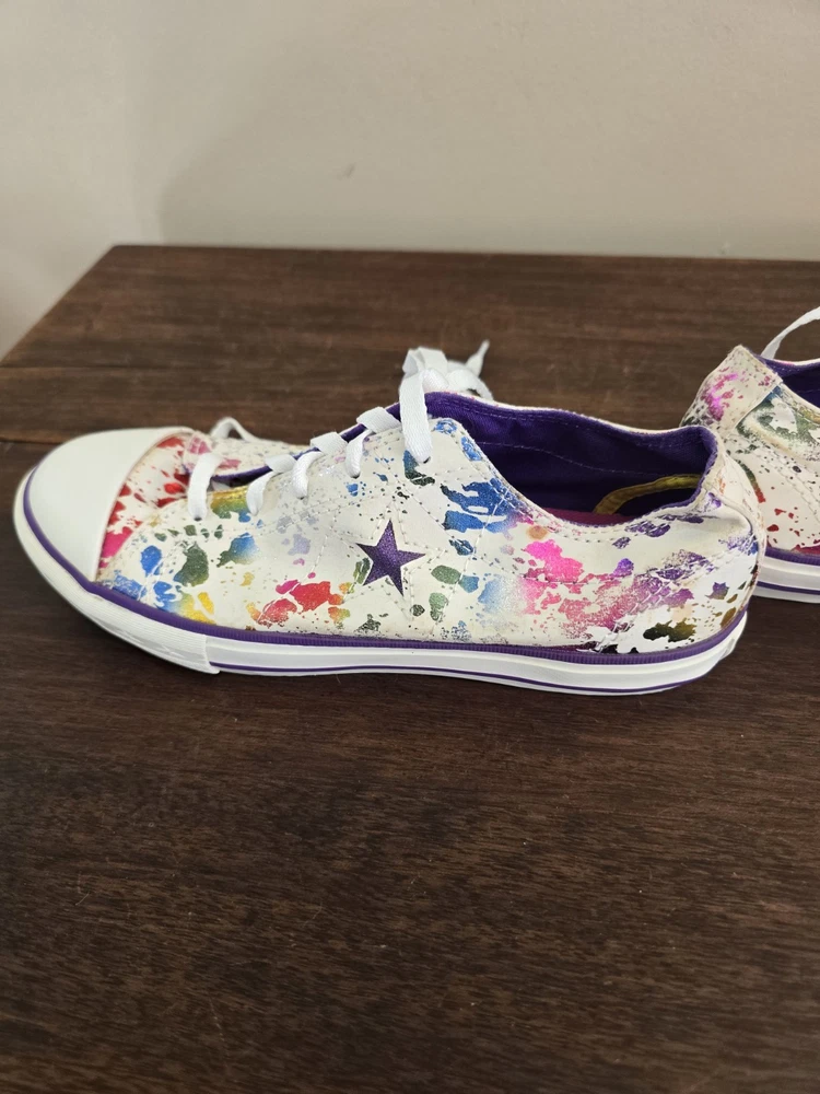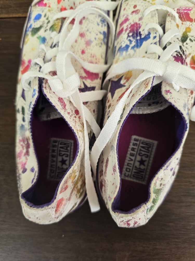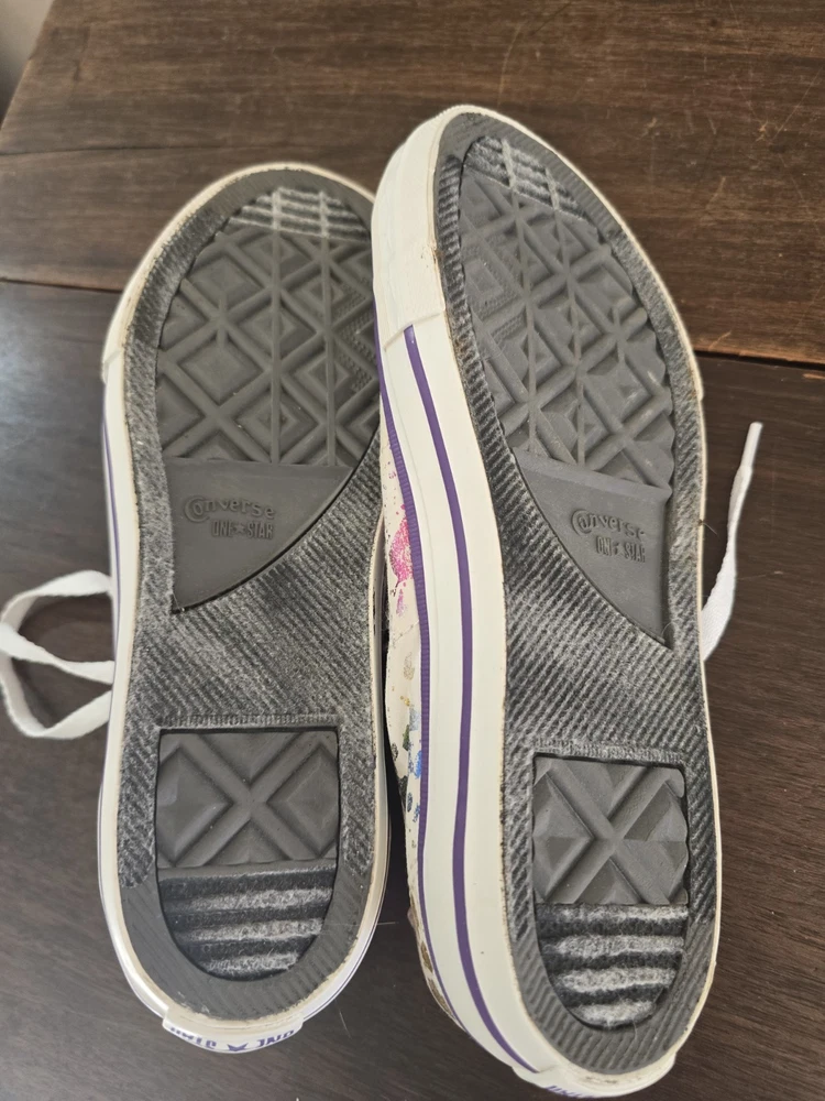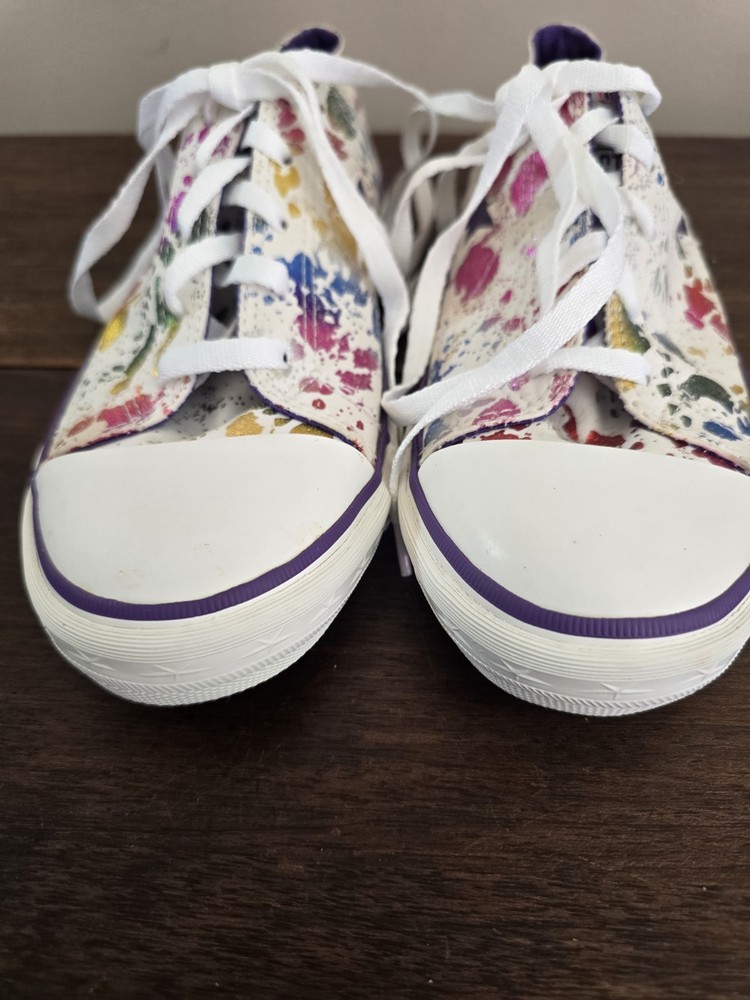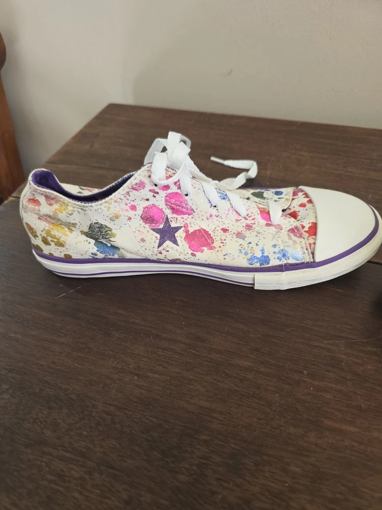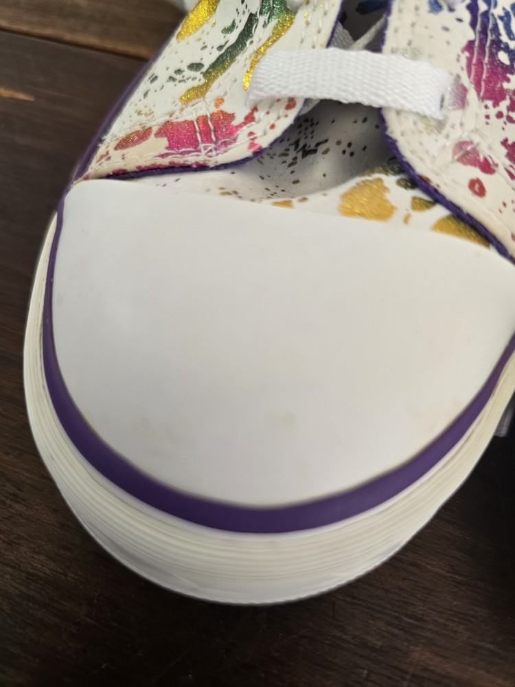 One shoe in toe area has very light staining. Brown spot on shoe. Please look at all pictures.