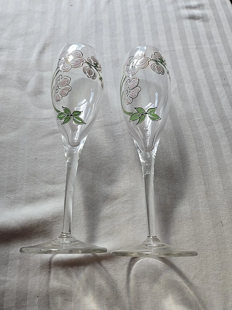 Elevate your toasting experience with this exquisite pair of Perrier Jouet champagne saucers. Crafted from premium quality crystal, these saucers feature a delicate hand-painted floral theme that adds a touch of elegance to any celebratory occasion. The clear crystal material beautifully showcases the vibrant pink florals, making these saucers a stunning addition to your glassware collection. Each saucer measures 7.5 inches and is designed to hold a standard 4 oz champagne flute. Whether you're hosting a bridal shower, a baby shower, or simply want to add a touch of sophistication to your home bar, these Perrier Jouet champagne saucers are the perfect choice.