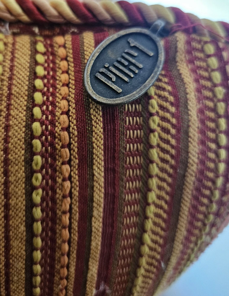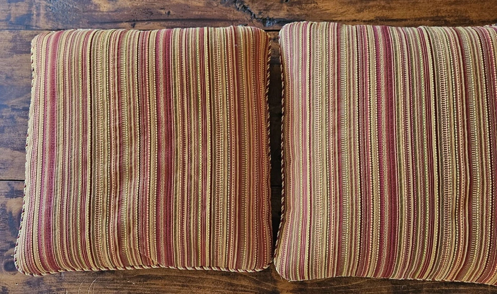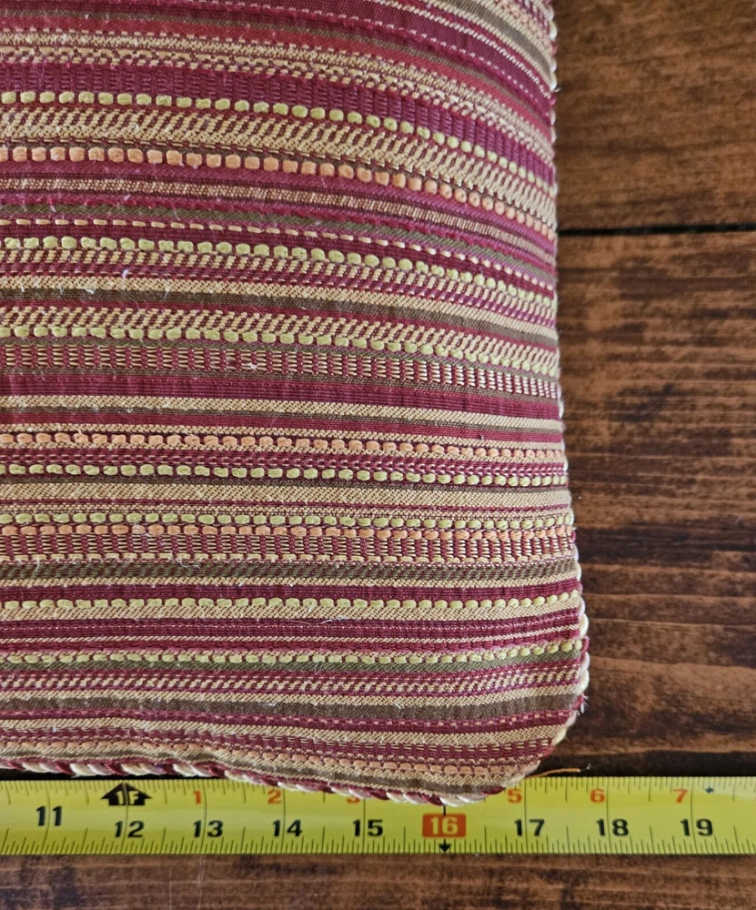 Pair Of Pier 1 Down Throw Pillow Reversible Medallion Striped Brocade 18"x 18" Great holiday colors. The pair is in excellent condition. Please see pictures for details and measurements.