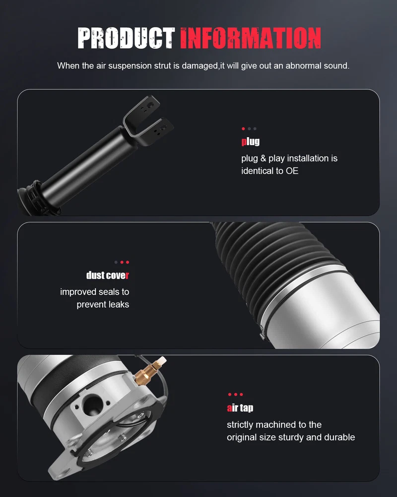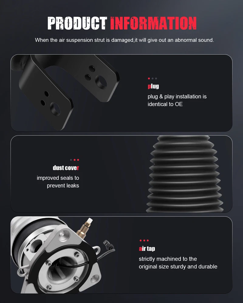 *OEM Part Number: Rear Left 3W0616001 3W0616001B 3W0616001C 3W0616001E 3W5616001 3W5616001A 3W5616001C 3W5616001D 3W7616001 3W7616001A 3W7616001C 3W7616001E 3W8616001 Rear Right 3W0616002 3W0616002B 3W0616002C 3W0616002E 3W5616002 3W5616002A 3W5616002C 3W5616002D 3W7616002 3W7616002A 3W7616002C 3W7616002E 3W8616002 *Item Specifications: Pair Rear Air Suspension Shock Strut For Bentley Continental GT GTC VW Phaeton *OEM Part Number: Rear Left 3W0616001 3W0616001B 3W0616001C 3W0616001E 3W5616001 3W5616001A 3W5616001C 3W5616001D 3W7616001 3W7616001A 3W7616001C 3W7616001E 3W8616001 Rear Right 3W0616002 3W0616002B 3W0616002C 3W0616002E 3W5616002 3W5616002A 3W5616002C 3W5616002D 3W7616002 3W7616002A 3W7616002C 3W7616002E 3W8616002 *Item Specifications: Key Words: Pair Rear Air Suspension Shock Strut For Bentley Continental GT GTC VW Phaeton Package Includes: Pair for Rear Left and Right Air Suspension Shock Strut Notes : Please double confim the compatibility as well as the OEM number before purchasing. Instruction is not included. Professional installation is recommended. *Compatibility Chart: 1, You can distinguish specific model of an automobile by VIN(Vehicle Identification Number). 2, VIN(Vehicle Identification Number) consists of total 17 English letters and arabic digits. 3, VIN does not include the letters I (i), O (o), and Q (q) (to avoid confusion with numerals 1 and 0). Bentley Continental Flying Spur Sedan 4-Door 6.0L 2006-2012 Flying Spur Speed Sedan 4-Door 6.0L 2009-2012 GT Coupe 2-Door 6.0L 2003-2012 GT Speed Coupe 2-Door 6.0L 2008-2010 GTC Convertible 2-Door 6.0L 2007-2012 GTC Speed Convertible 2-Door 6.0L 2010-2011 R Coupe 2-Door 6.8L 2003 Supersports Convertible 2-Door 6.0L 2011-2012 Supersports Coupe 2-Door 6.0L 2010-2012 T Coupe 2-Door 6.8L 2003 Volkswagen Phaeton V8 Sedan 4-Door 4.2L 2004-2006 W12 Sedan 4-Door 6.0L 2004-2006 * Generation & Evolution: Bentley Continental GT Grand Tourer Version First generation (2003-2011) Second generation (2011-2018) Third generation (2018-present) Bentley Continental GTC Convertible Version GTC First Version (2006-2009) GTC Speed Mulliner Driving Specification (2009-2011) GTC Speed 80-11 Editions (2010) GTC W12 (2011-2018) GTC V8 (2012-2018) Bentley Continental Flying Spur Four-Door Saloon First generation (2005-2012) Second generation (2013-present) Volkswagen Phaeton First generation (2002-2006) First Facelift 2007 Second Facelift 2010 *Platform Drive Layout : Bentley Continental Front-Engine, Rear-Wheel-Drive Layout Volkswagen Phaeton F4 Front-Engine Longitudinally-Mounted, 4Motion Four-Wheel Drive *Installation Guideline: 1.Installation is in the reverse order of air strut removal. Adhere to all manufacture's specifications for torque values. * Frequently Asked Questions : How to prevent the damage of air springs/How to extend the service life of air springs/struts etc.? An air strut with separable air springs If your vehicle offers a separable air suspension (Audi Allroad A6 C5, Mercedes-Benz W164, BMW X5, etc.), you should regularly (about once a week) lift the car to the maximum position, and remove dirt with a high-pressure cleaner (keep the cleaner at a distance to the air spring about 30 cm/12 inches, otherwise water pressure can damage the air spring). The highest position may vary depending on your model and regulation options. Therefore, please test this by trying the different modes available to you (Sport, comfort, dynamic, off-road) and choose the one that sets your vehicle to the highest position. The dirt will most likely be found under the fold of the pneumatic chambers. If you find a frozen layer of bitumen on the piston guide (the part of a strut on which the air spring is installed), it is recommended to clean it as well. Whenever possible, avoid riding on fresh asphalt, as fresh bitumen mixed with sand immediately results in a build-up of abrasives on the piston and in turn contributes to accelerated wear and tear of the air spring. A complete air suspension shock Many cars such as Mercedes W220 or W211 are set up with a complete air strut - shock absorber and air spring visually form a complete spare part. In many cases, you can easily recognize these by the metal cups with which the air spring is tightly mounted. To best avoid any damage, we highly recommend to regularly check the condition of the dust protection seals of the air strut. What is the difference between an air spring and an air strut? The air spring is a part of the air strut. Some vehicles (e.g. Mercedes ML) allow you to change the air spring separately. At our online shop you have the opportunity to buy either the whole air strut or only the air spring. For some type of vehicles it is not possible to change the air spring separately. In this case the whole air strut should be replaced. Which side of my car is the Right and Left? The right and left sides of an automobile are determined as if sitting in the car facing forward. Thus, the left side is on the left when sitting in the car facing forward, and the right side is on the right. For American cars, the driver’s side is on the left, and the passenger sits to the right of the driver. For cars in Japan, Britain, Ireland, the Bahamas and some other former British colonies -- where they drive on the left side of the road -- the passenger sits on the left side, and the driver (along with all the driving controls) is on the right. Item Specifics Placement on Vehicle Right Rear Left OE/OEM Part Number 3 3W7616002C 3W7616002E 3W8616002W0616001 3W0616001B 3W0616001C 3W0616001E 3W7616002A Single Weight(KG) 7.890 Included Hardware None Maximum Operating Pressure (psi) 195 Minimum Operating Pressure (psi) 90 Drive Layout Front Engine RWD & 4WD Platform D1 Material Iron Aluminium Alloy Rubber Color Silver Black Type Air Suspension Shock Custom Bundle No Return Policy 30 Days Free Return Manufacturer Warranty 1 Year Quantity 2pcs Fitment Type Direct Replacement OE Spec or Performance/Custom OE Spec Adjusta