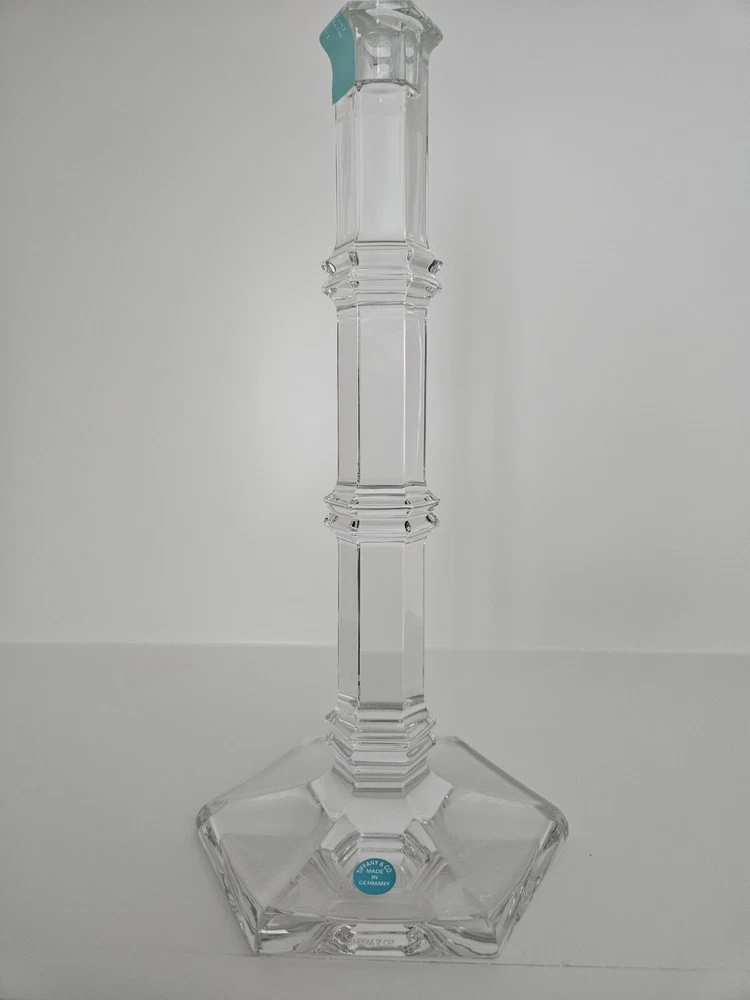 Pair Tiffany & Co. Crystal Plymouth Hexagonal 8" Candle Sticks MINT