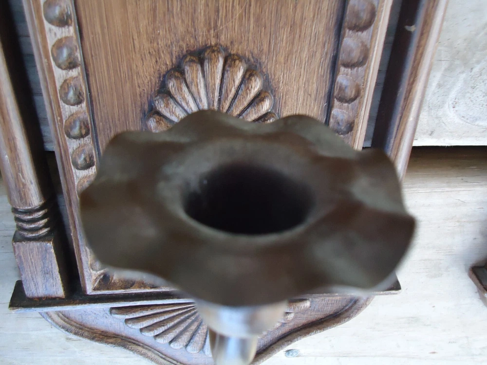 Pair VTG Wall Sconce Candle Holder Hanging Decoration Faux Wood 70s Library Hall Approximately 18.5 tall x 6.5 inches wide