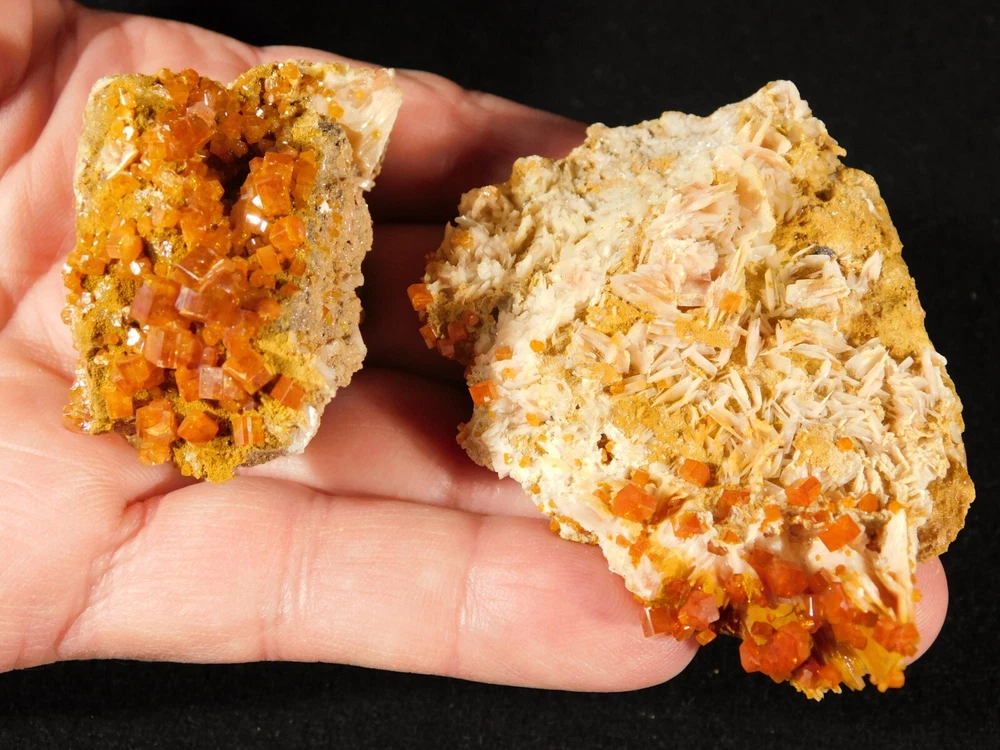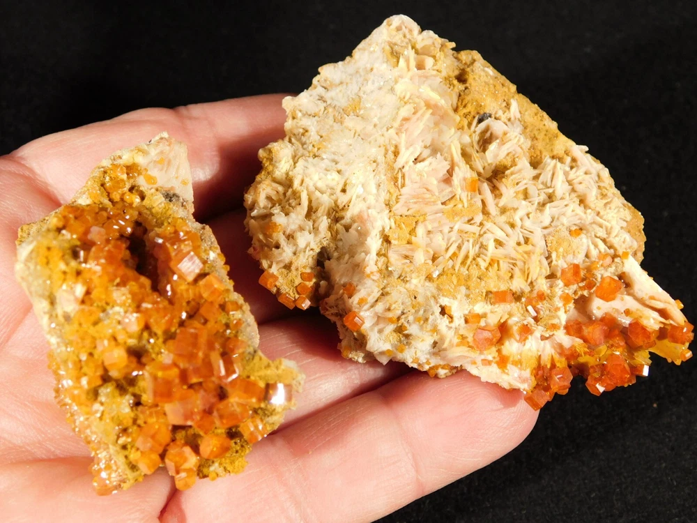 Hello, here are TWO!! nice and 100% natural Vanadinite Crystal clusters with shiny perfectly formed orange hued crystals on a contrasting colored matrix! They were mined in Morocco. Please note that these crystal clusters are WAY nicer in person as it is difficult to get all of the detail and true colors to show up in the photos! The largest overall piece or matrix measures around 2 13/16" or 7.1cm at its biggest or from opposing side to side. INTERNATIONAL BUYERS PLEASE NOTE : Import duties and taxes are not included in the price of the item or the shipping charges. These are the buyers responsibility. If you are concerned about them, please check with your country's customs office before purchasing. RETURN POLICY We guarantee you will be satisfied with your item or we'll refund your purchase price, less shipping charge, upon safe return of the item in original condition within 14 days. Prior to returning the item, please contact within 48 hours of receiving item. Buyer is responsible for all return shipping charges.