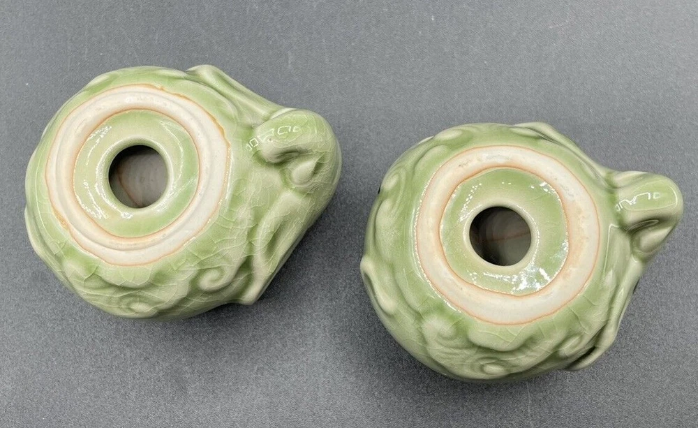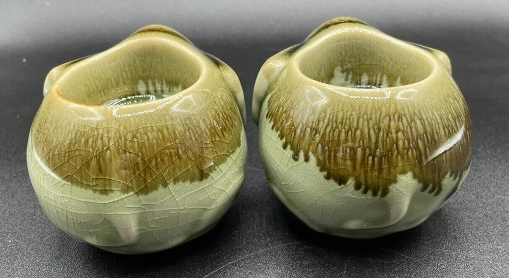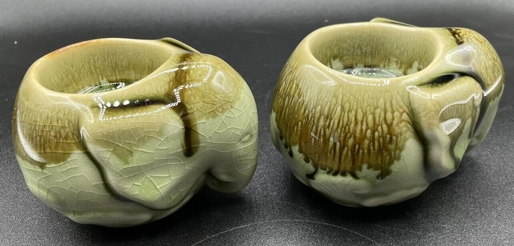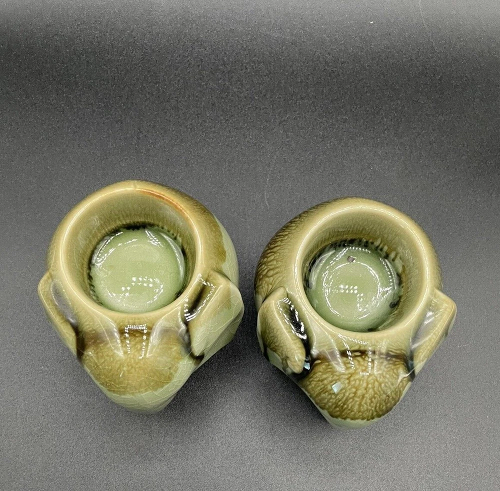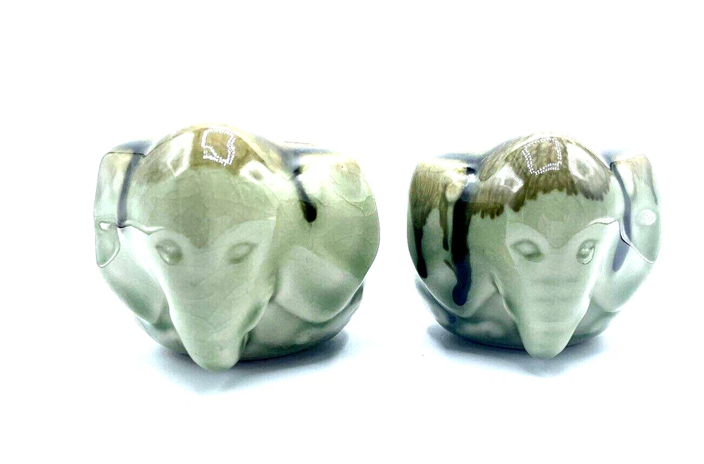 Pair of Elephant Votive Tea Light Candle Holders Green crackle No chips or cracks.