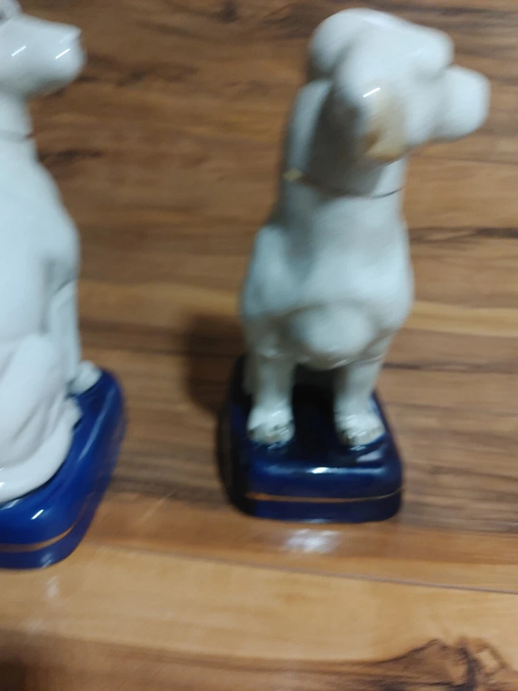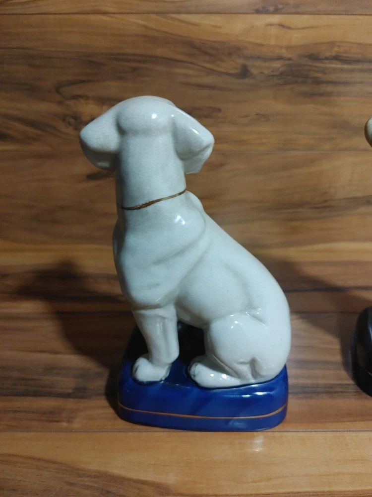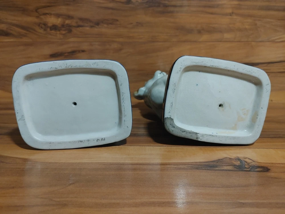 This pair of vintage Staffordshire Labrador Retriever dogs figurine is a charming addition to any collection. The intricate details of the porcelain and ceramic material make this piece a unique and special item. The white and blue color scheme adds a touch of elegance, and the glossy finish gives it a polished look. Measuring at 3 inches in length and 8 inches in height, this original figurine is a perfect decoration for any lover of dogs and flowers. The Victorian style and pottery production technique make it a valuable and timeless piece. This handmade figurine is a must-have for collectors and enthusiasts alike.