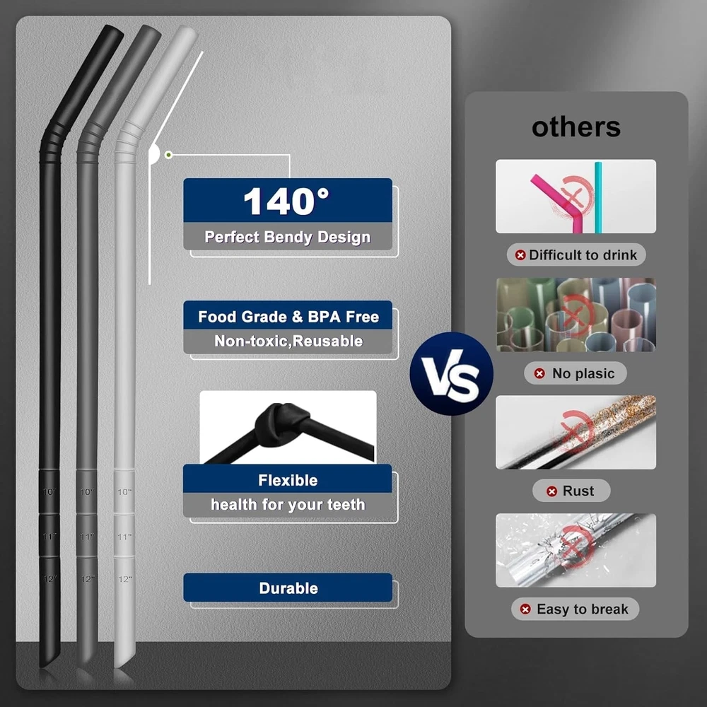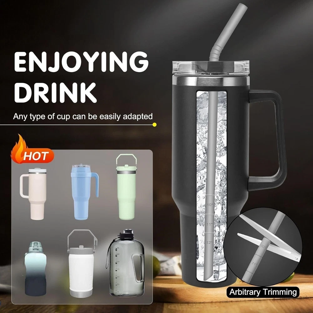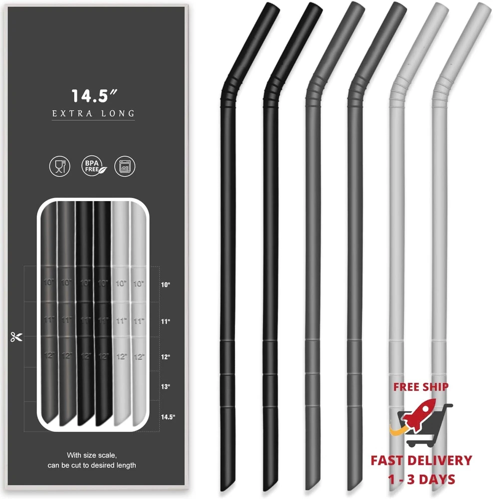 【Diseño extralargo】 Las pajitas dobladas reutilizables de 14,5 pulgadas son para la mayoría de las botellas de agua deportivas, 1 galón, 128 oz, 75 oz, 40 oz a 32 oz. No te preocupes por que se caigan las pajitas. 【Medición de longitud】 Las pajitas largas de silicona reutilizables tienen una escala de tamaño, que puede ayudar a cortar a cualquier longitud que necesite, diámetro exterior: 10 mm, diámetro interior: 8,6 mm, para satisfacer todas sus necesidades diarias. 【Silicona platino de grado alimenticio】 Las pajitas de silicona reutilizables extralargas están hechas de silicona de grado alimenticio de alta calidad, sin BPA. Las pajitas reutilizables y flexibles son saludables y ecológicas, las pajitas de silicona suaves y flexibles no causarán ningún daño a sus dientes. 【FÁCIL LIMPIEZA Y APTO PARA LAVAVAJILLAS】 Muy fácil de limpiar con cepillo largo, con aislamiento de frío/calor. ¡No se oxida ni se rompe! 6 pajitas de silicona extralargas, incluye 1 cepillo de limpieza + 1 estuche de almacenamiento, ¡conveniente para llevar con la bolsa! 【SERVICIOS SATISFACTORIOS】Estamos tan seguros de que pensarás que tenemos las pajitas de silicona reutilizables en el mercado. Si tiene el más mínimo problema con nuestro producto, no dude en enviarnos un mensaje. Hacemos todo lo posible para asegurarnos de que cada cliente esté contento y satisfecho con nuestro producto y servicio. ¡Haz tu pedido ahora, de forma segura y protegida, con Amazon Prime!