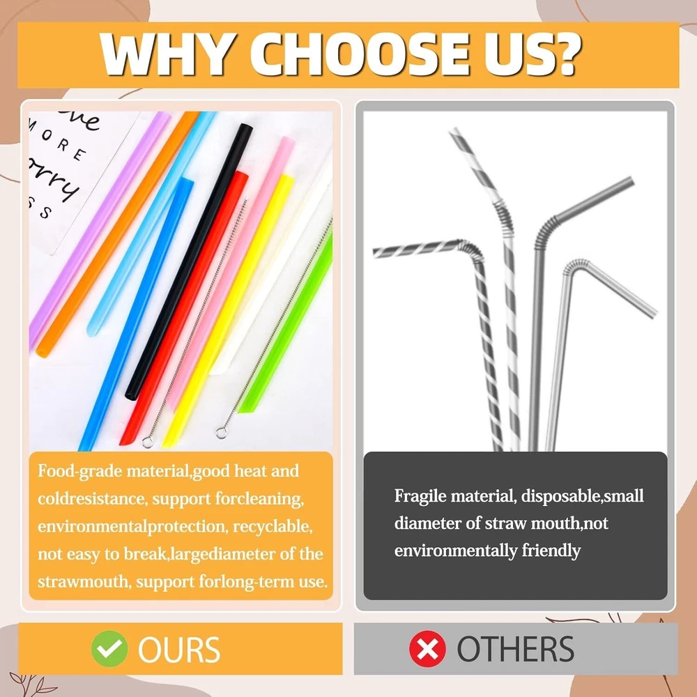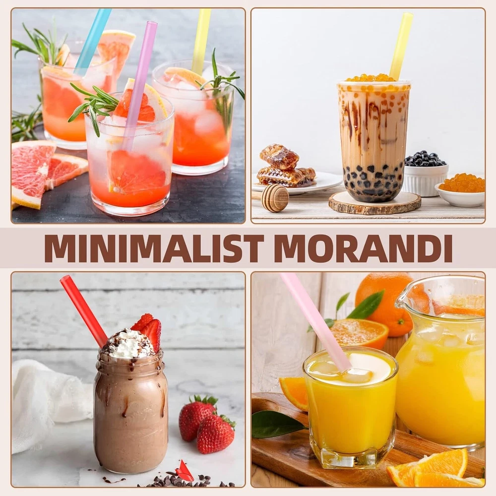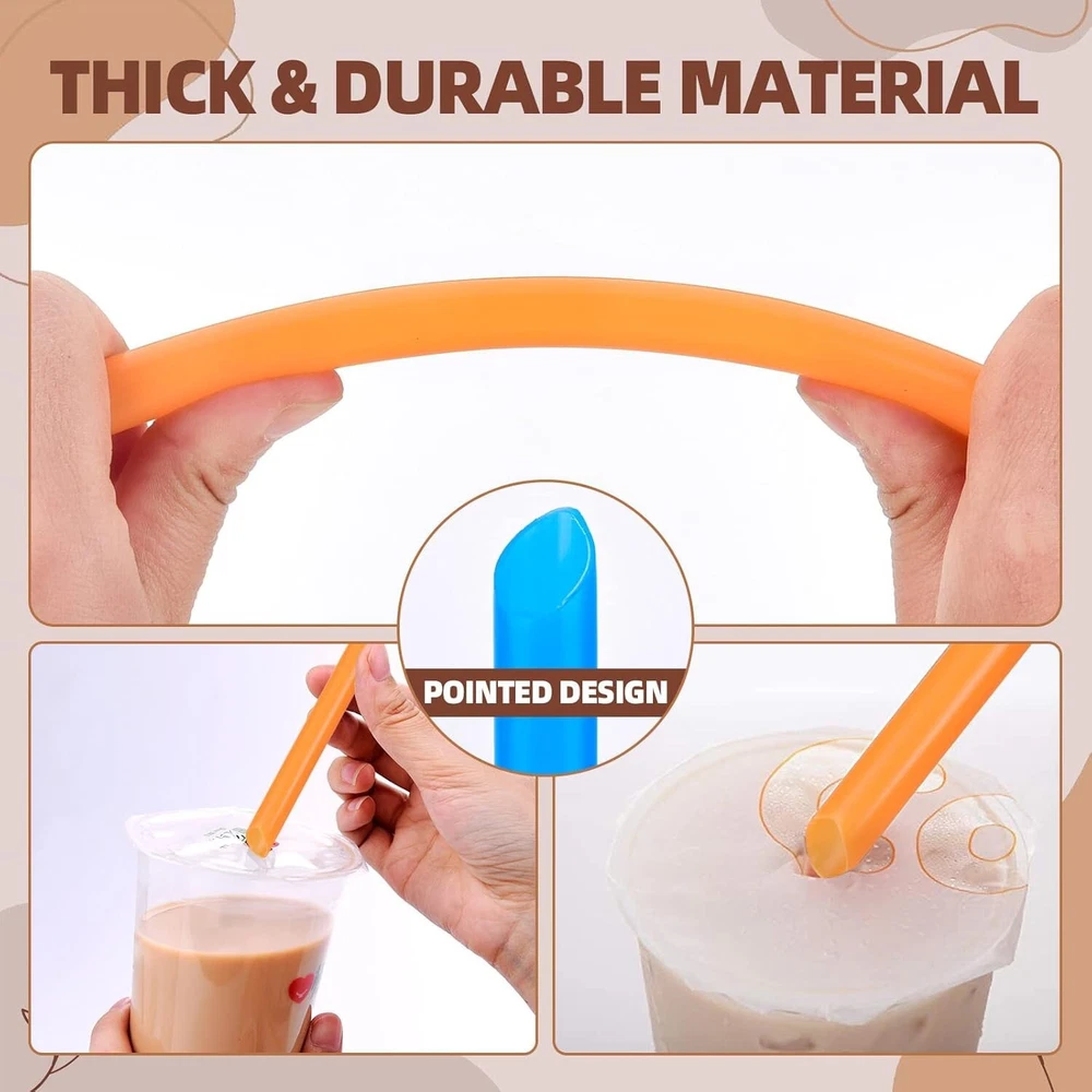 Model 2 BRAND NEW FOOD-GRADE & BPA FREE MATERIAL - Distinguish from disposable straws, we use reusable straws many times every day. In order to guarantee safe drinking, Hiware do our best to use healthy and non-toxic food grade materials, please feel free to use them in hot or cold beverage. BEST SIZE FOR BOBA & SMOOTHIES - 8 pcs multi-colors straws + 2 cleaning brushes. 10.5" long and 0.4 Inner Diameter / 0.47 Outside Diameter. Extra wide straws are the best ideal size for fat boba/bubble tea (tapioca pearls, boba pearls), frozen smoothies, thick milkshakes, jelly, jumbo drinks and more homemade thick drinks [UPGRADED] - ANGLED TIPS - We have summarized many dissatisfaction from customers who have bought boba straws without angled tips. Hiware upgrades reusable plastic straws with angled tips that helps puncture the tops of bubble tea THICK PLASTIC & DISHWASHER SAFE - Besides food-grade material, these smoothie straws are made of thick bpa-free plastic. Dishwasher safe and hand washing efficiently with 2 cleaning brushes 100% SATISFACTION SERVICE - We believe that our high quality reusable straws will exceed your expectations. If you're not completely satisfied simply, don't hesitate to contact us and we will offer you a satisfied solution within 24 hours Model 1 Food-Grade & Bpa Free Material - Distinguish from disposable straws, we use reusable straws many times every day. Angled Tips - Pointed mouth design, make you very convenient when drinking Boba milk tea and smoothies, also the angled tips helps you puncture the tops of bubble tea Best For Boba & Smoothies - Approx 10 Inch Length and 0.4 Inch Inner Diameter / 0.47 Inch Outside Diameter. Extra Wide Reusable Smoothie Straws, Great for Bubble Tea, Boba Tea (tapioca pearls, boba pearls) ,thick Milkshakes and more homemade thick drinks. Easy To Clean : Wash the bubble tea straws easily with the long straw brush cleaners included in your package to keep the straws clean and hygienic after each use. Get the food remnants out by easily sliding the brushes in and then rinsing. The dishwasher safe materials makes it convenient and time saving. 100% Satisfaction Service - We believe that our high quality reusable straws will exceed your expectations. If you're not completely satisfied simply, don't hesitate to contact us and we will offer you a satisfied solution within 24 hours THANK YOU