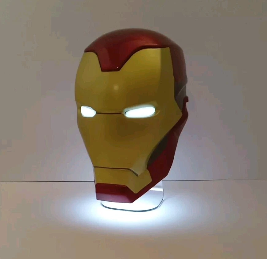 Used. Tested and working. Few scratches and minor wear as shown in pictures. As is. Experience the thrill of the movies with this officially licensed Iron Man helmet light. This reproduction piece is perfect for any fan of the Marvel universe, and adds a unique touch to any collection. The helmet features a sleek design and is made of high-quality materials, ensuring that it will last for years to come. Whether you're a collector or just looking for a cool piece of movie memorabilia, this Iron Man helmet light is sure to impress. It's the perfect addition to any home office, man cave, or gaming room. Bring a piece of the movies into your home with this amazing reproduction.