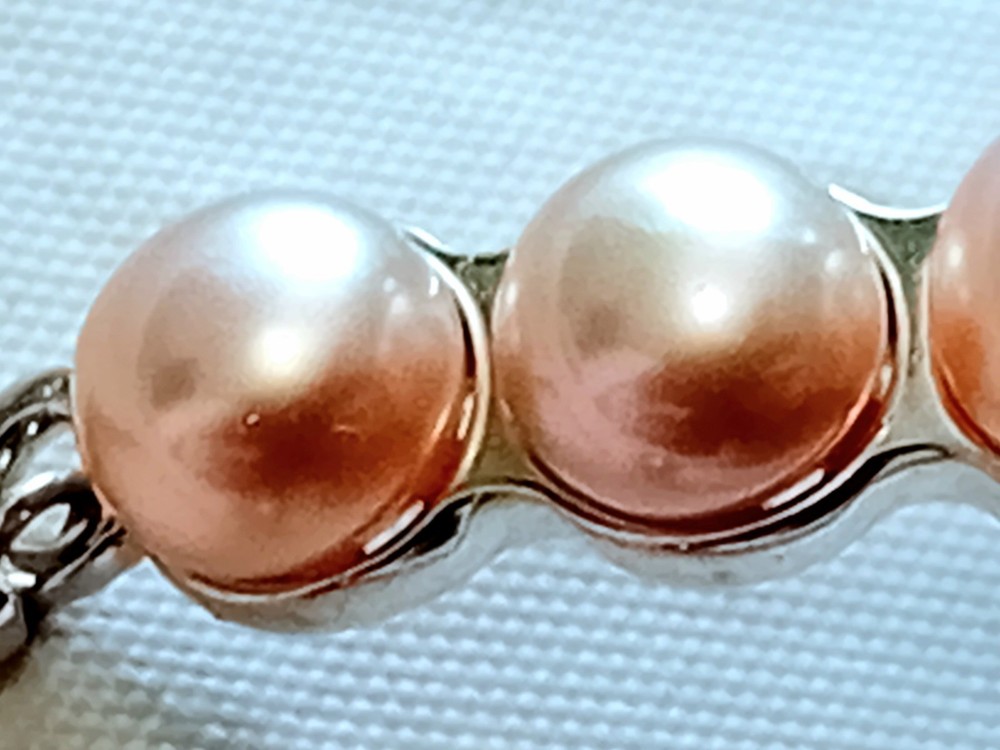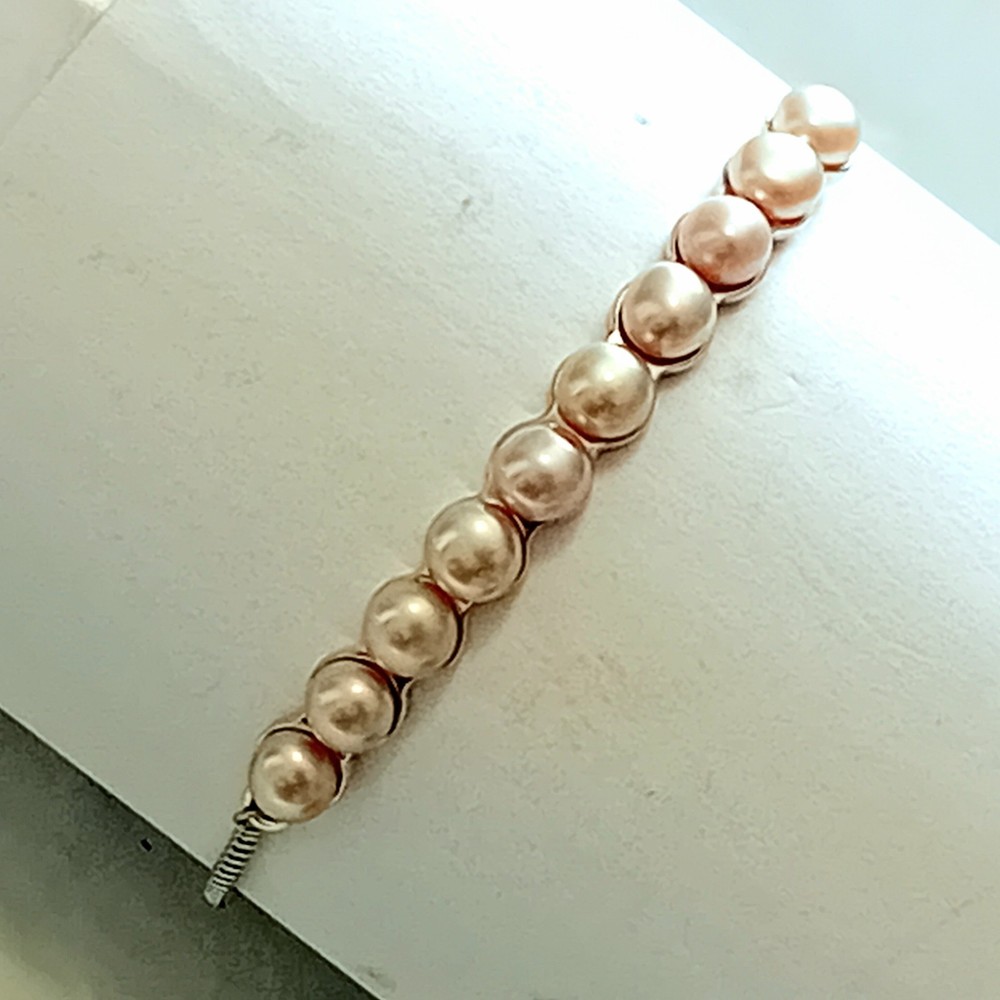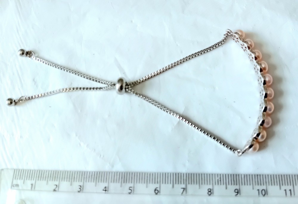 Pre-owned and still in a very good condition very pale pink Pearls on surgical steel platinum Bonded tennis bracelet