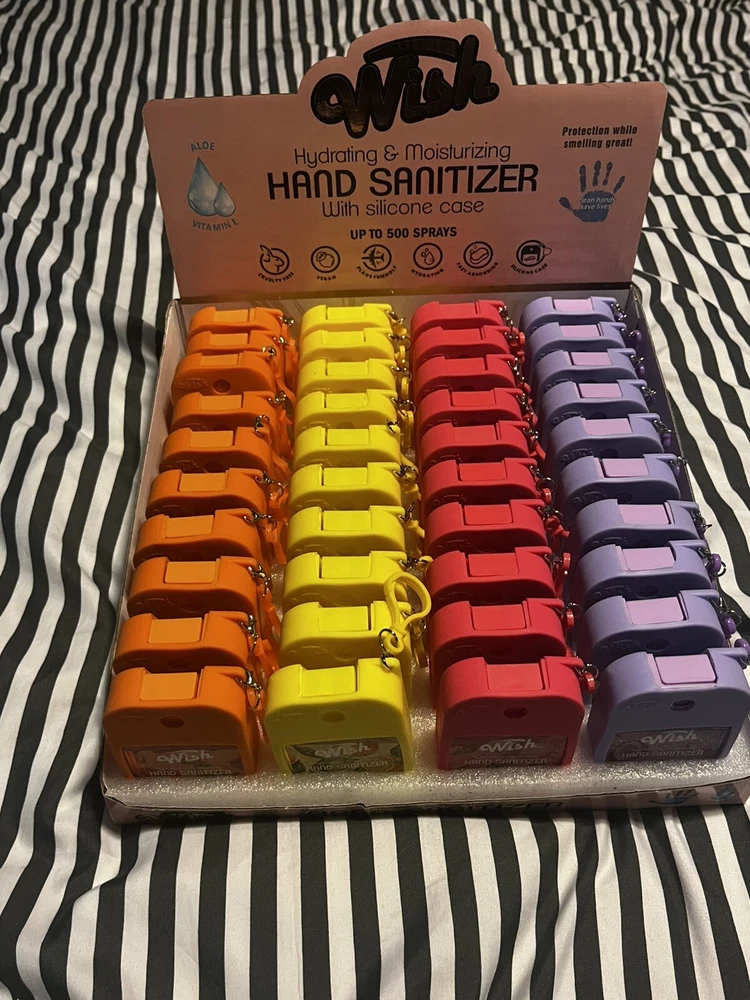 Palm Sized Wish Advanced Spraying Hand Sanitizer 1.5oz EA With Aromas and Case