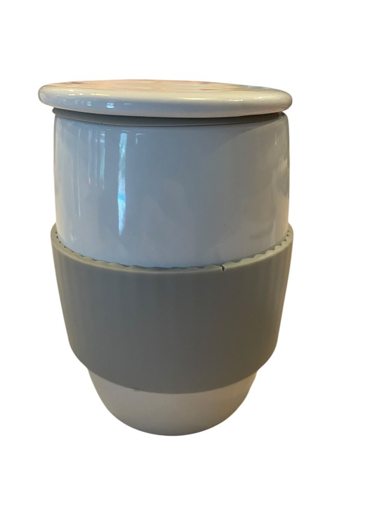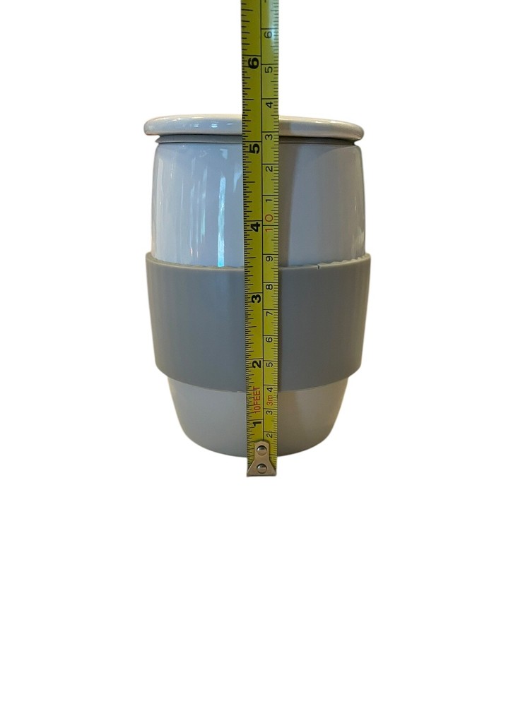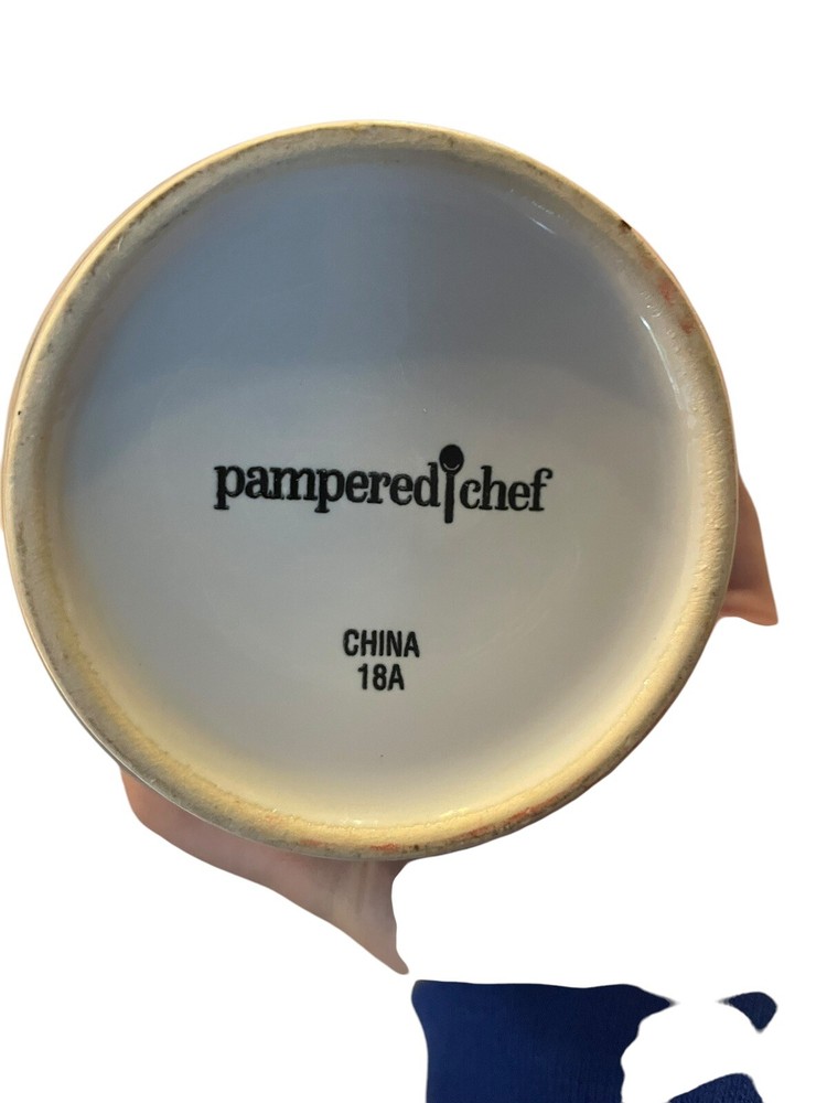 This two-piece set from Pampered Chef includes a large coffee soup mug and a silicone gripper, perfect for all occasions. The mug features a solid white ceramic material with a round shape and a 16 oz capacity. The gripper is removable and reversible, making it easy to use and clean. The set is perfect for those who love food and drink-themed kitchen accessories. The modern style and food character family make it a great addition to any collection. This soup mug is made in China and is suitable for one person.