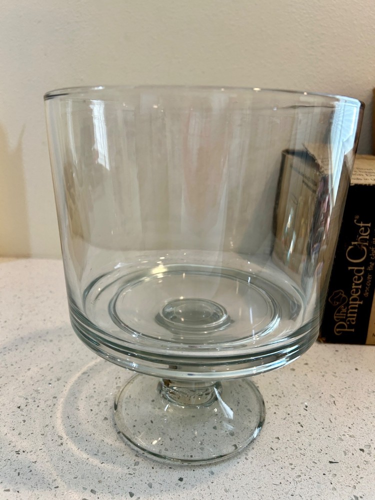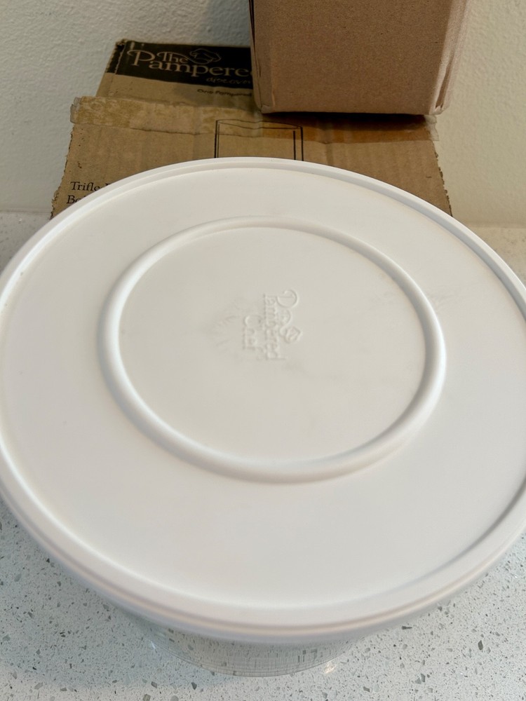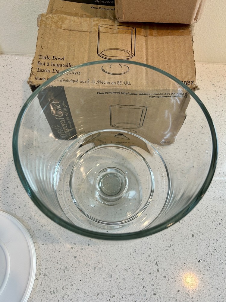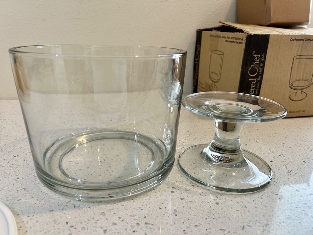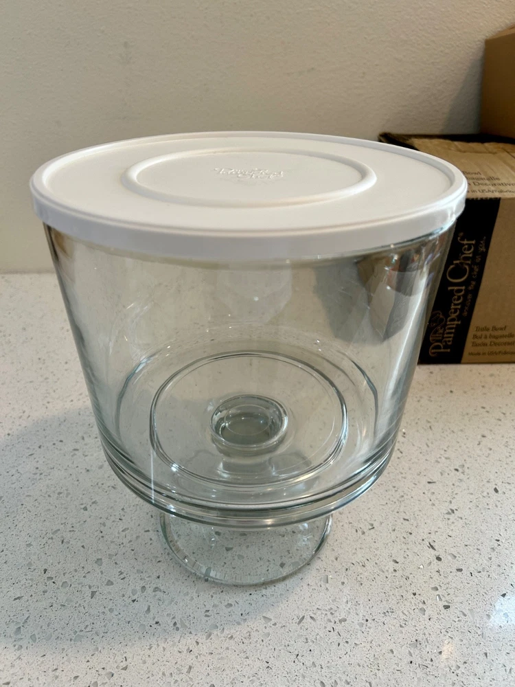 Pampered Chef Glass Trifle Bowl w/Lid &Stand #2832 in Original Box