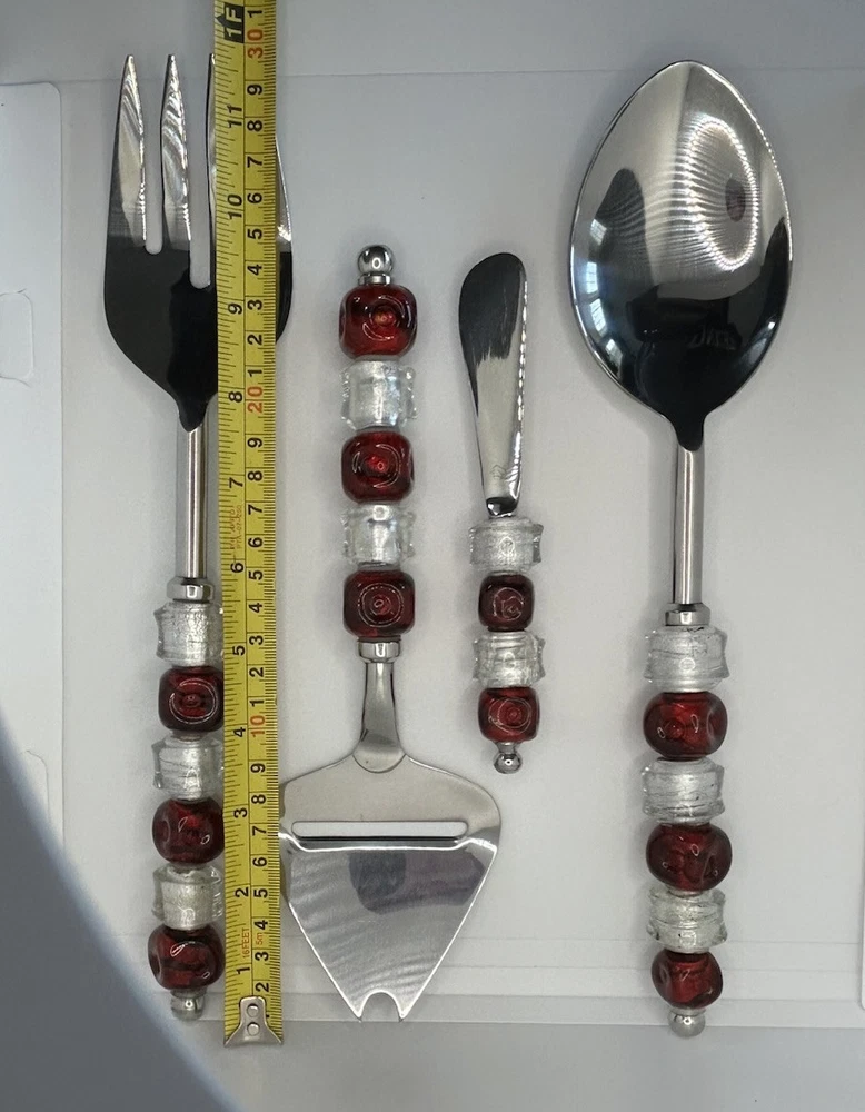 These festive serving utensils are a must-have for holiday gatherings! The elegant red and silver beads add a cheerful touch, while the sturdy stainless steel construction ensures durability. Perfect for serving pies, cheeses, or any holiday dish, they blend style and function beautifully. A lovely upgrade to any Christmas table setting!