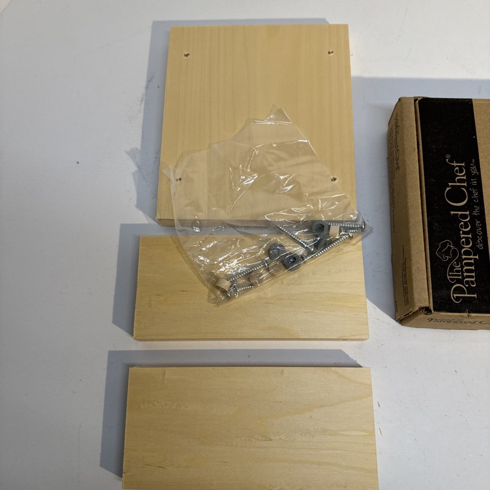 Brand new in box Pampered Chef apple Peeler stand. Never assembled.