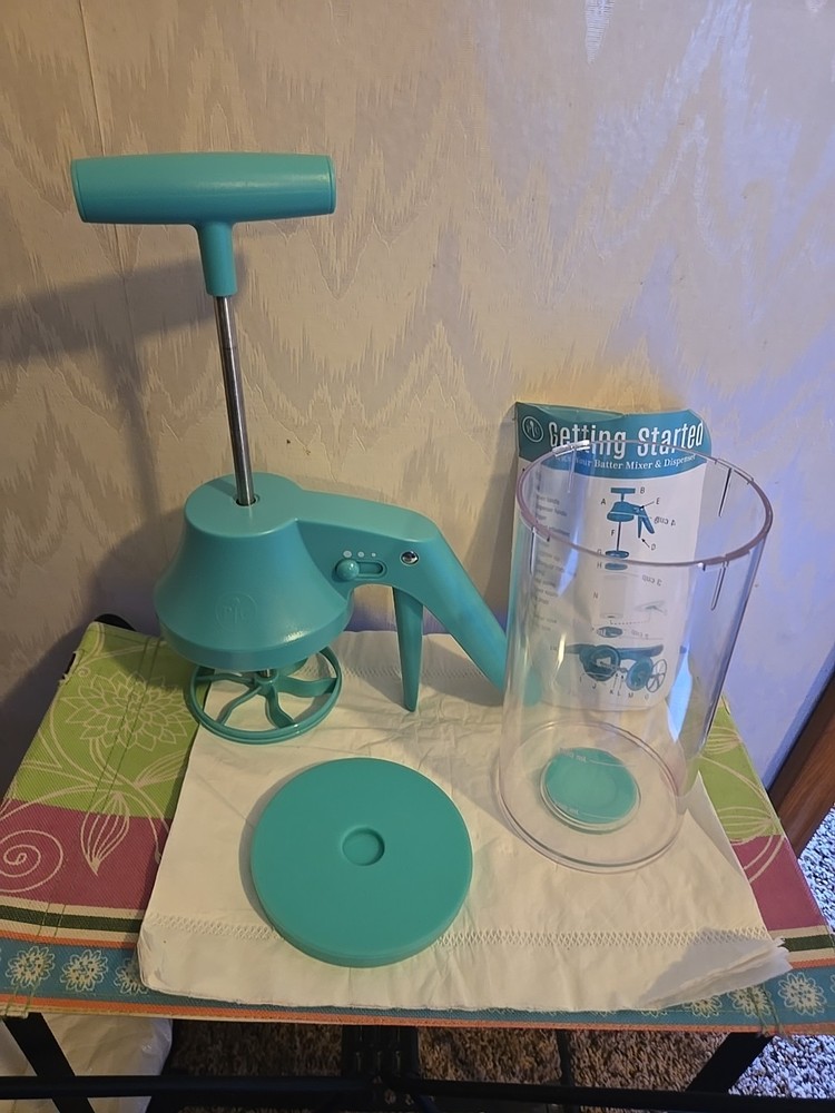 This auction is for a slightly used PAMPERED CHEF BATTER MIXER & DISPENSER This has been used once. No box but in perfect condition. Mix ingredients for cakes, brownies, cupcakes, and pancakes in the Batter Mixer & Dispenser, and then dispense the batter into your favorite bakeware. The mixer works well for everything from crepe batter to brownie and cake mixes—it’s your all-in-one solution for baking. The portion selector lets you choose the perfect amount of batter for your pan, and the trigger helps you dispense even thick batters. Six-bladed mixer. The removable silicone base keeps the container steady while you mix and keeps batter contained. Dishwasher-safe. Please check out our other auctions for great finds at great prices. Free shipping to winning bidder. Thanks for taking the time to check out our auctions.
