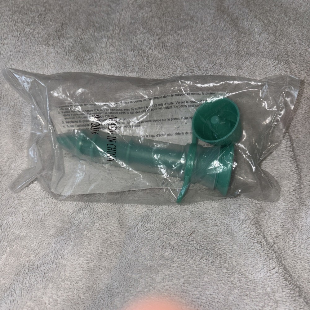 Enhance your baking experience with the Pampered Chef Chocolate Drizzler Tool, a must-have for any chocolate enthusiast. Designed for versatility and ease of use, this teal green drizzler, model #1458, is perfect for adding that special touch to your desserts, whether you're decorating cakes, cupcakes, or candies. Crafted from durable plastic, the tool is part of Pampered Chef's reputable line known for quality and longevity. Its sleek design ensures comfort and precision while creating intricate designs or simple accents on your sweet treats. Ideal for both professional bakers and home chefs, this chocolate drizzler is a sealed package assurance of freshness and performance.