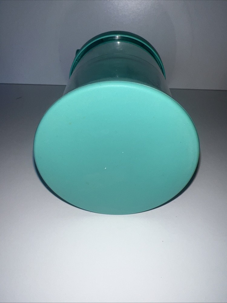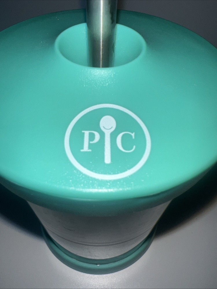 The Pampered Chef Whipped Cream Maker is a handheld whipping cream dispenser designed to easily create homemade whipped cream. This manual dispenser is in a stylish teal color and is model number 1461 from Pampered Chef. Perfect for adding a delightful touch of freshly whipped cream to desserts or beverages, this kitchen tool is a convenient and practical addition to any home cook's collection.