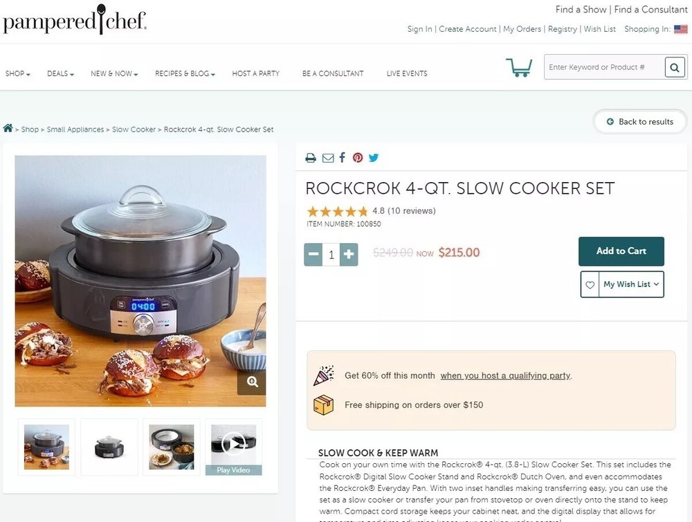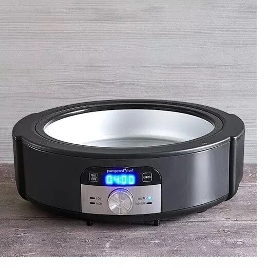 Country/Region of Manufacture: United States MPN: 100850 Power Source: Electric Brand: Pampered Chef Heat Resistance: 752 F (400 c) Color: Black Type: Slow Cooker Features: Easy Clean, Dishwasher Safe, Double Handle, Easy to Clean, Electr Material: Glass, Stone, Clay Capacity: 4 qt Manufacturer Warranty: 2 Years Model: Slow Cooker Set
